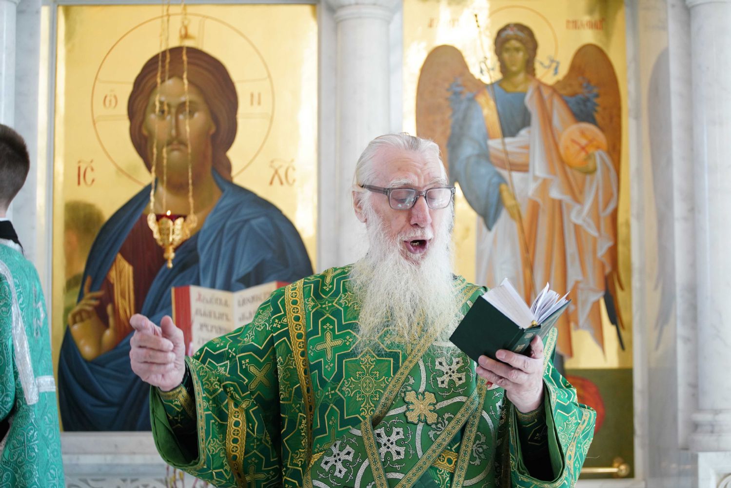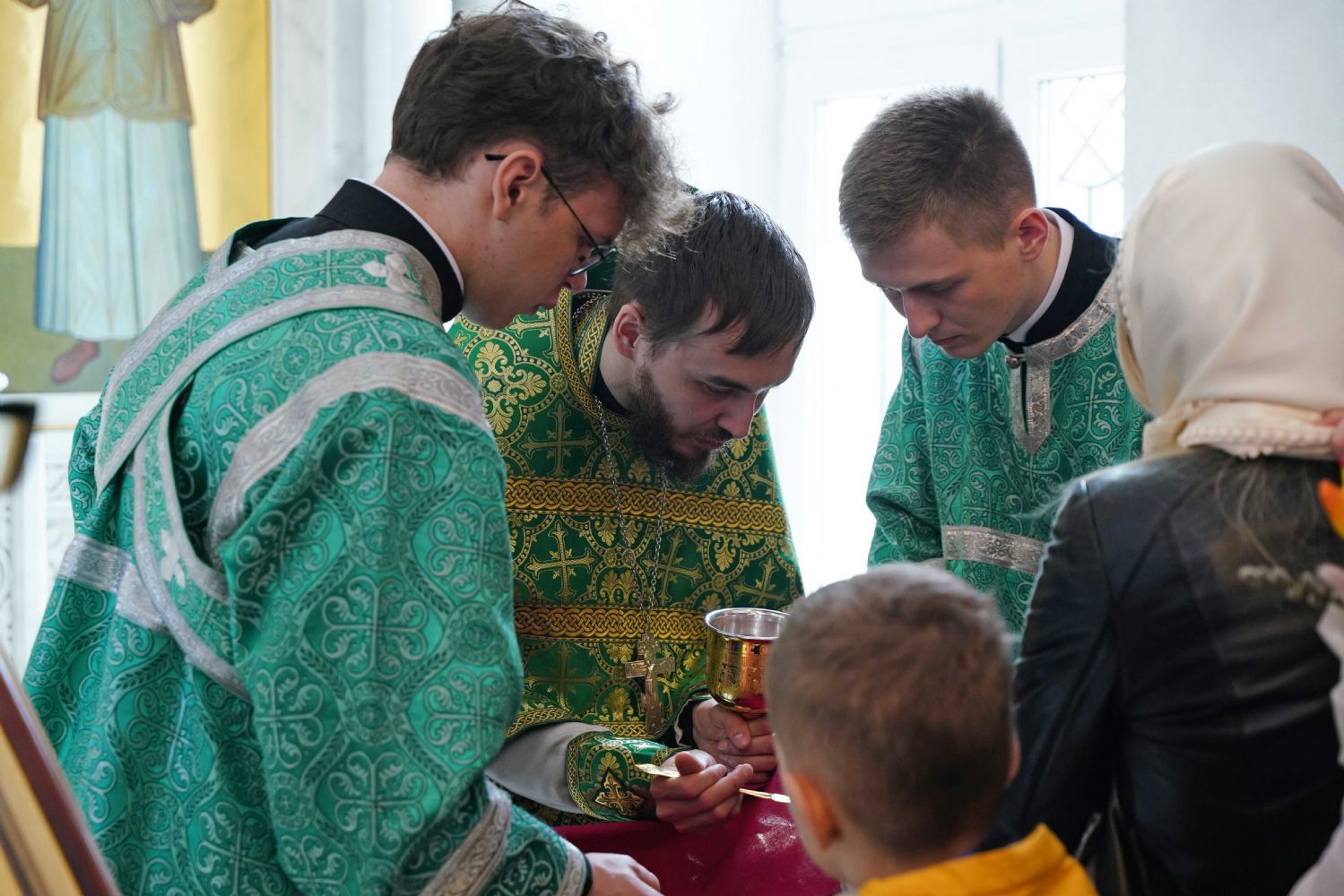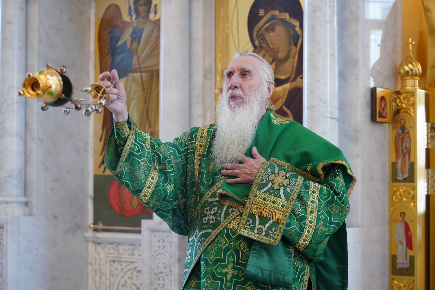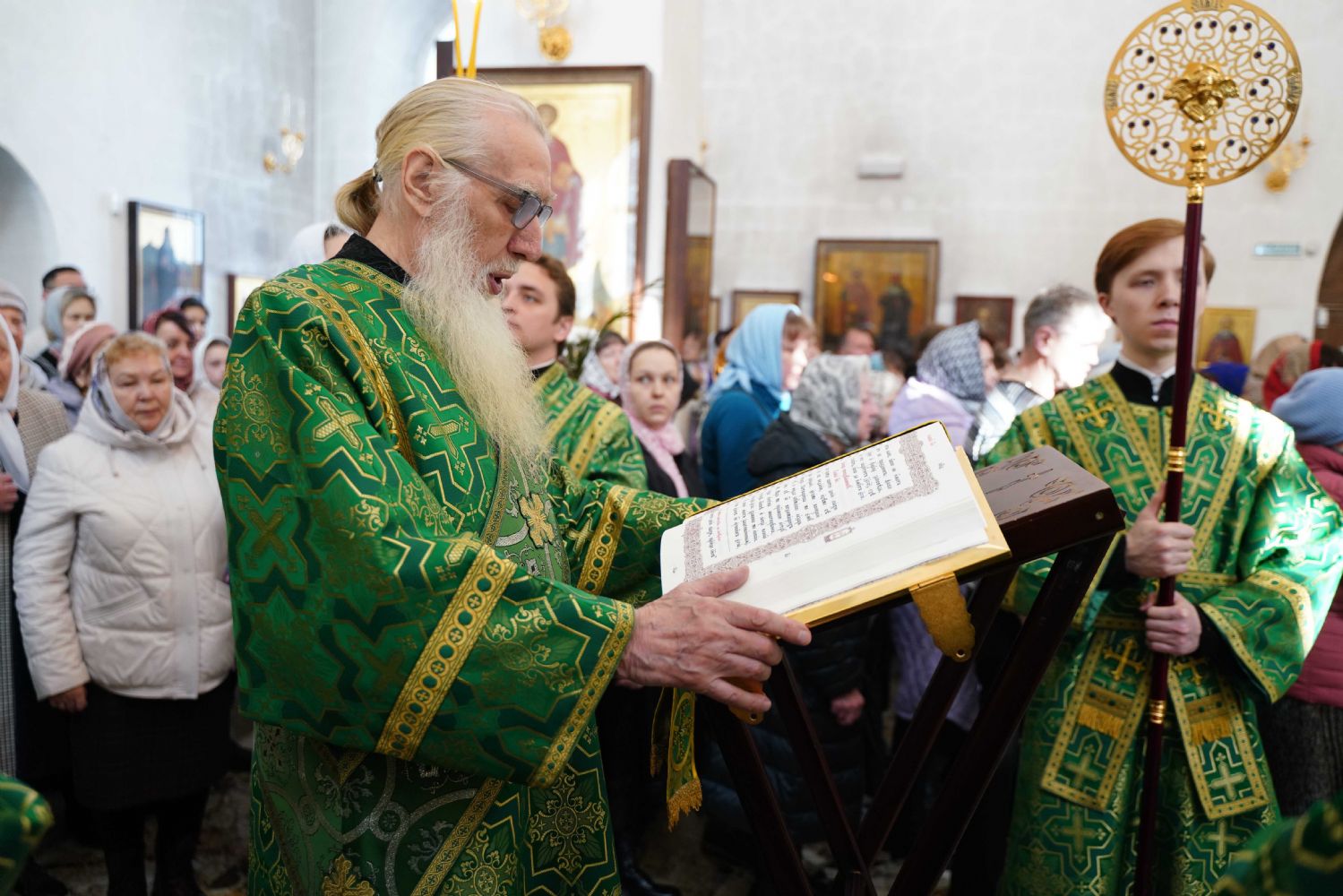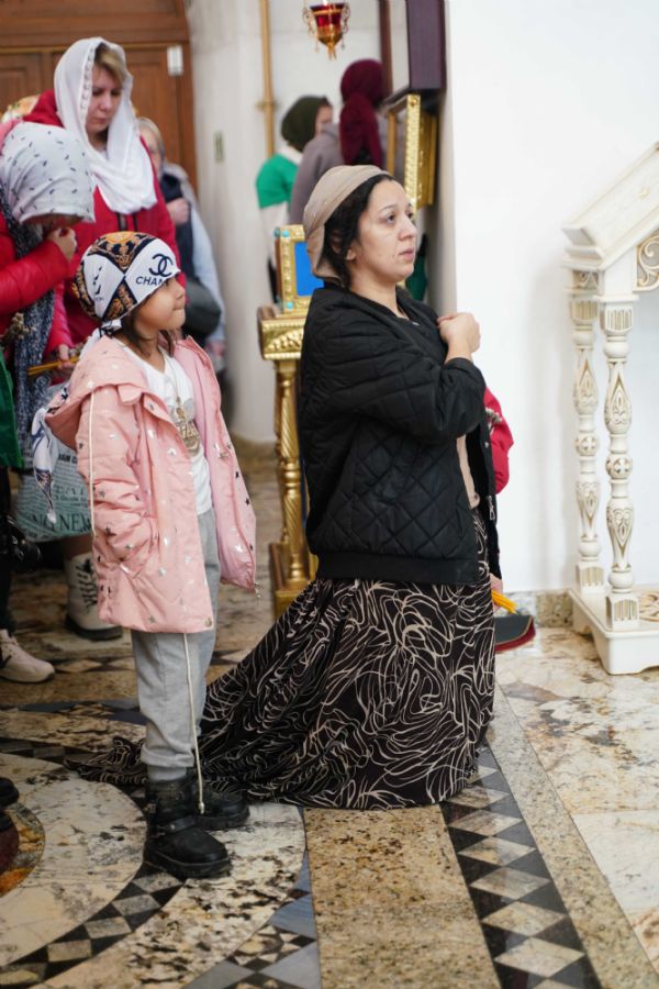 Архипастырю сослужили настоятель храма иерей Алексий Михеев, клирик храма иерей Сергий Пуртов и протодиакон Михаил Козловский. Песнопения исполняли хор храма под управлением Александры Ивановой и детский хор воскресной школы под руководством Ольги Шевчук.
