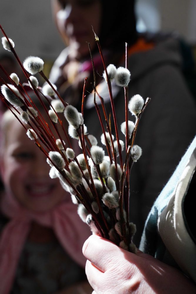 И мы с вами в этот великий день встречаем Господа, грядущего в вечную славу Свою. Мы держим в руках вербные ветви, которые свидетельствуют о весеннем оживлении природы, – в знак того, что наступает не только внешняя весна, но и весна преображения всех наших душ во Христе Иисусе.