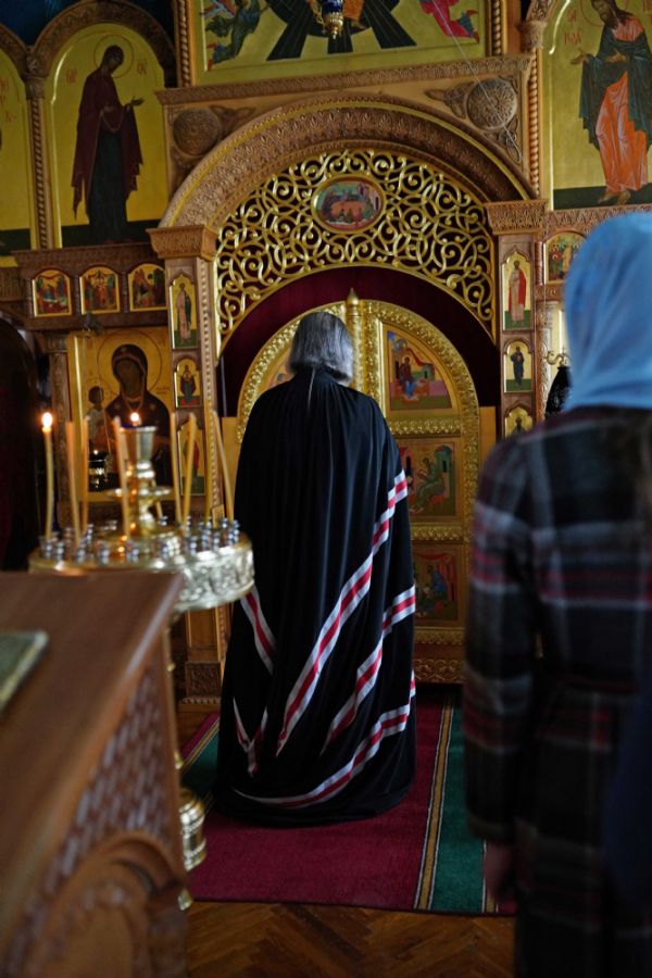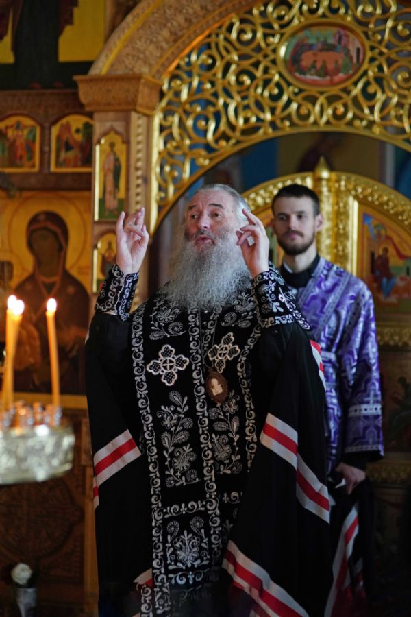 Его Высокопреосвященству сослужил протодиакон Михаил Козловский, песнопения исполнял архиерейский хор «Благовест» под управлением регента Татьяны Черновой.