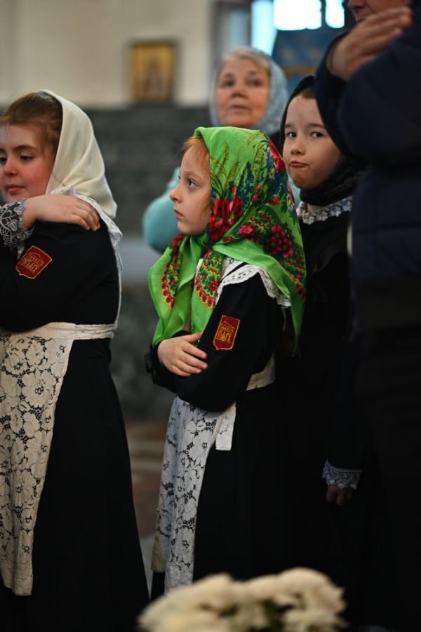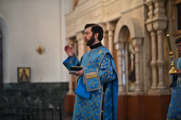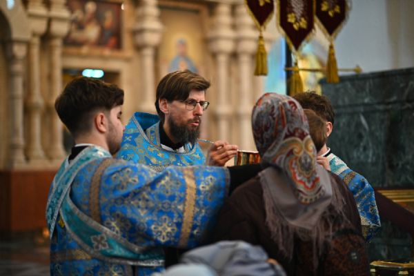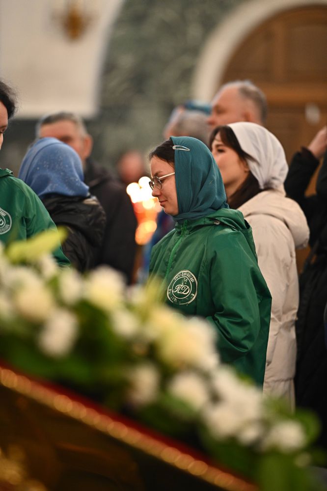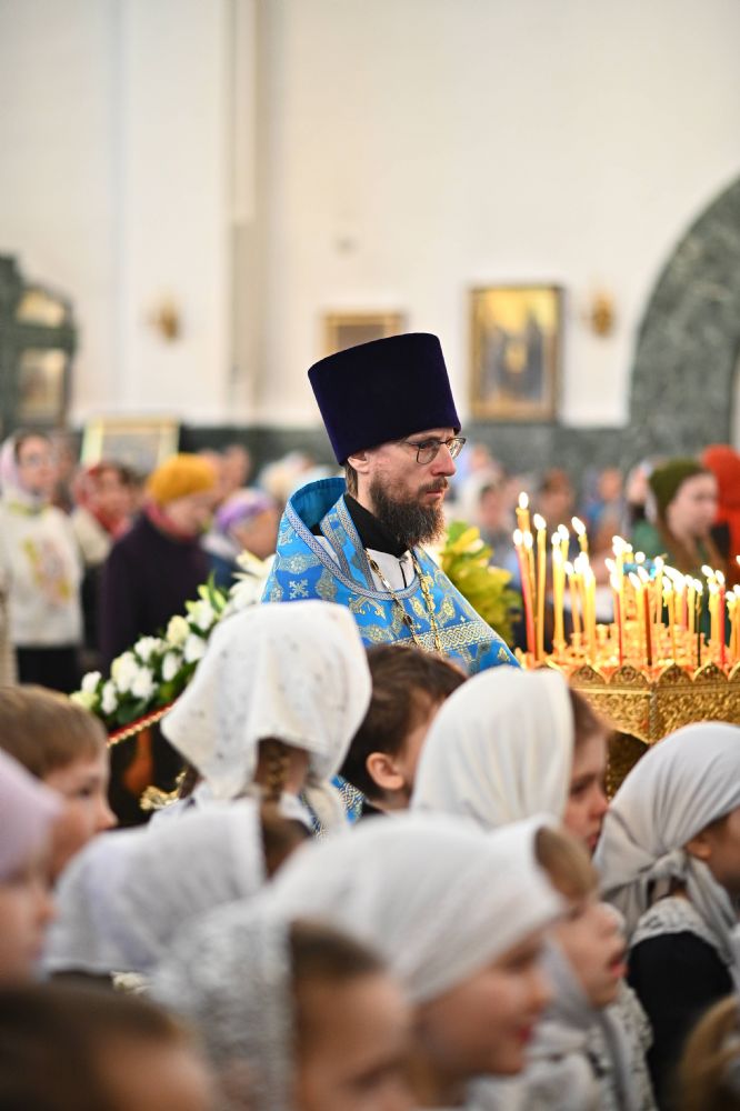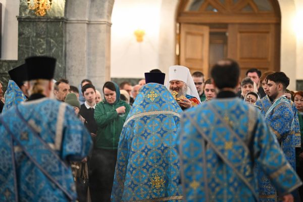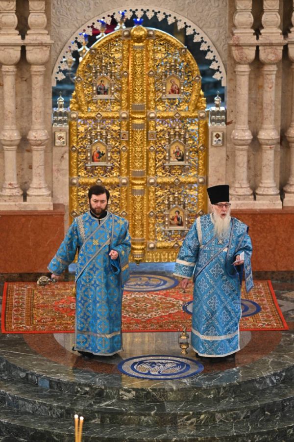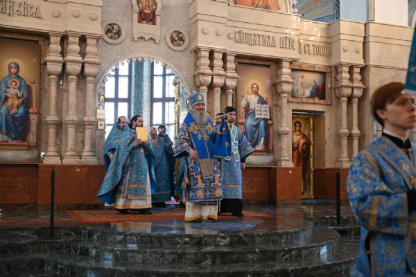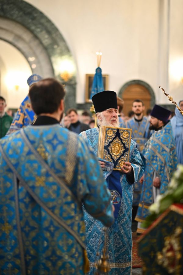 Его Высокопреосвященству сослужили ключарь собора протоиерей Сергий Поглазов, клирики собора и протодиакон Михаил Козловский. Песнопения исполнял архиерейский хор «Благовест» под управлением регента Татьяны Черновой.