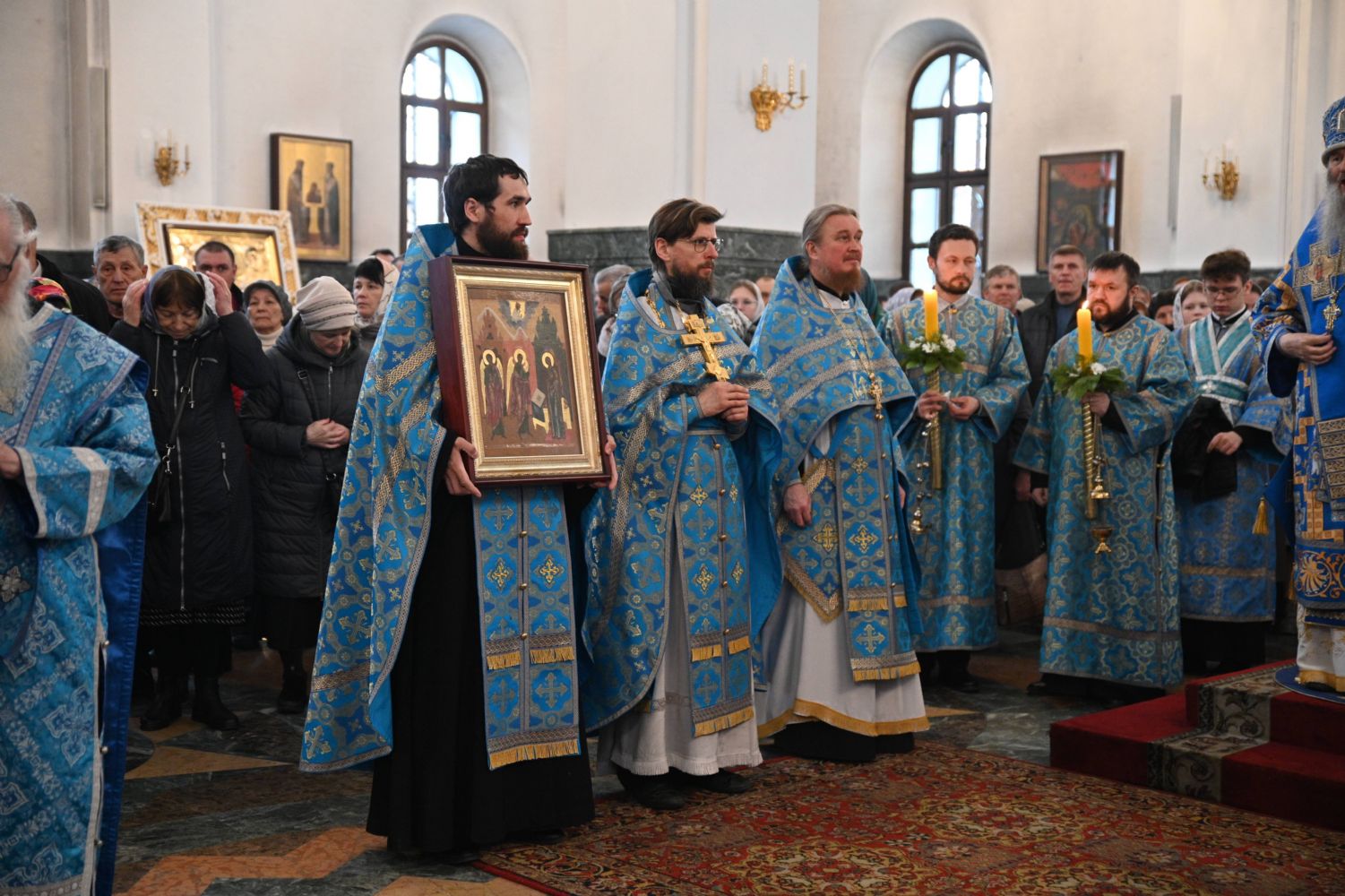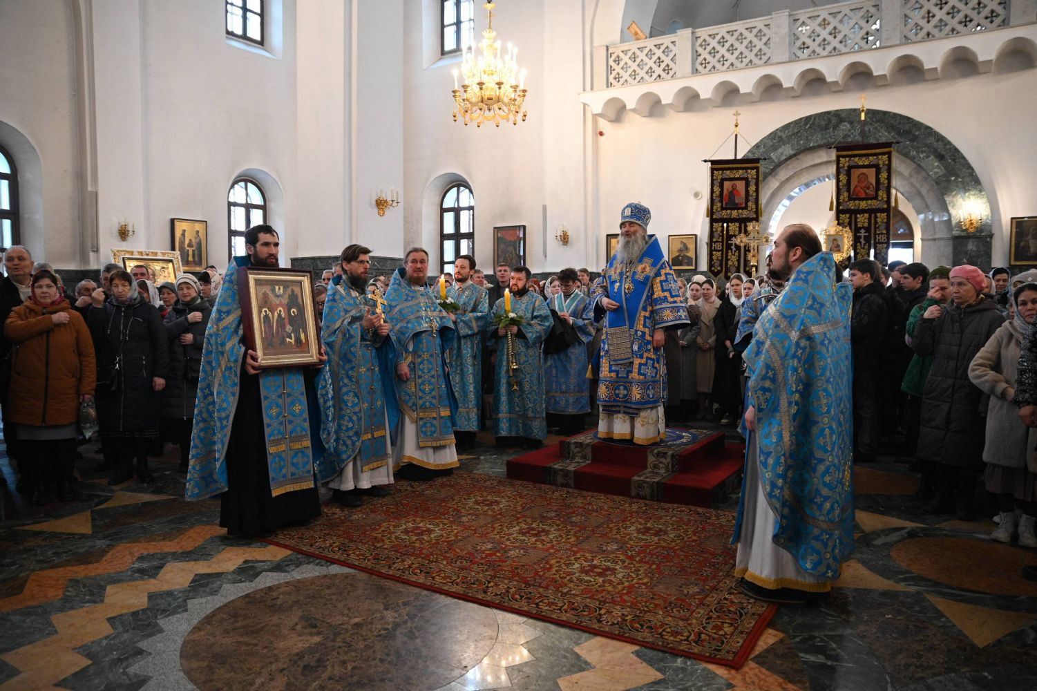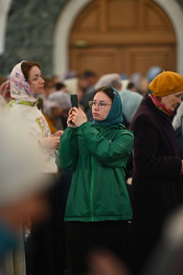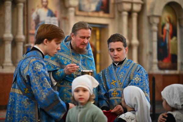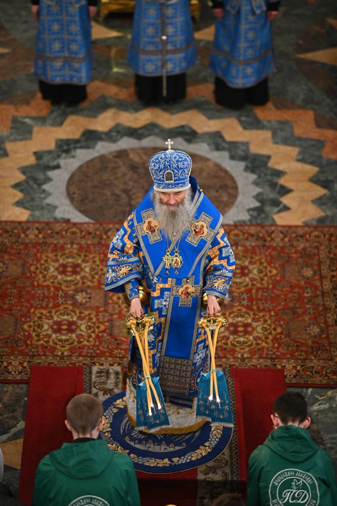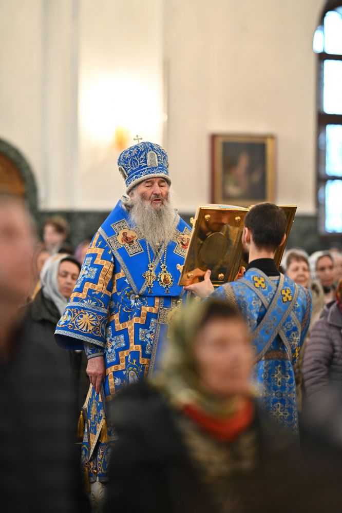 Его Высокопреосвященству сослужили ключарь собора протоиерей Сергий Поглазов, клирики собора и протодиакон Михаил Козловский. Песнопения исполнял архиерейский хор «Благовест» под управлением регента Татьяны Черновой.