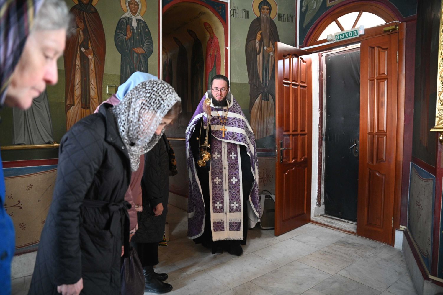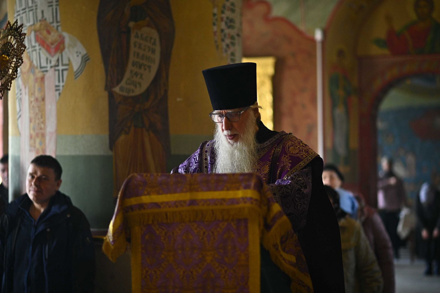 За Божественной литургией читались отрывки из книги Исход (2 глава) о бегстве Моисея в землю Мадиамскую, из книги Иова (2 глава) о страданиях праведного Иова и из Евангелия от Матфея (26 глава) о помазании Господа Иисуса Христа благовонным миром в Вифании.
