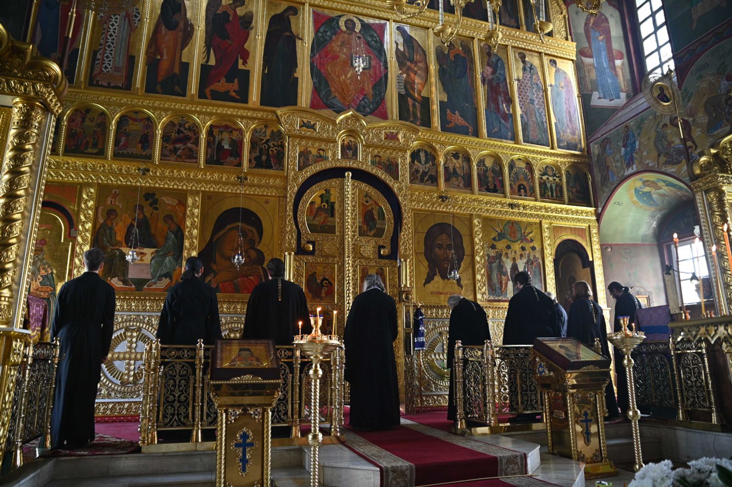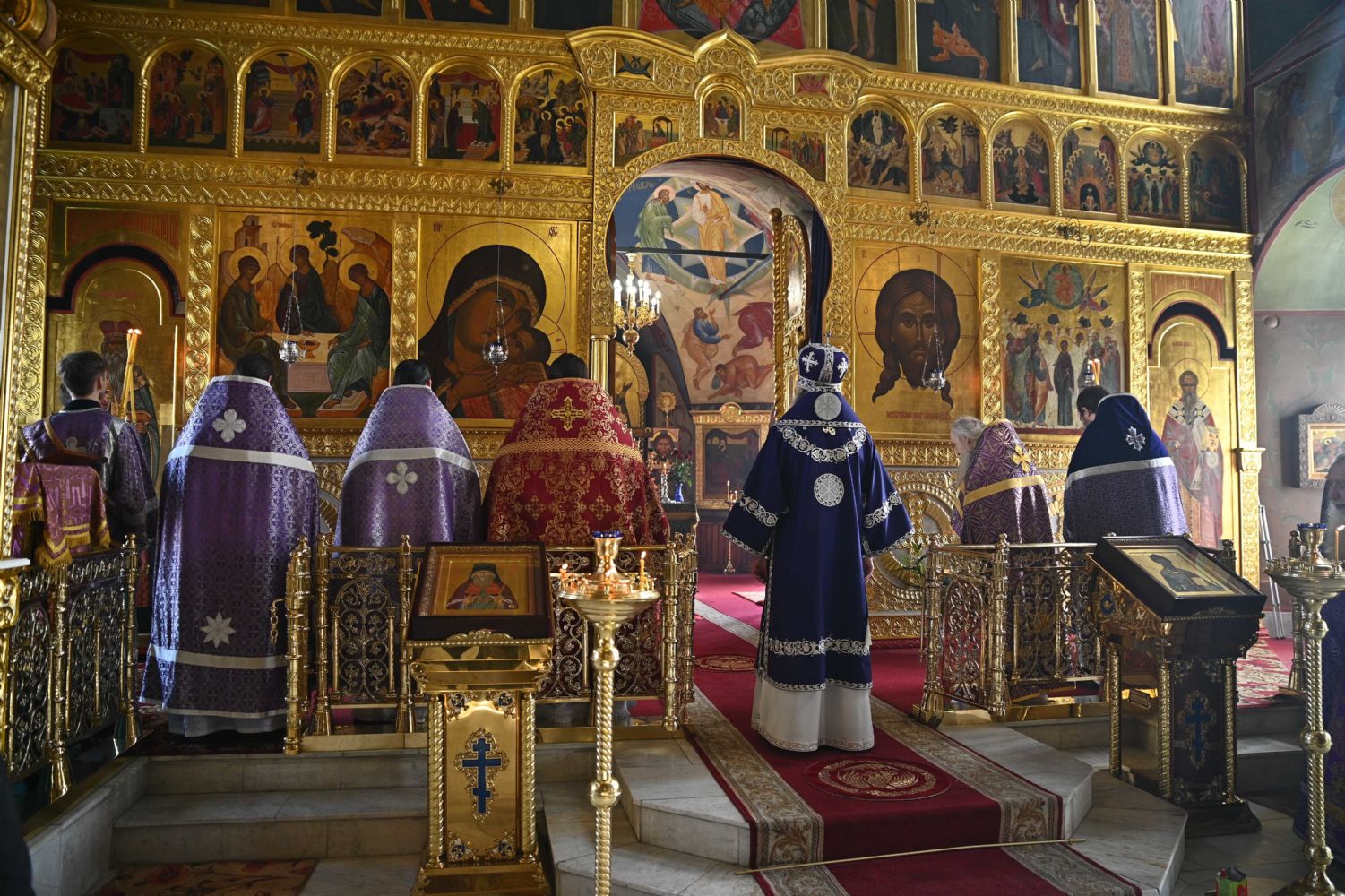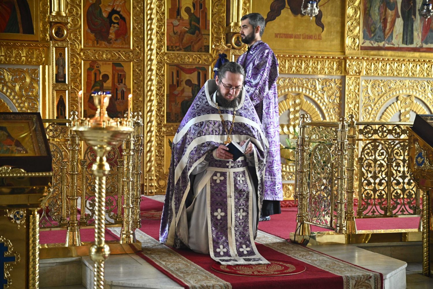 После заамвонной молитвы владыка с сослужащим духовенством последний раз в этом году вознесли молитву Ефрема Сирина с земными поклонами.