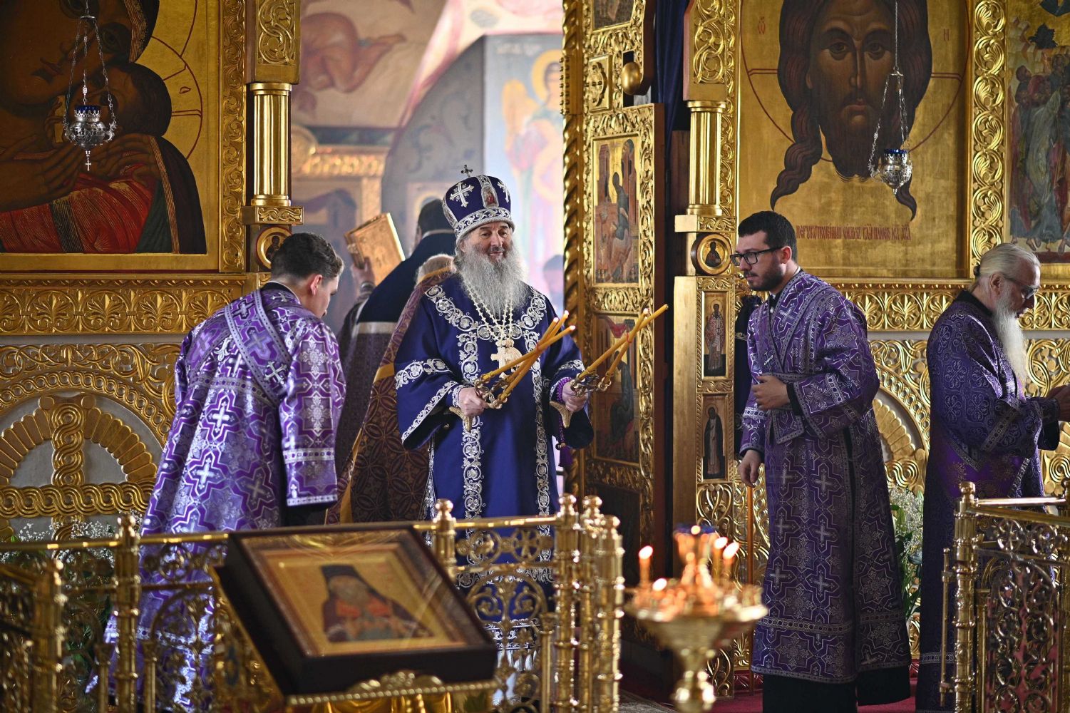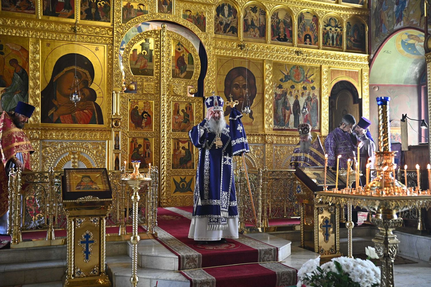 Архипастырю сослужили настоятель собора протоиерей Евгений Кутырев, клирики собора протоиерей Андрей Норкин, иереи Владимир Глебов, Иоанн Кристев, Владимир Камышев, Димитрий Копылов и диакон Владимир Лихачев, а также протодиакон Михаил Козловский. Песнопения исполнял хор собора под управлением регента Ангелины Бабиной.