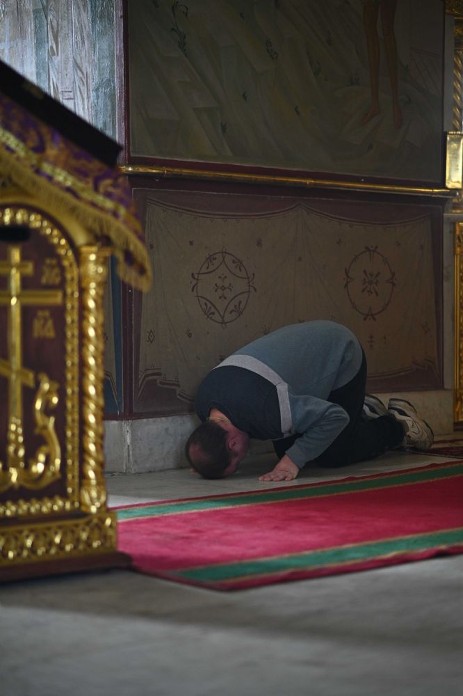 Перед Литургией был совершен чин прощения о совершенных за пост грехах.