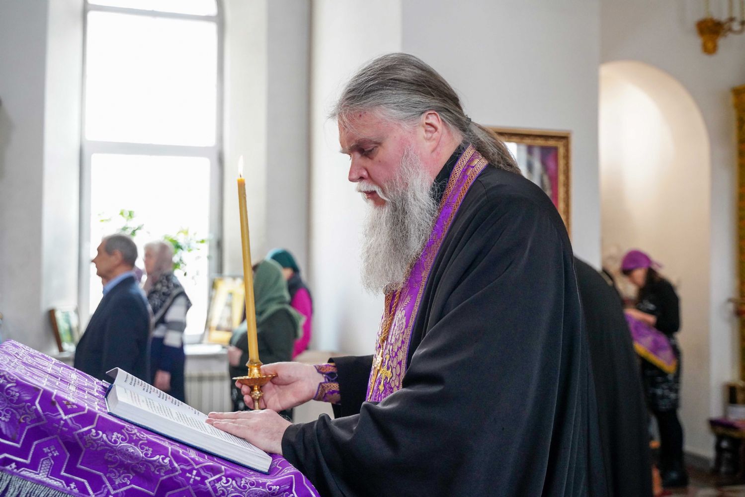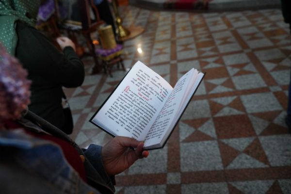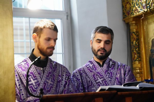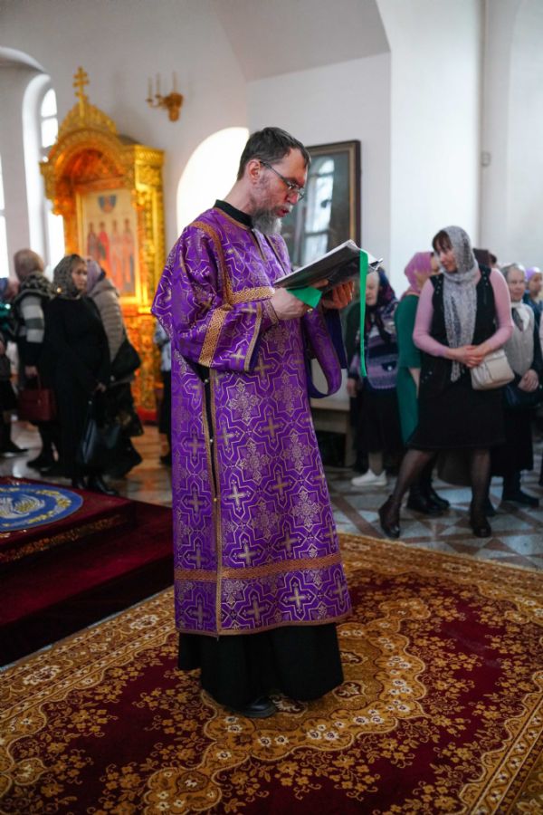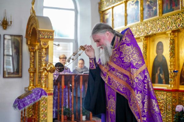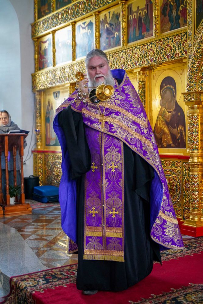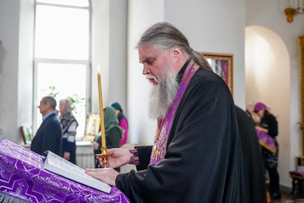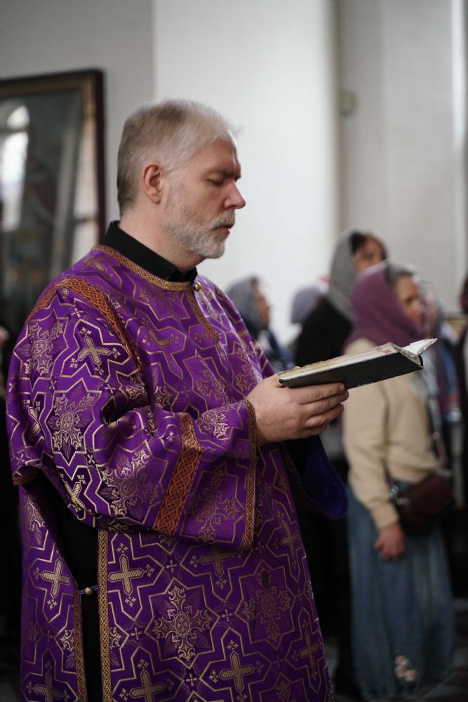 На малом повечерии в центре храма протоиерей Александр Бачурин прочитал трипеснец преподобного Андрея Критского, посвященный воспоминанию Тайной Вечери и предательства Иуды.