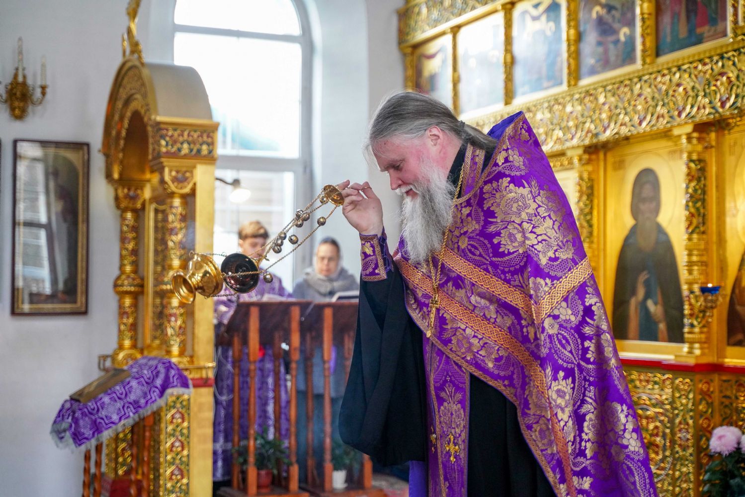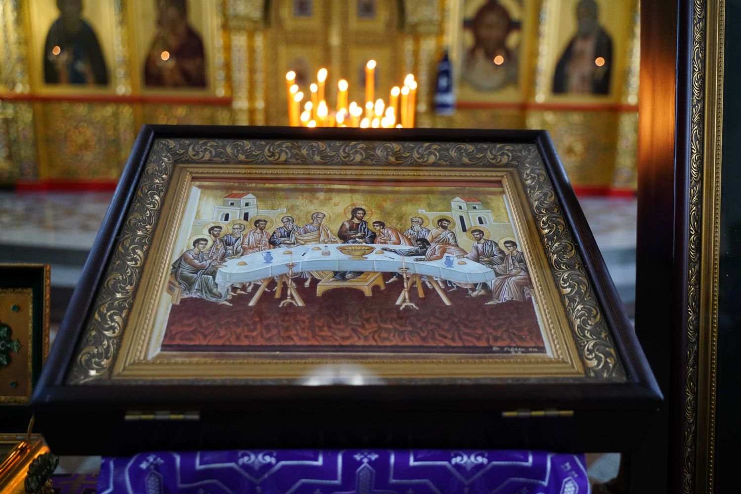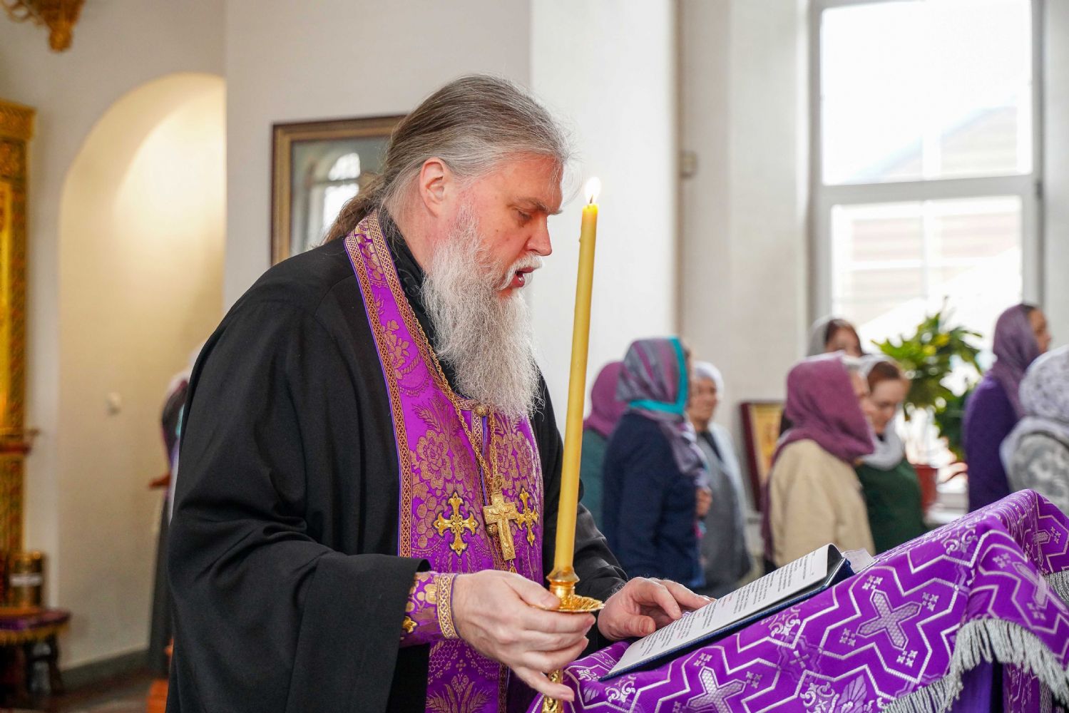 На малом повечерии в центре храма протоиерей Александр Бачурин прочитал трипеснец преподобного Андрея Критского, посвященный воспоминанию Тайной Вечери и предательства Иуды.