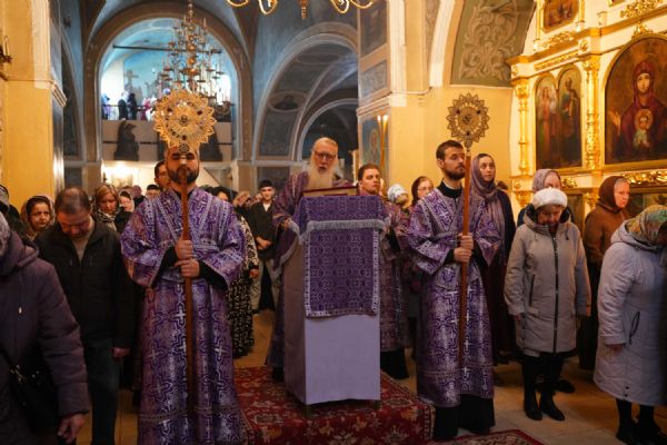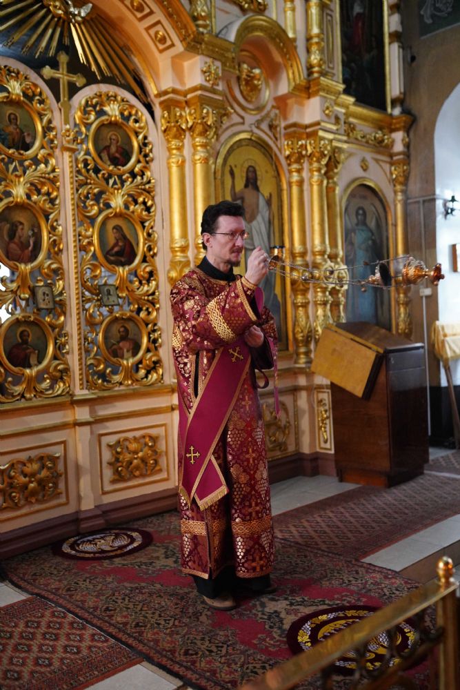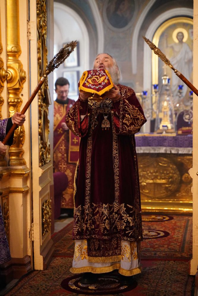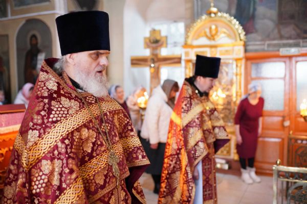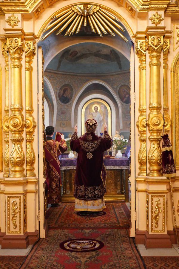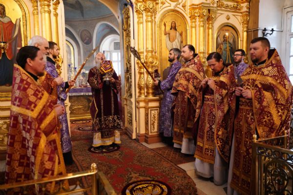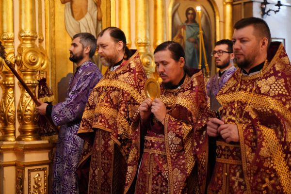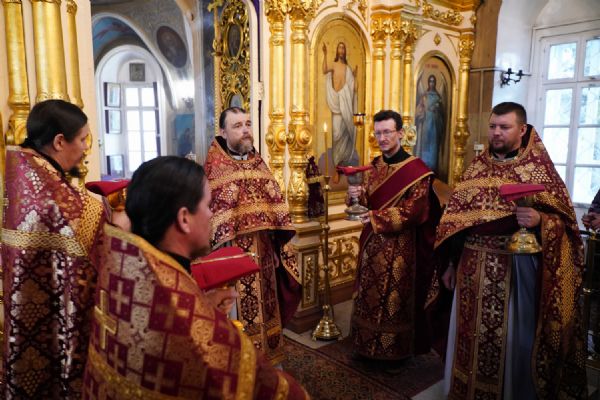 Архипастырю сослужили ключарь храма протоиерей Михаил Ильин, клирики храма протоиерей Павел Матвеев, иереи Димитрий Иванов, Сергий Асланов и Павел Дурандин, протодиакон Михаил Козловский и диакон Димитрий Смирнов. Песнопения исполнял хор храма под управлением Надежды Торощиной.