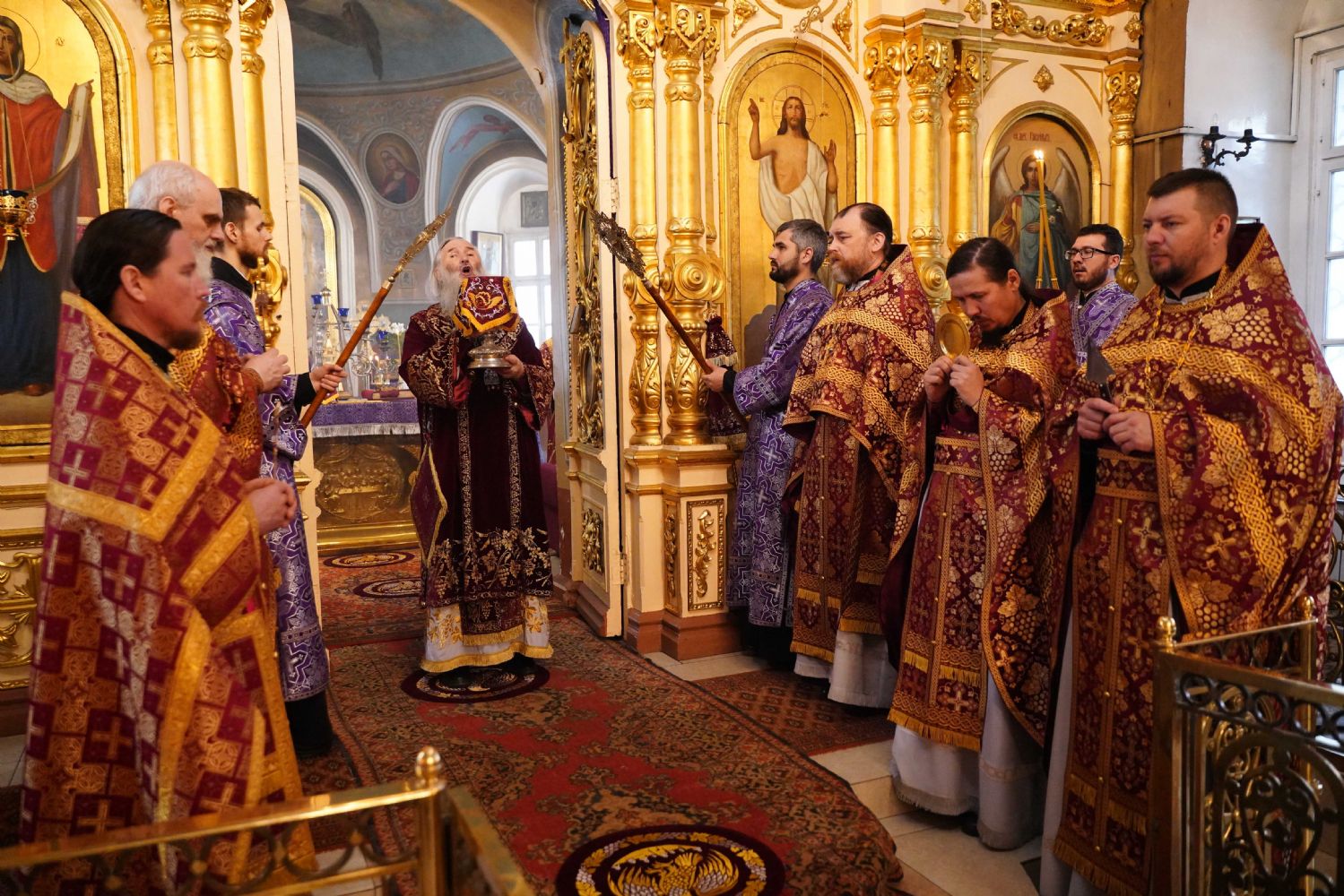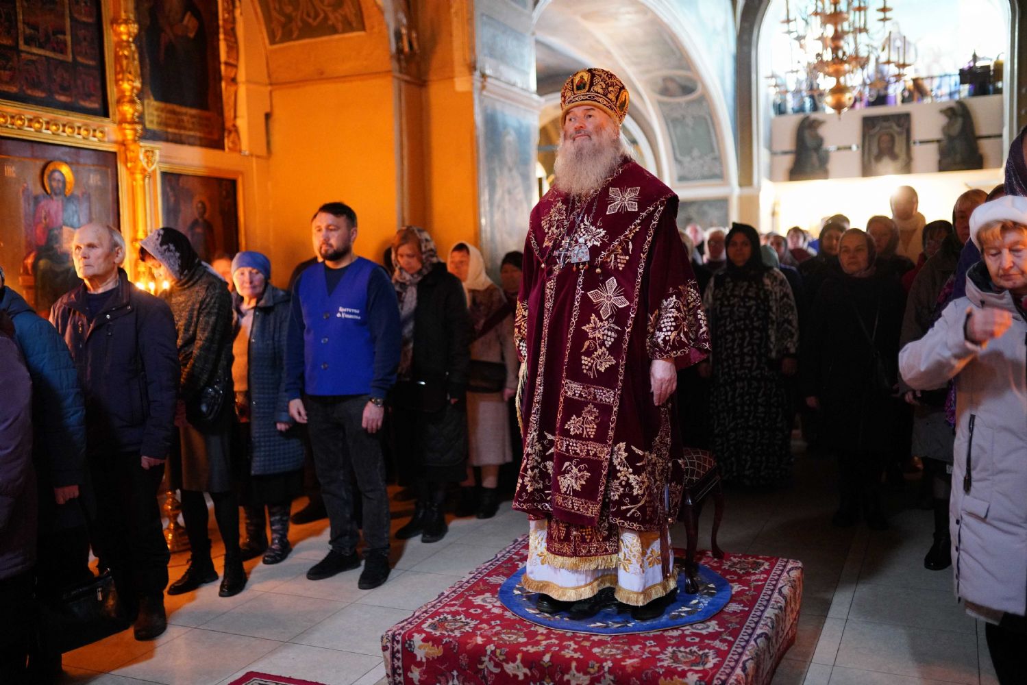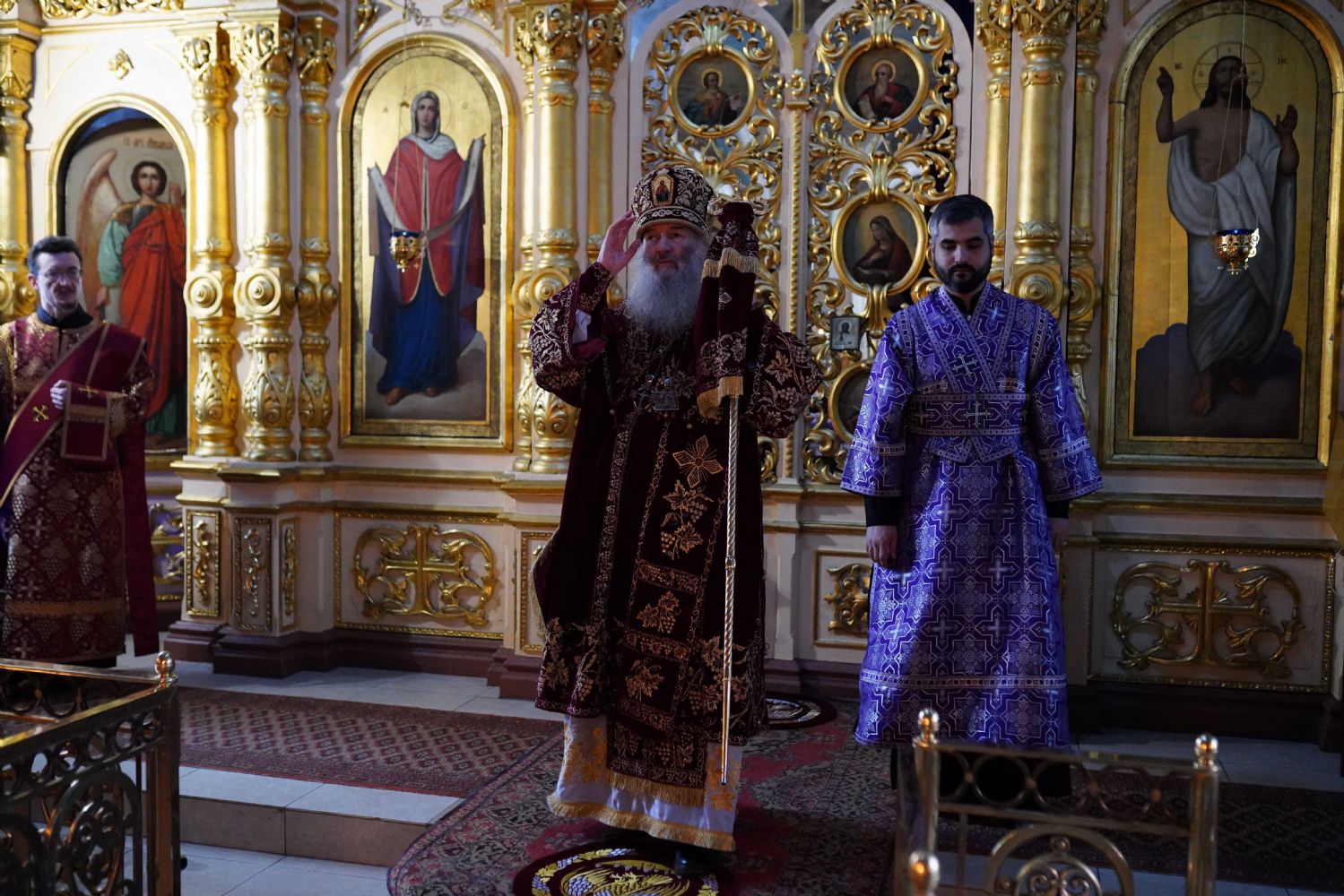 Архипастырю сослужили ключарь храма протоиерей Михаил Ильин, клирики храма протоиерей Павел Матвеев, иереи Димитрий Иванов, Сергий Асланов и Павел Дурандин, протодиакон Михаил Козловский и диакон Димитрий Смирнов. Песнопения исполнял хор храма под управлением Надежды Торощиной.