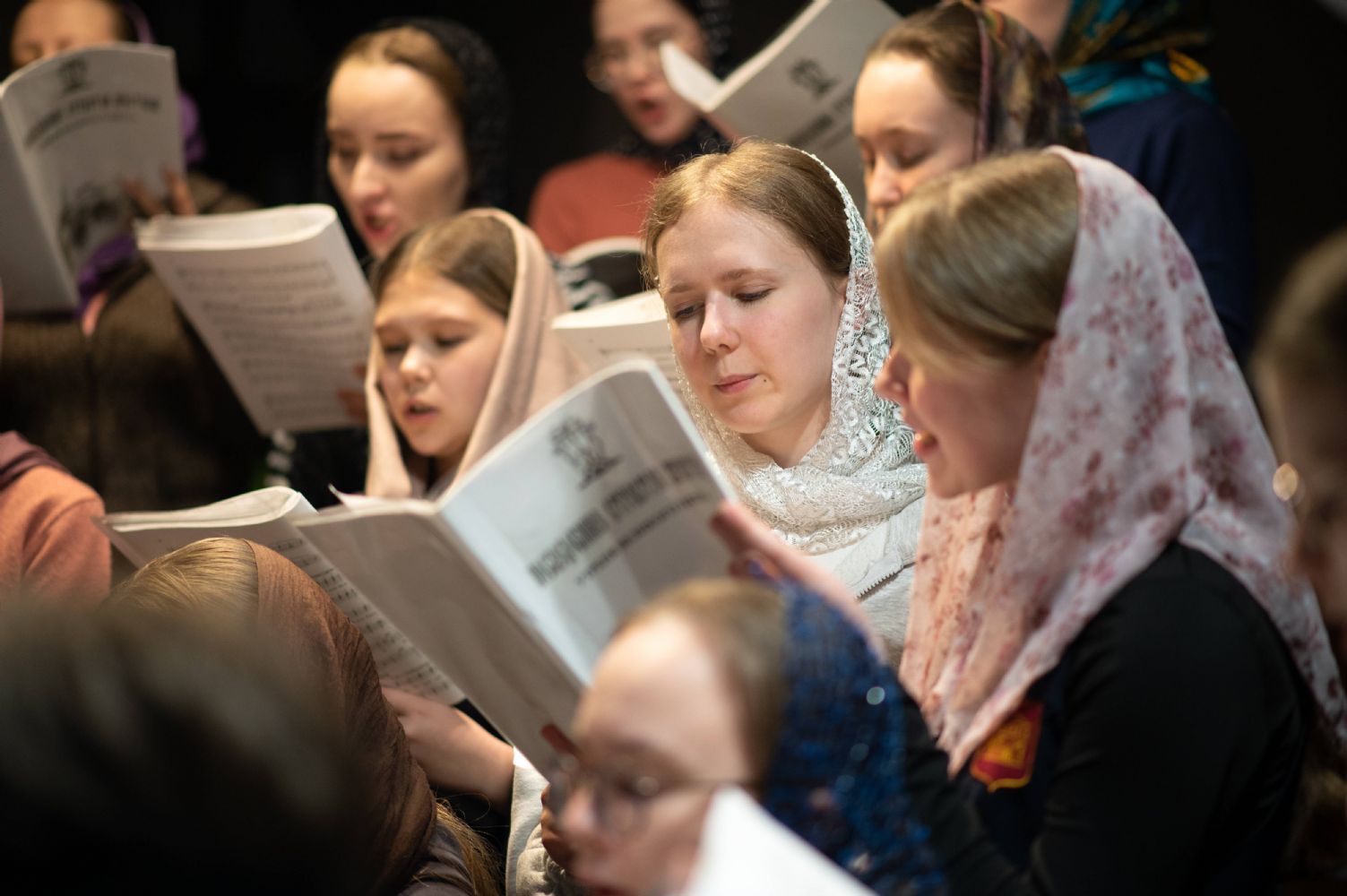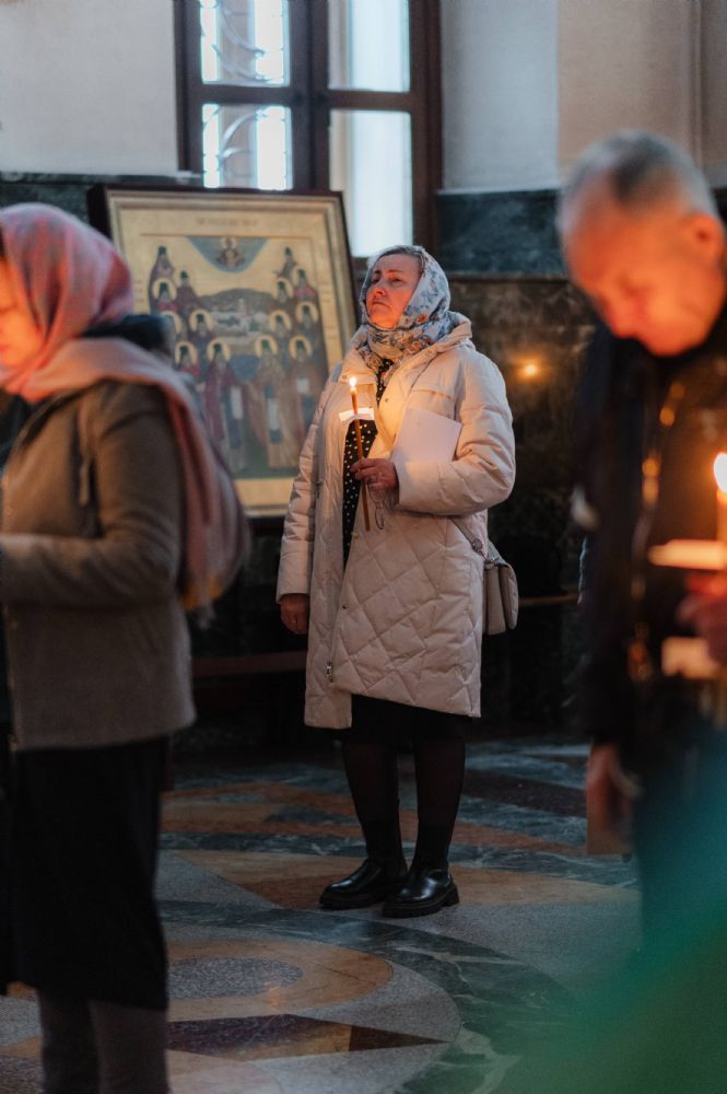 За богослужением пел архиерейский хор «Благовест» под управлением регента Татьяны Черновой. Часть песнопений прозвучала в исполнении мужского хора священства кафедрального собора под руководством иерея Евгения Самойлова.