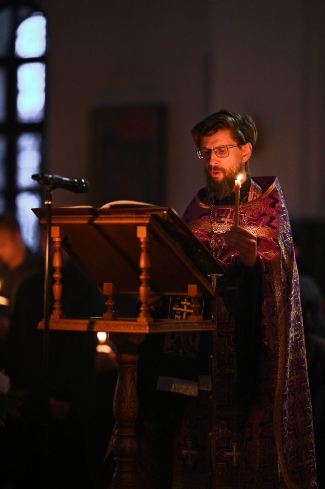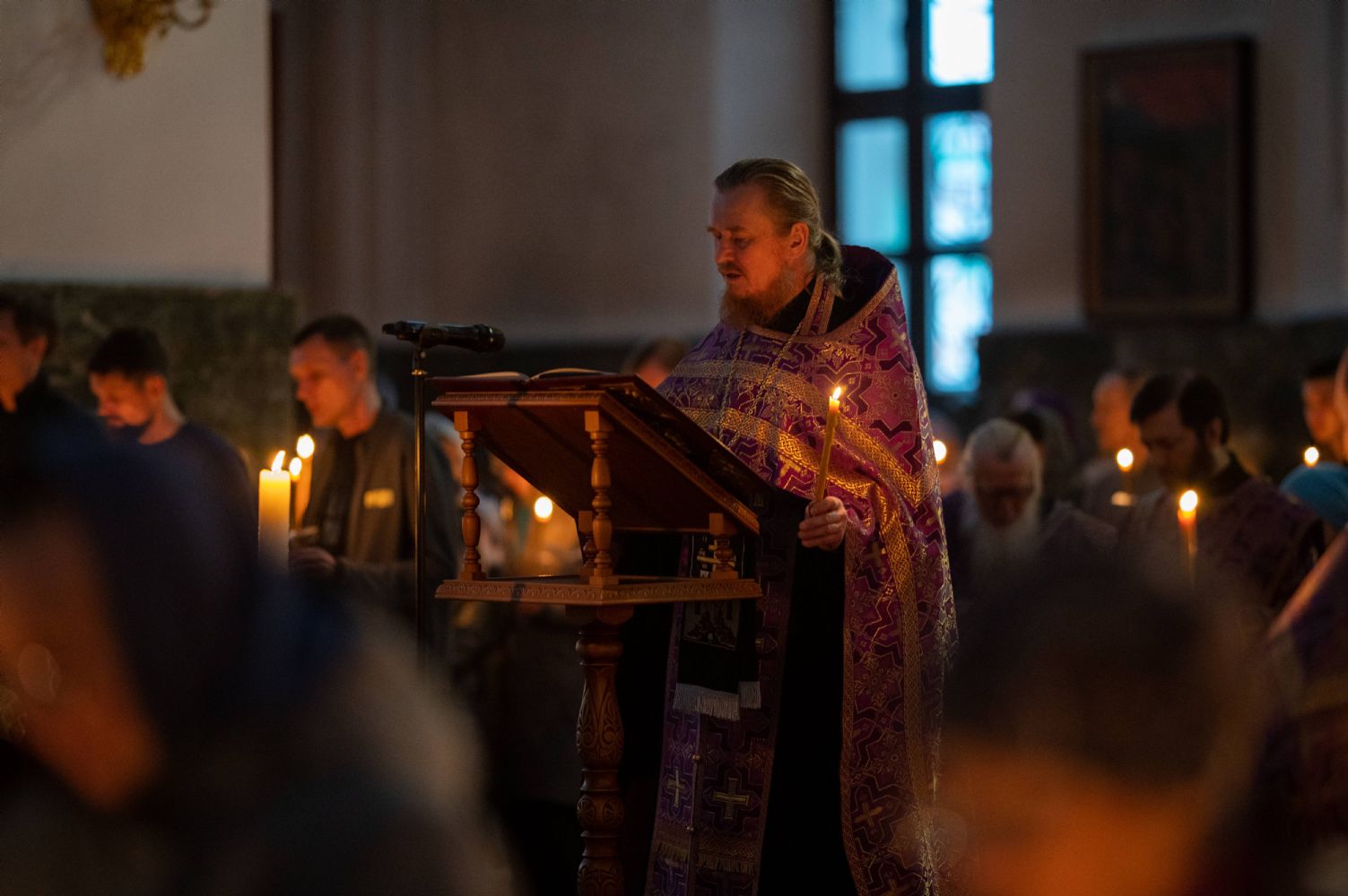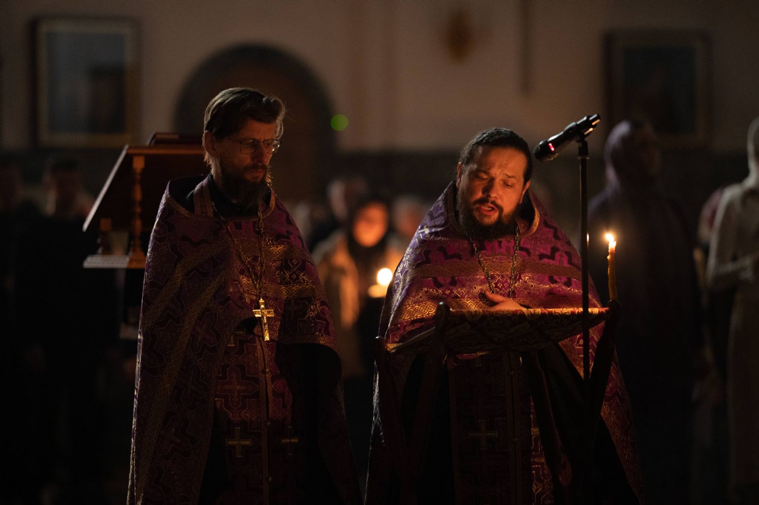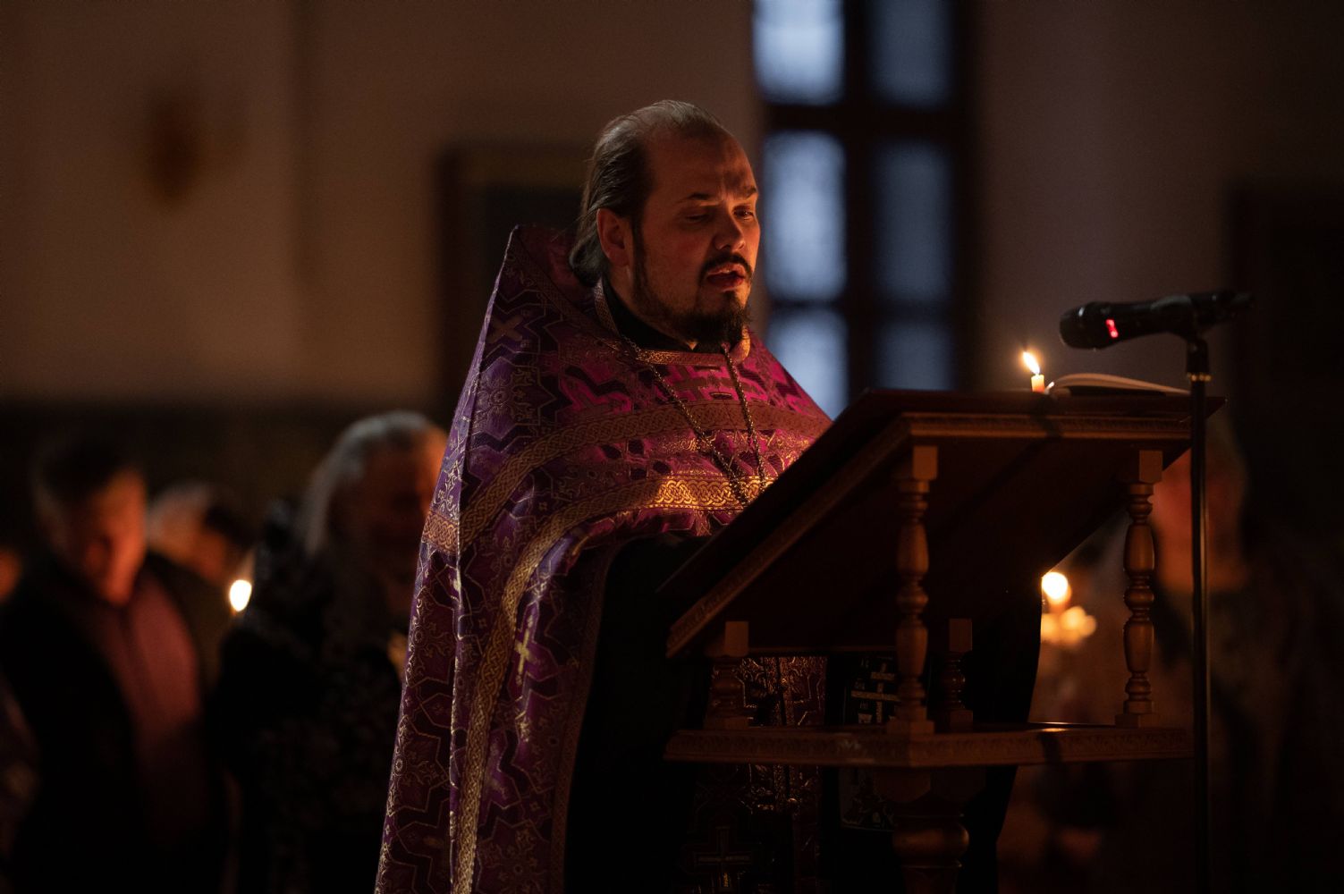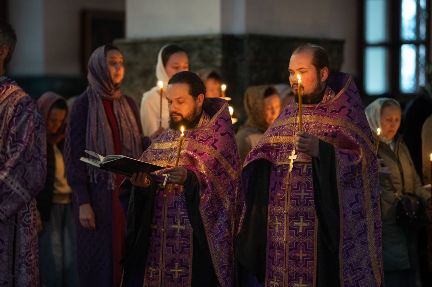 Все богослужение посвящено воспоминанию спасительных страданий и крестной смерти Господа нашего Иисуса Христа. Евангельские отрывки вместе с владыкой в центре храма поочередно читали сослужившие ему священники – ключарь собора протоиерей Сергий Поглазов, клирики собора Никифор Захаров, Евгений Самойлов, Александр Староверов и Иоанн Милютин.
