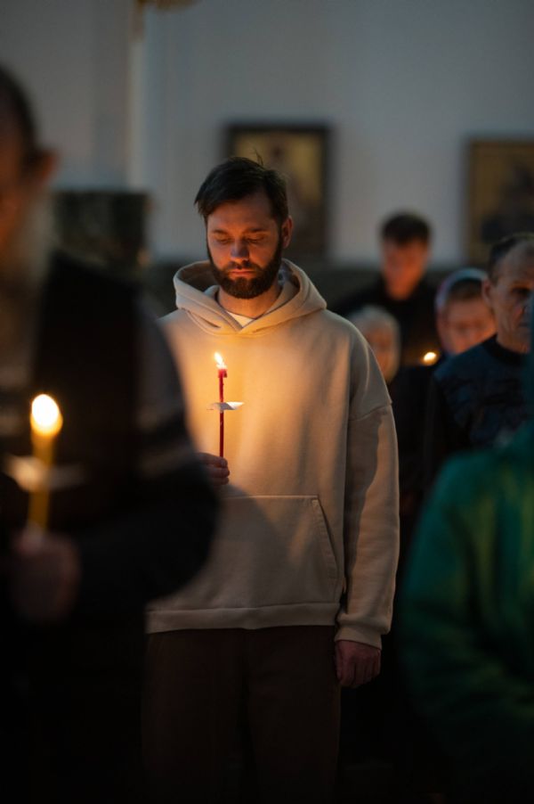Трипеснец преподобного Космы Маюмского в центре храма перед Распятием читали иереи Никифор Захаров и Евгений Самойлов.