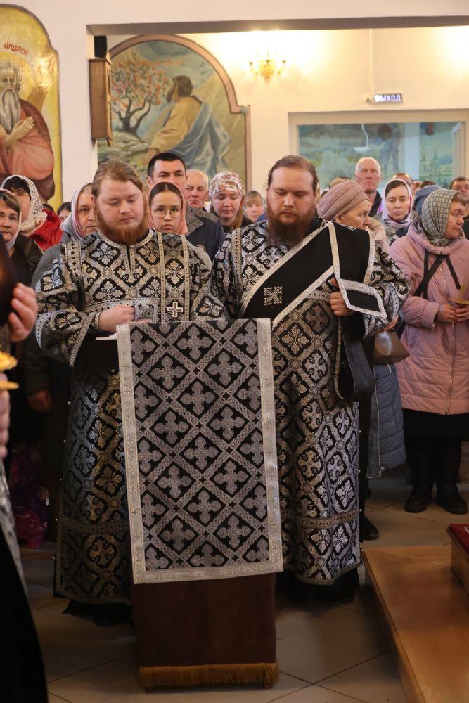 Архипастырю сослужили клирики кафедрального собора иерей Николай Аникин, иеромонах Александр (Чеборов), иерей Иоанн Лапшинский, иеромонах Питирим (Мосякин), диакон Иоанн Захаров, диакон Александр Викторов. Песнопения исполнял архиерейский хор под управлением Любови Михеевой.