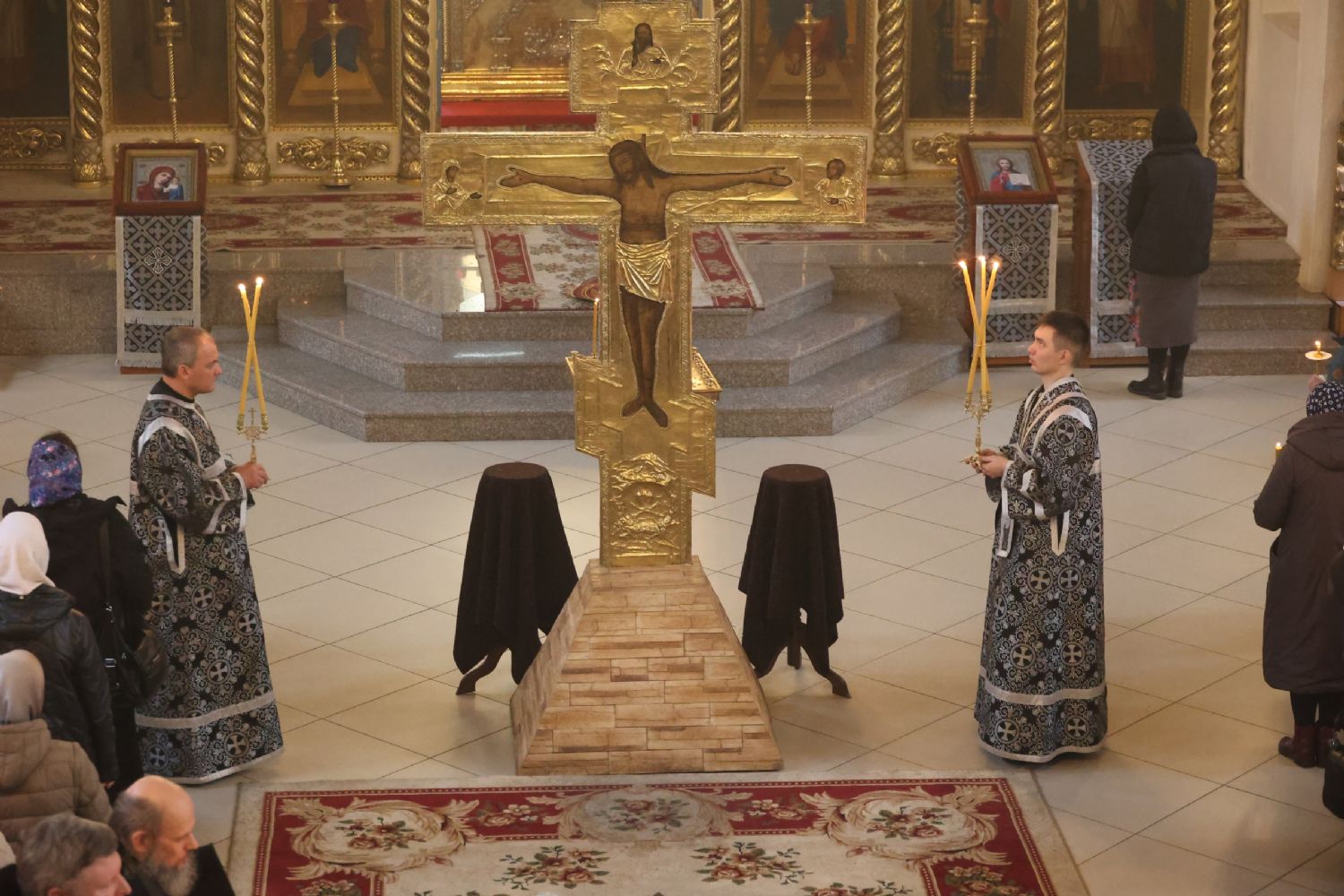 Завершилось богослужение пением тропаря Великой Пятницы: «Искупил Ты нас от ветхозаветного проклятия честною Своею Кровью, позволив Себя ко Кресту пригвоздить и копьём пронзить, Ты людям даровал бессмертие. Спаситель наш, слава Тебе!»