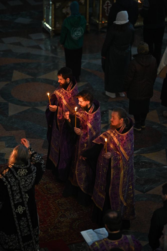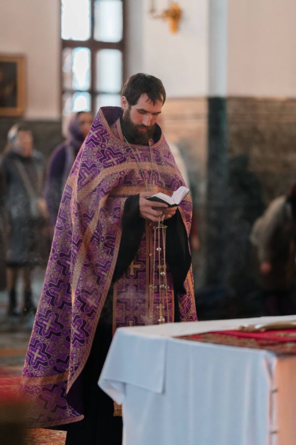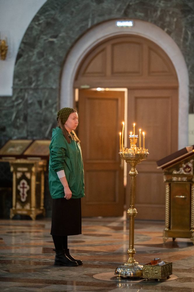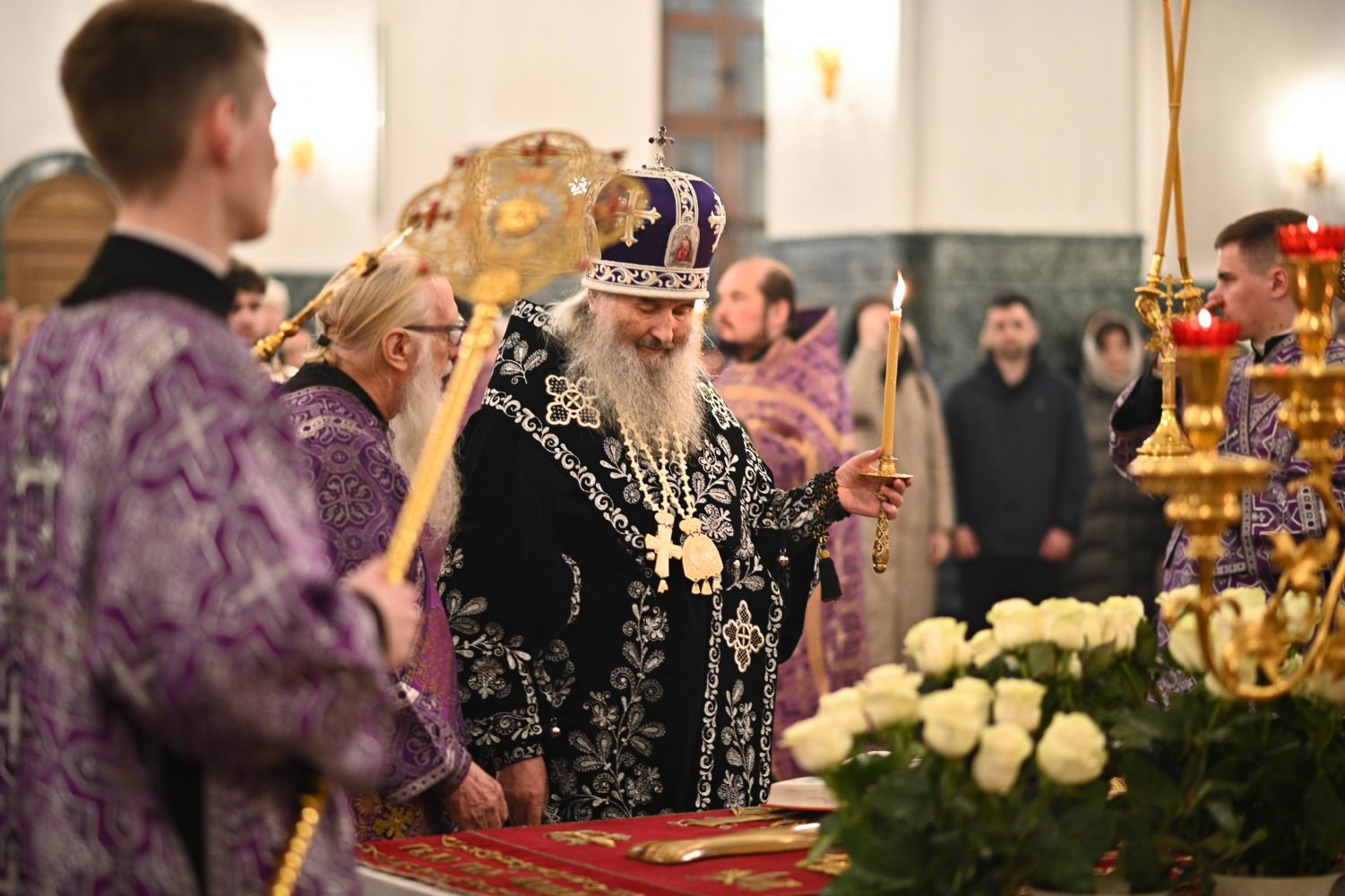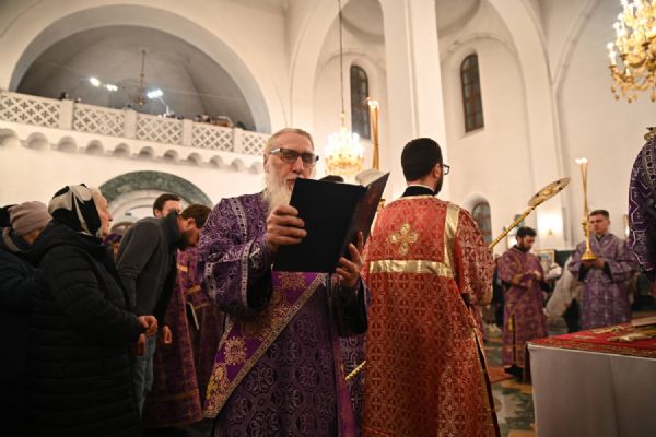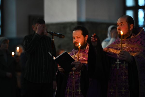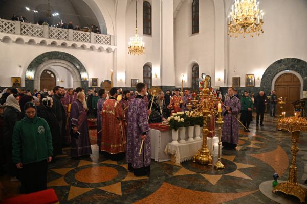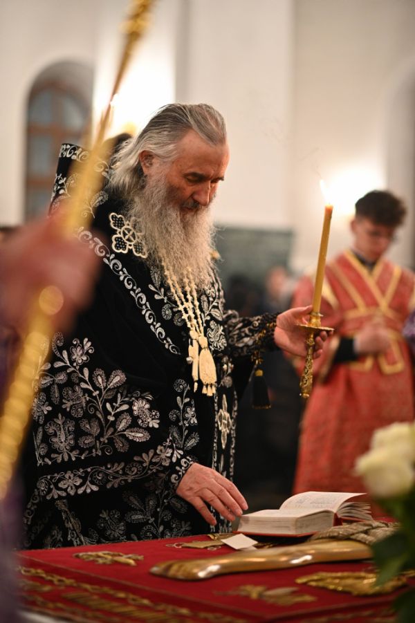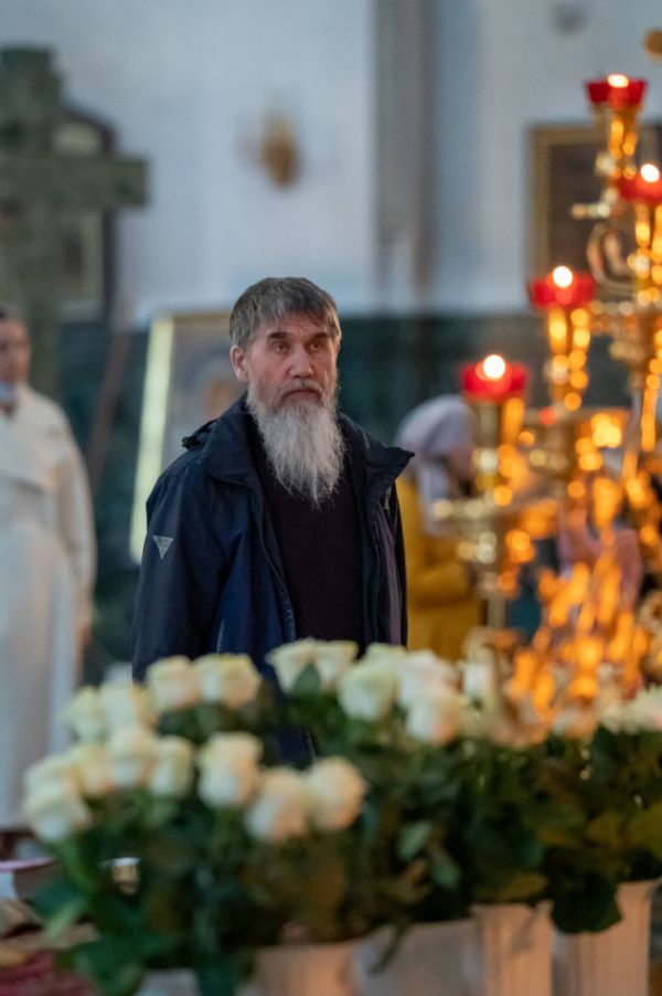 Его Высокопреосвященству сослужили ключарь кафедрального собора протоиерей Сергий Поглазов, клирики собора и протодиакон Михаил Козловский. Песнопения исполнял архиерейский хор «Благовест» под руководством регента Татьяны Черновой.