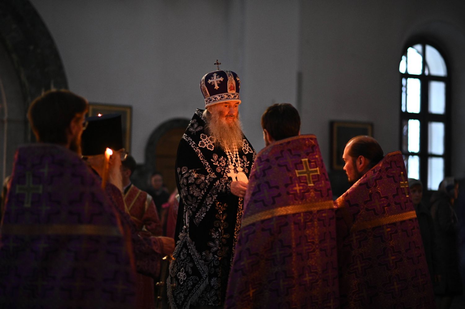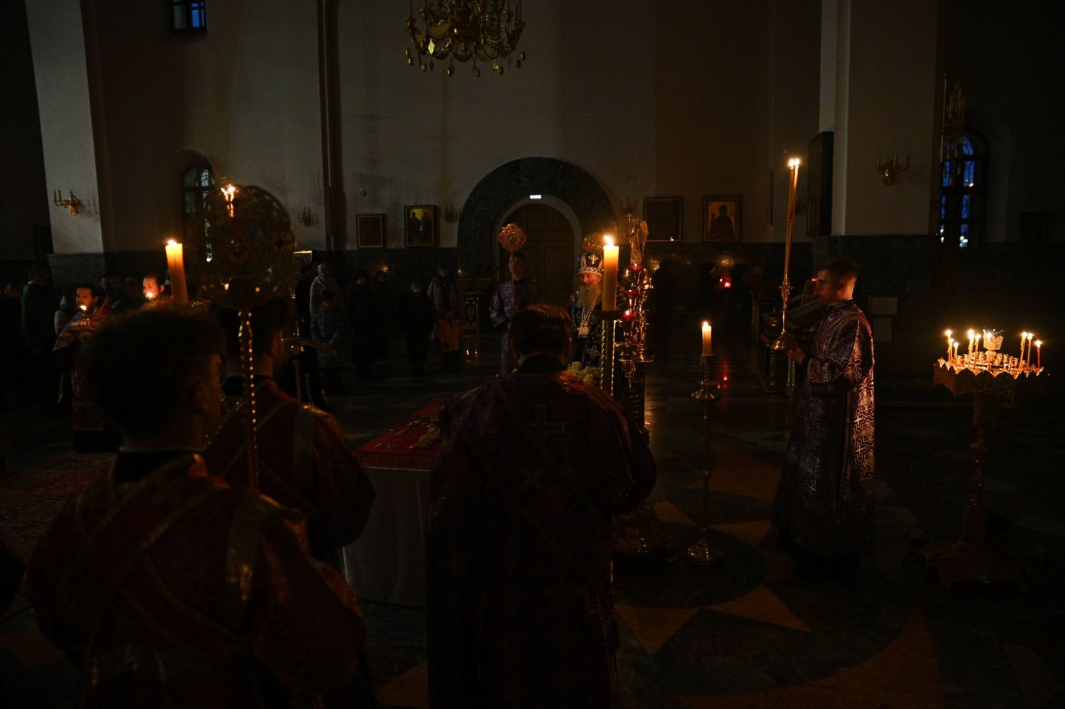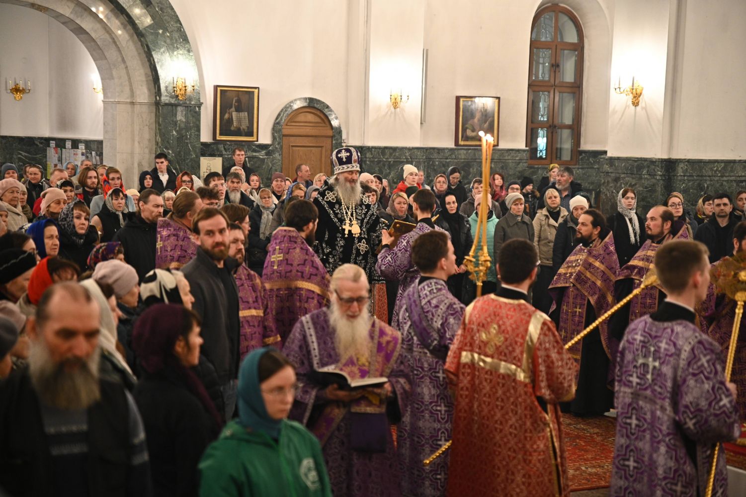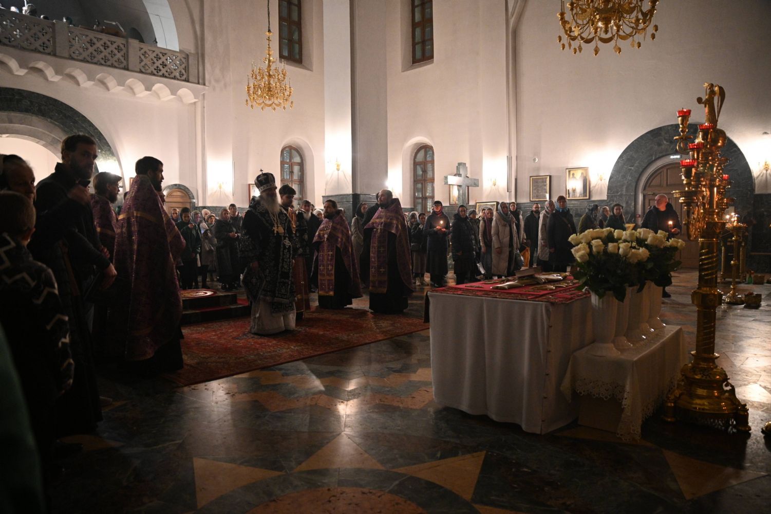 Его Высокопреосвященству сослужили ключарь кафедрального собора протоиерей Сергий Поглазов, клирики собора и протодиакон Михаил Козловский. Песнопения исполнял архиерейский хор «Благовест» под руководством регента Татьяны Черновой.