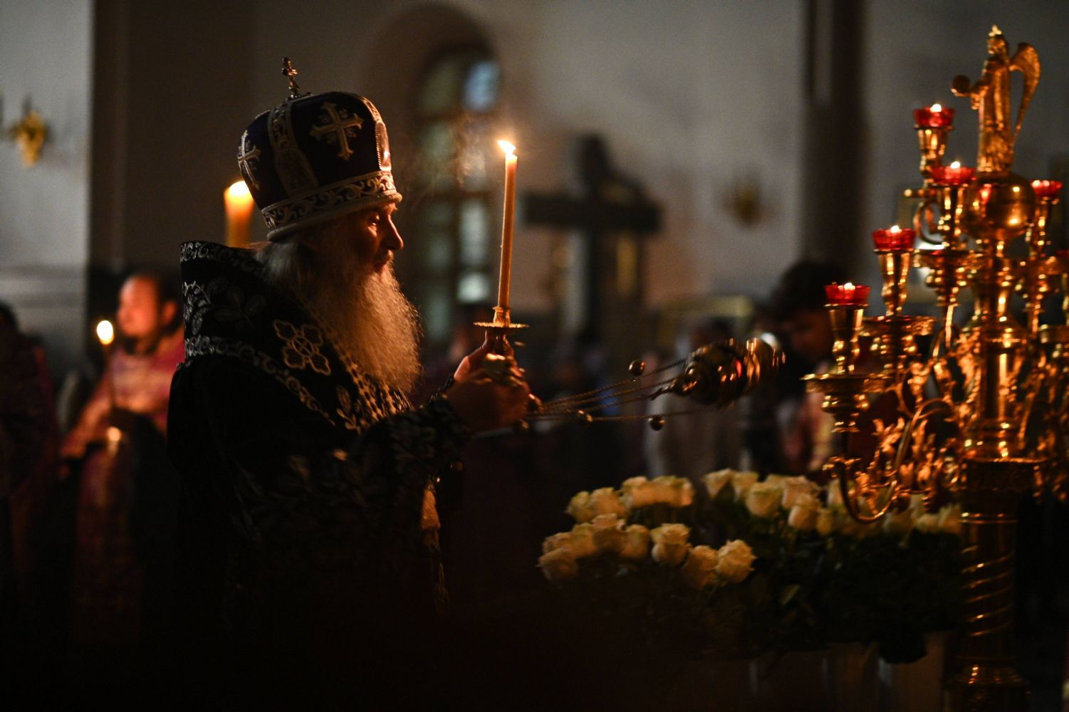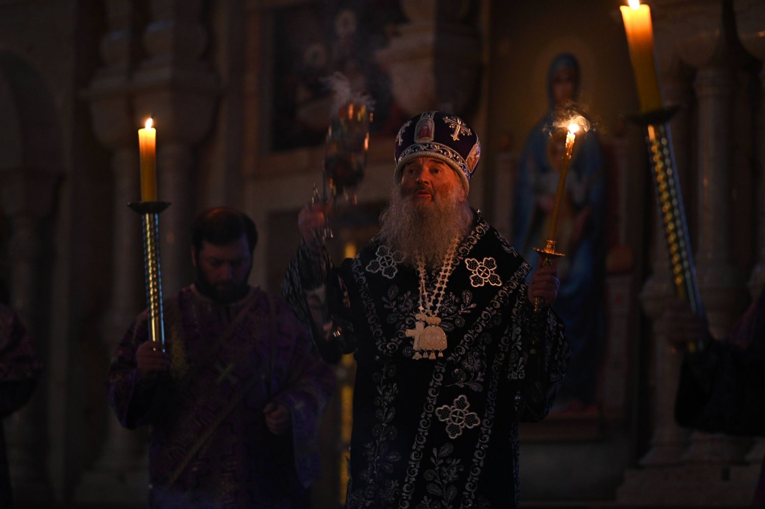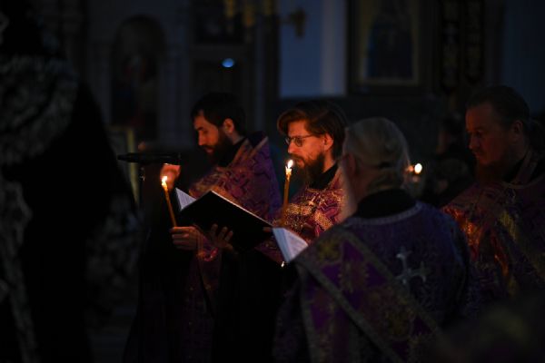 Вечером Страстной Пятницы, 10 апреля, митрополит Иоанн возглавил утреню Великой Субботы с чином погребения Плащаницы в Благовещенском кафедральном соборе.