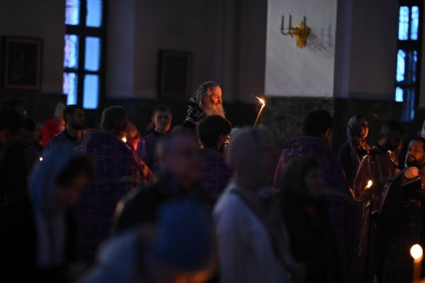 Митрополит Иоанн совершил утреню Великой Субботы с чином погребения Плащаницы Спасителя 132