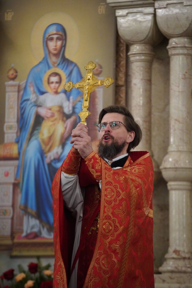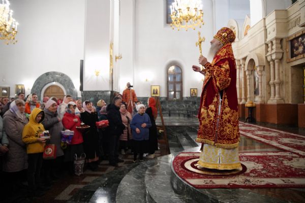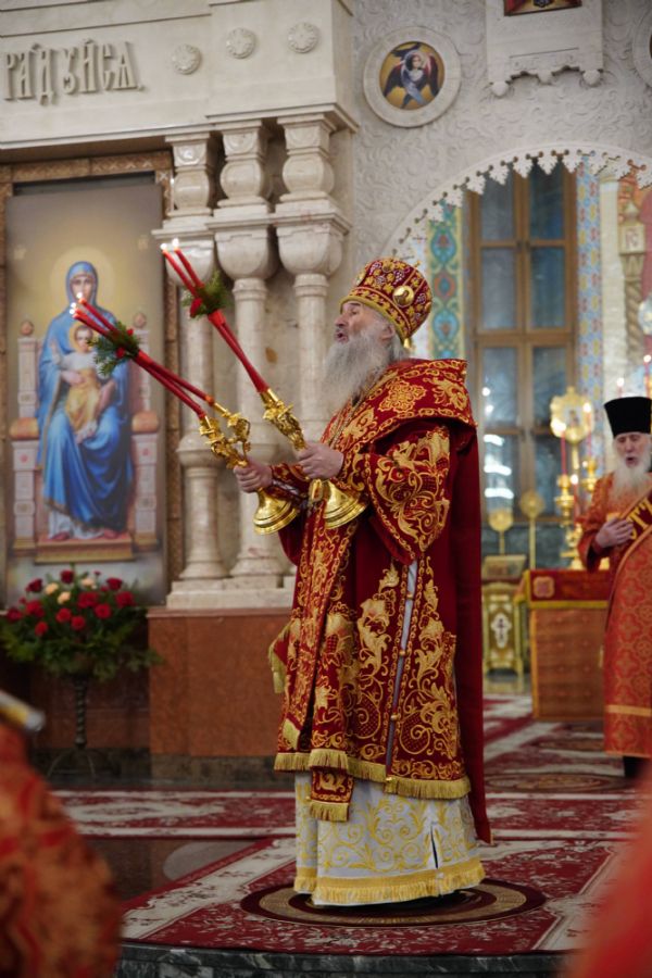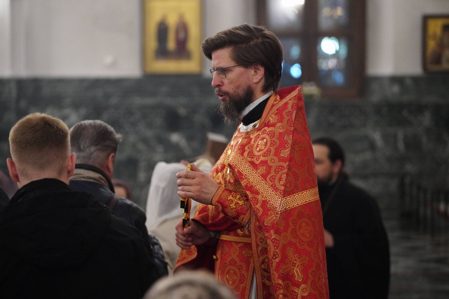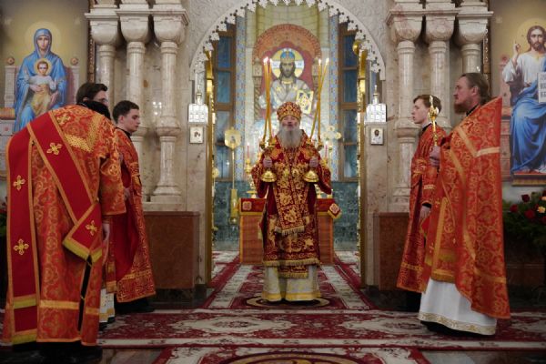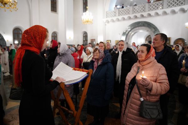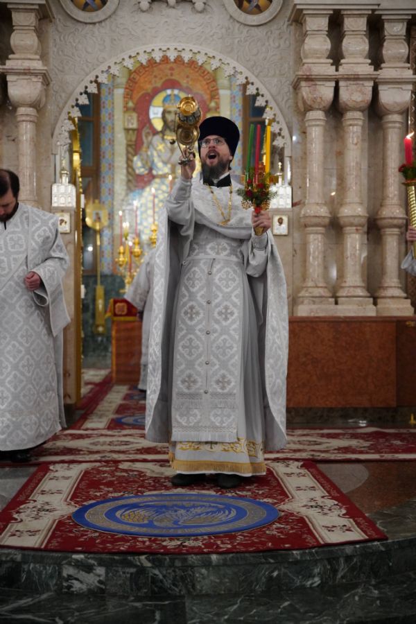 Владыке сослужили ключарь собора протоиерей Сергий Поглазов, клирики собора и протодиакон Михаил Козловский. Богослужебные песнопения исполняли старший и младший составы детско-юношеского хора «Благовест» под руководством регентов Татьяны Черновой и Надежды Поздеевой.