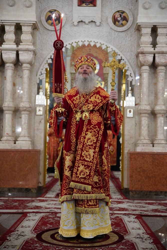 По заамвонной молитве митрополит Иоанн освятил артос и поздравил всех с великим праздником Воскресения Господа нашего Иисуса Христа, пожелав пасхальной радости в сердцах.