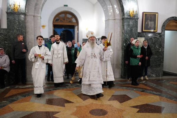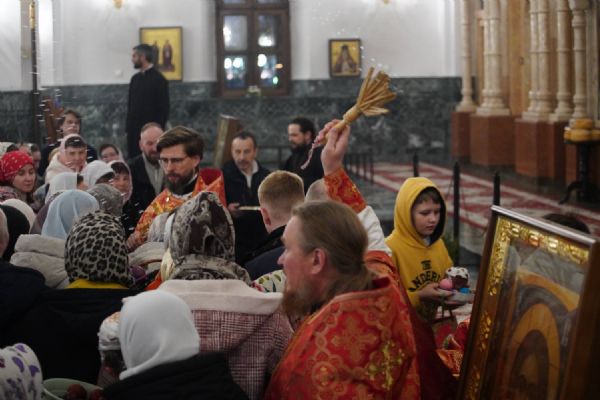 Под пение стихиры «Воскресение Твое, Христе Спасе» был совершен крестный ход вокруг собора. По традиции, за пасхальной заутреней владыка прочитал Слово огласительное святителя Иоанна Златоуста на Святую Пасху.