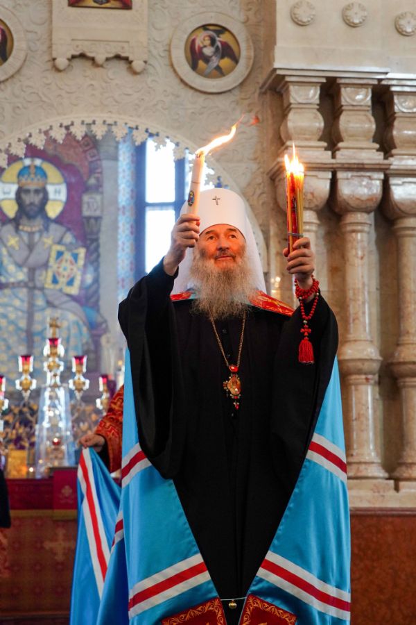 12 апреля, в праздник Светлого Христова Воскресения, митрополит Йошкар-Олинский и Марийский Иоанн совершил Пасхальную вечерню в Благовещенском кафедральном соборе.