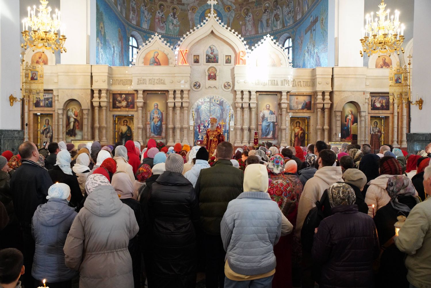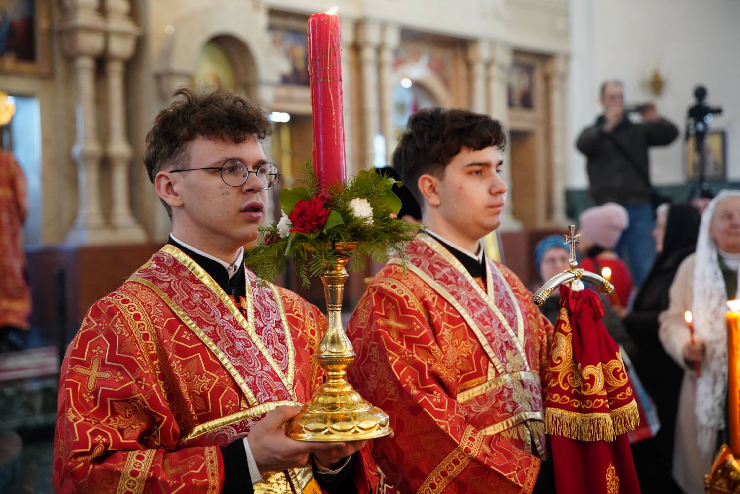 Архипастырю сослужили секретарь Йошкар-Олинского епархиального управления иерей Димитрий Дьяков, ключарь кафедрального собора протоиерей Сергий Поглазов, клирики собора, а также настоятель Покровского храма с. Марисола протоиерей Сергий Сильдушкин и протодиакон Михаил Козловский. Песнопения исполнял детско-юношеский хор «Благовест» под управлением Татьяны Черновой.