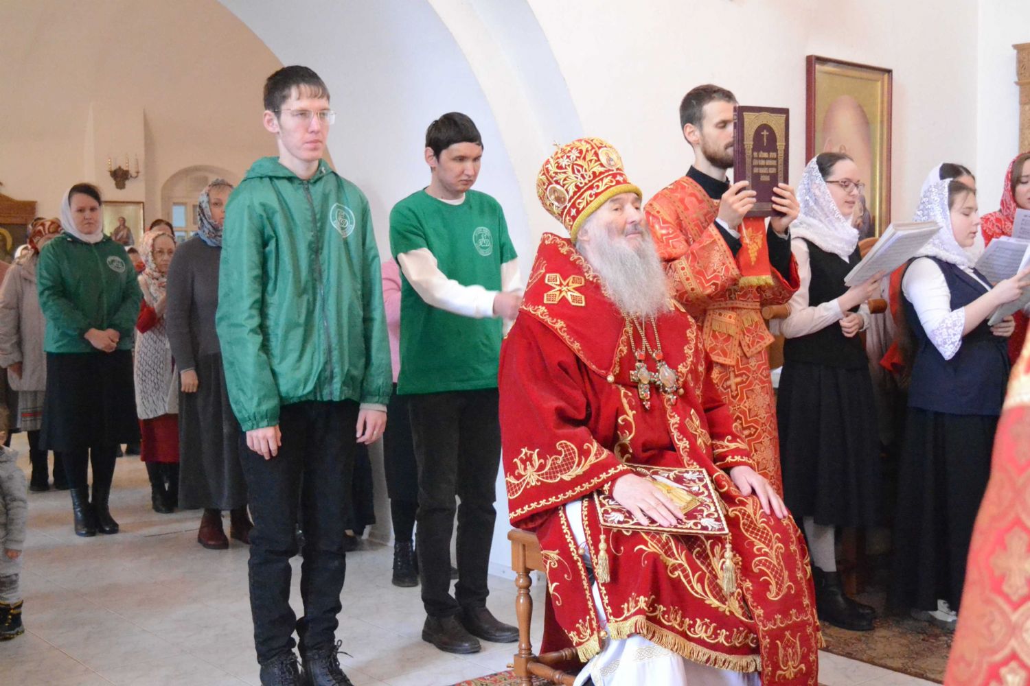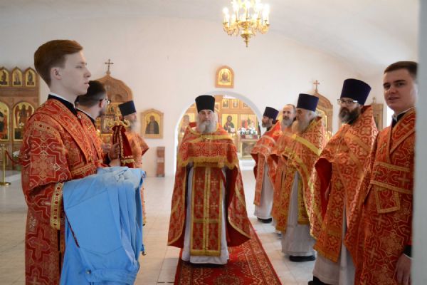 Архипастырю сослужили секретарь Йошкар-Олинского епархиального управления иерей Димитрий Дьяков, клирик монастыря иерей Михаил Лежнин и духовенство храмов епархии, а также гость из Ярославской епархии протоиерей Алексий Кириллов. Песнопения исполнял архиерейский хор «Благовест» под управлением регента Татьяны Черновой.