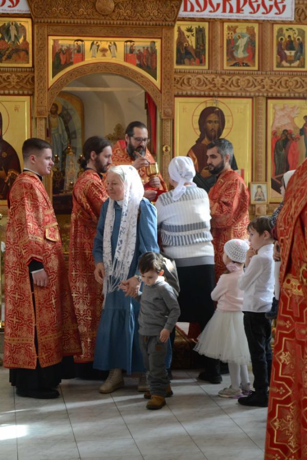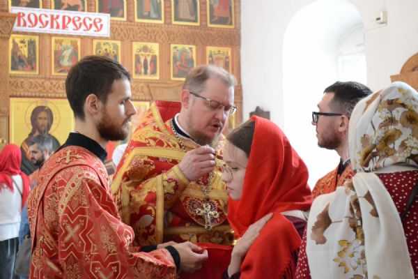 Да, во Христа мы крестились, но облекаемся ли мы в эту новую жизнь во Христе? Облечение это происходит прежде всего в духовной, литургической жизни, когда Сам Господь в таинствах церковных укрепляет нас, очищает в таинстве Покаяния от грехов, сподобляет в таинстве Святого Причащения соединиться с Ним. А особенно в святые пасхальные дни Господь являет нам великую духовную радость и призывает нас как можно чаще приступали к таинству Святого Причащения.
