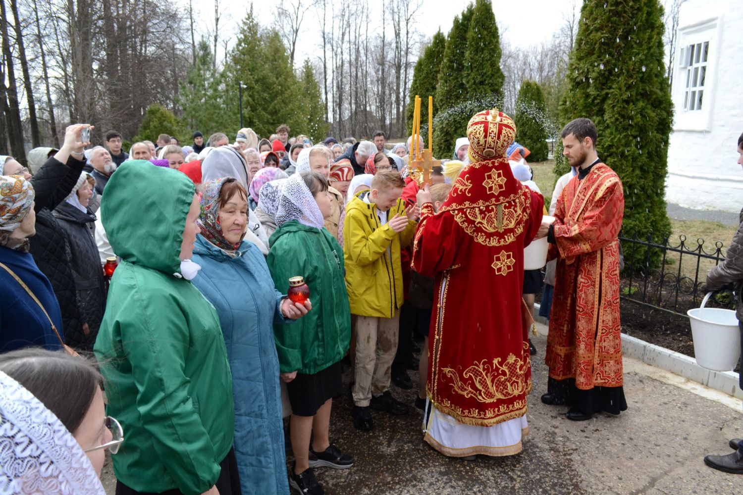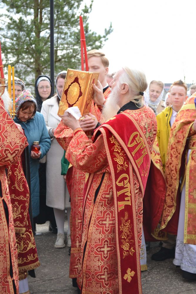 После Литургии прошел крестный ход пасхальным чином с чтением Евангелия и кроплением святой водой. Затем владыка обратился к собравшимся с проповедью о пасхальной радости, которую в эти светлые дни ощущает каждый человек.