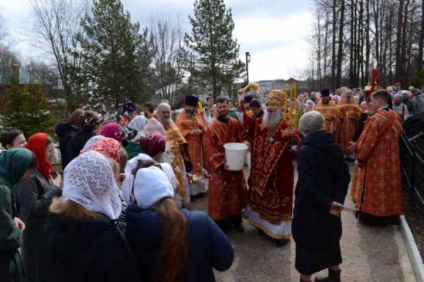 14 апреля, во вторник Светлой седмицы, митрополит Йошкар-Олинский и Марийский Иоанн возглавил Божественную литургию в Мироносицком женском монастыре с. Ежово.