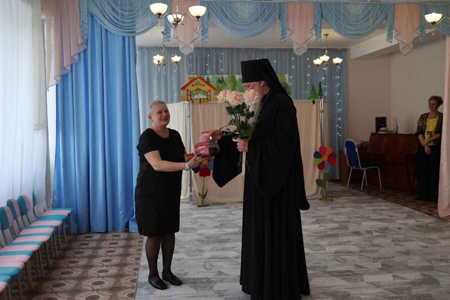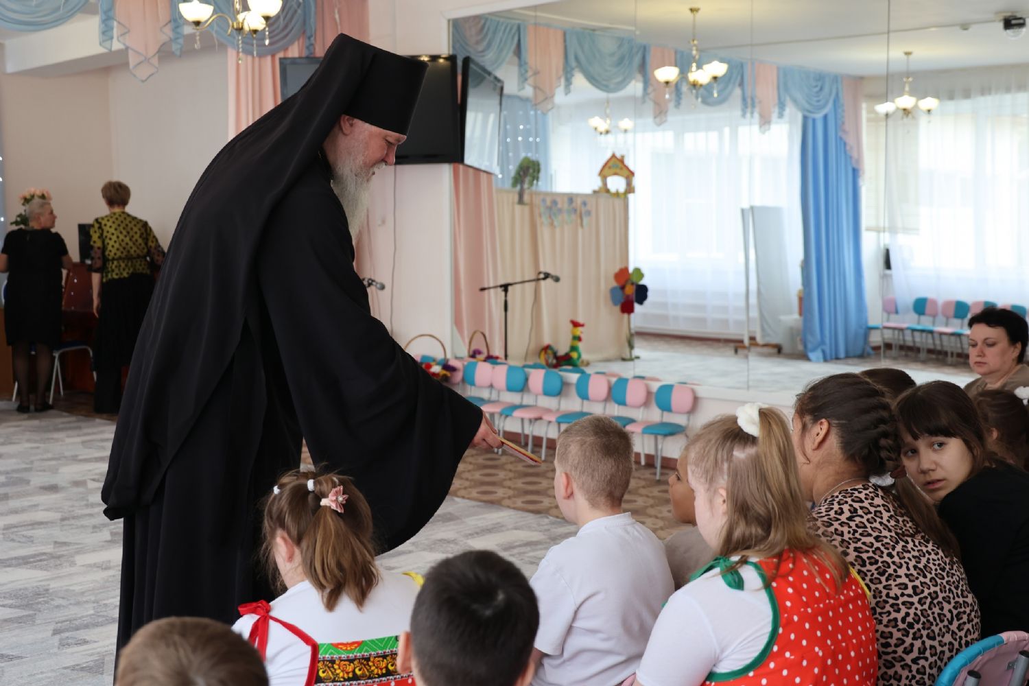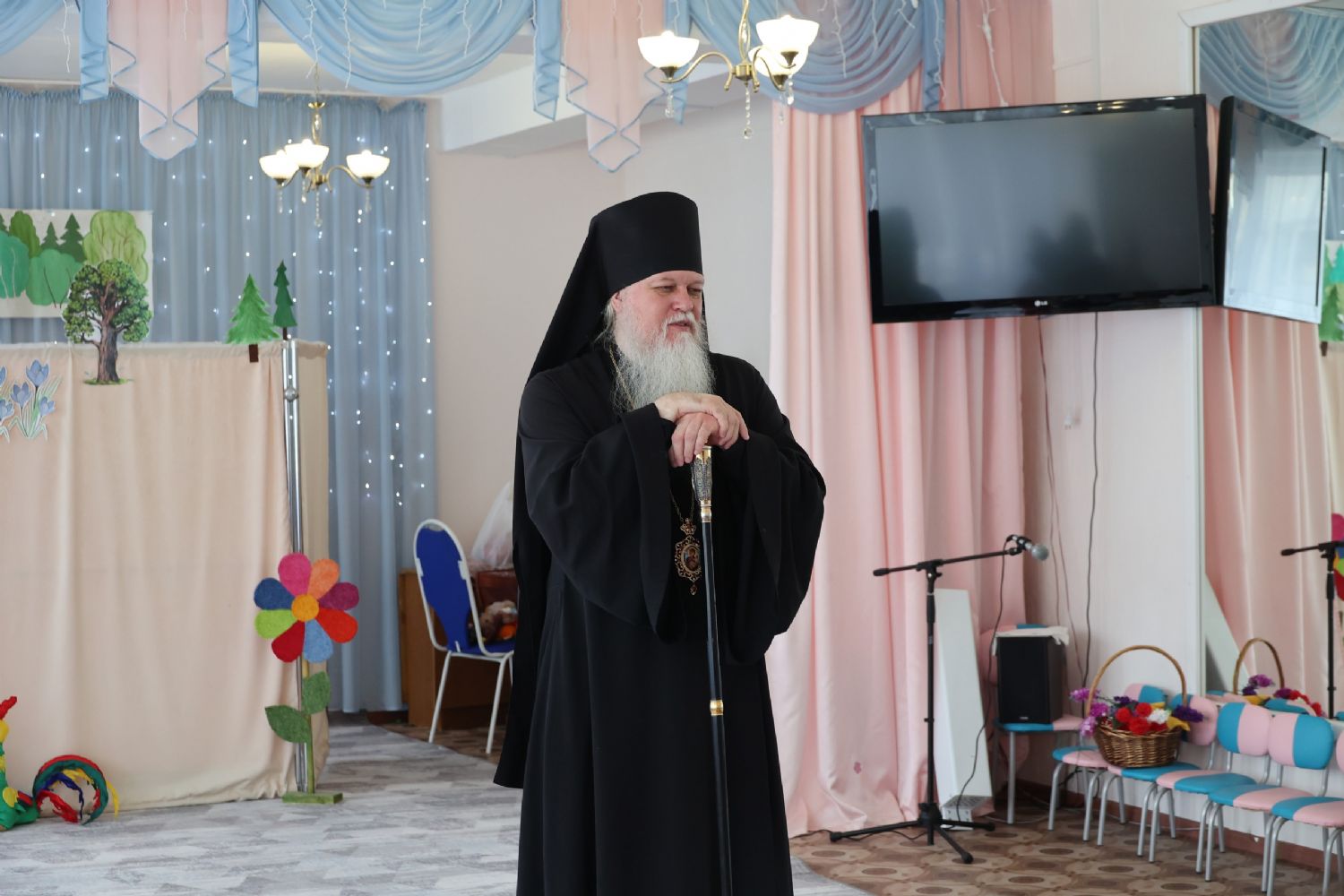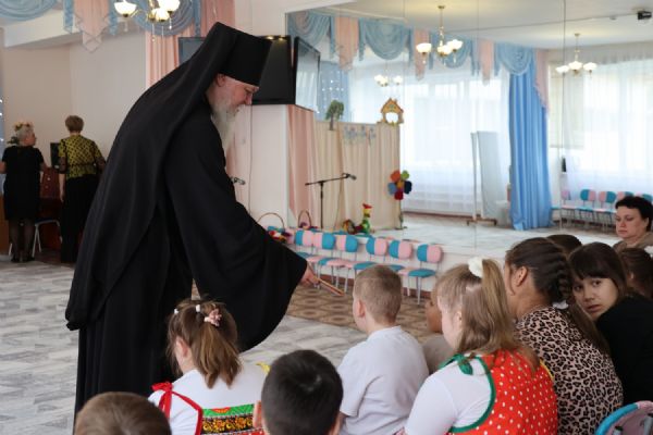 Вначале ребята выступили перед гостями с танцем и кукольной постановкой. Затем епископ Феофан обратился к собравшимся с архипастырским словом, поздравив всех с праздником Светлого Христова Воскресения.