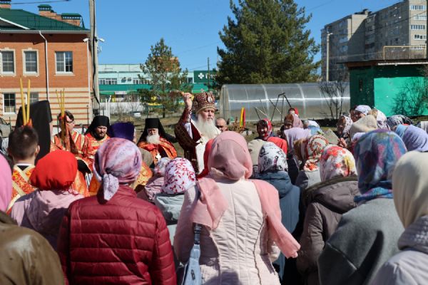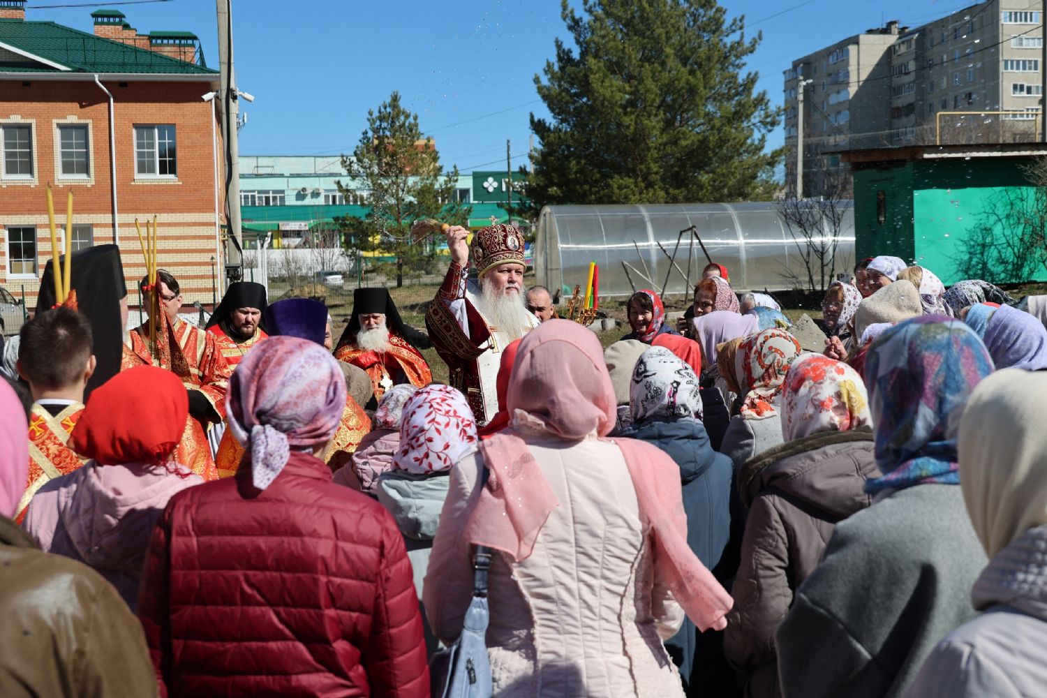 После Литургии прошел пасхальный крестный ход, затем владыка Феофан обратился к верующим с архипастырским словом.