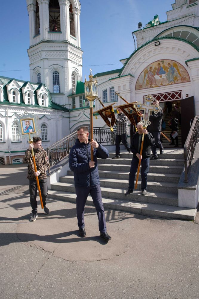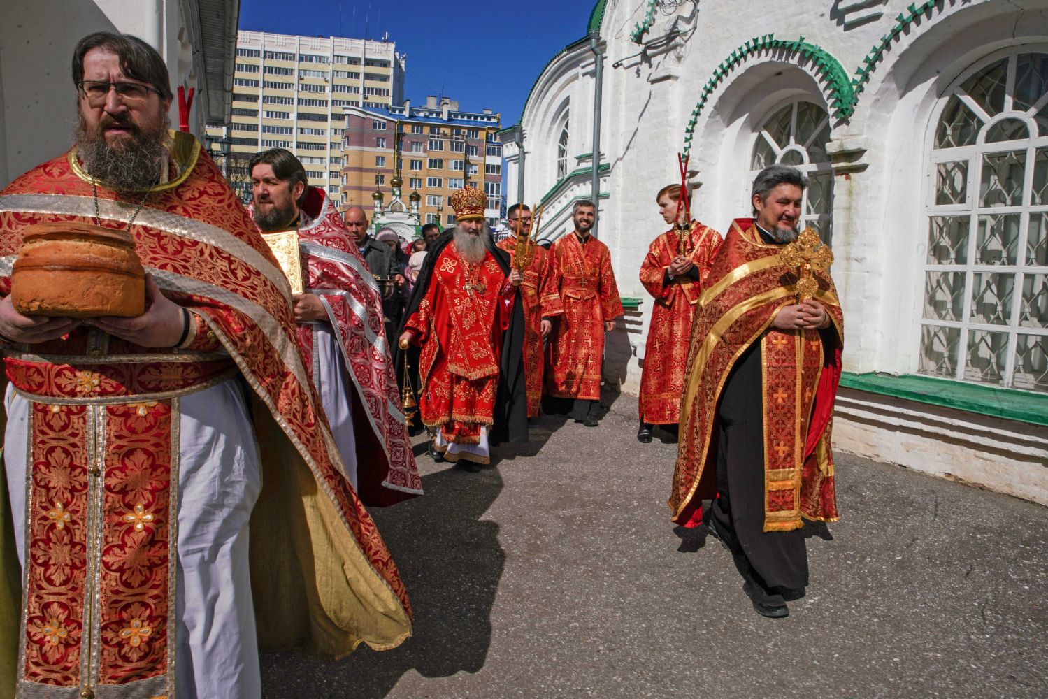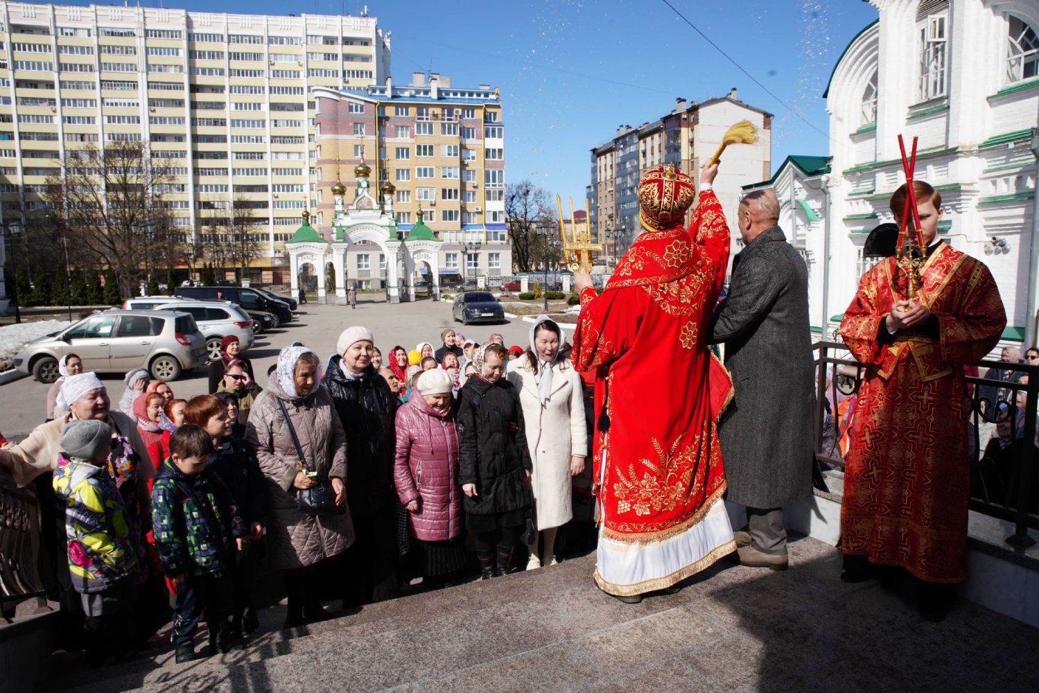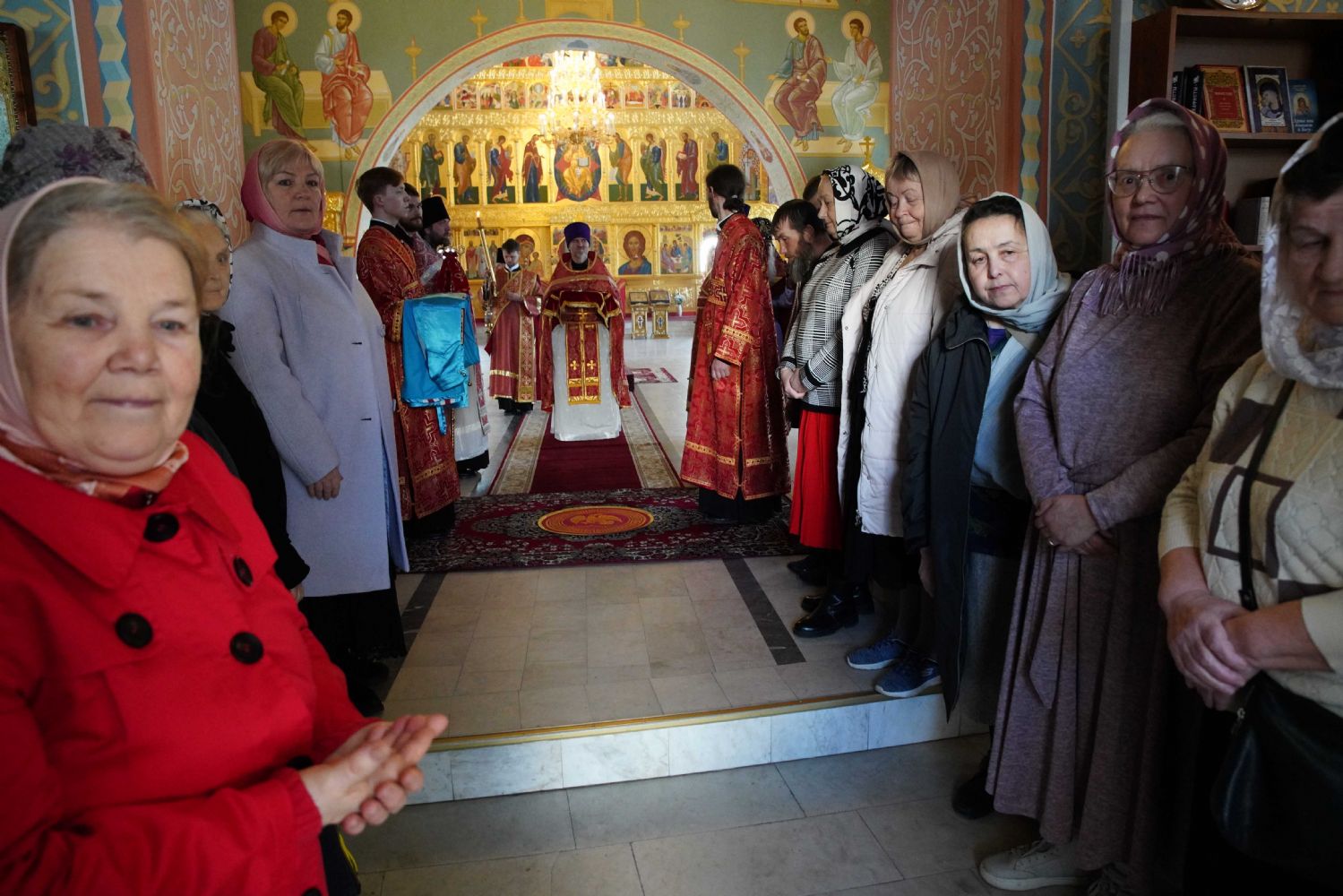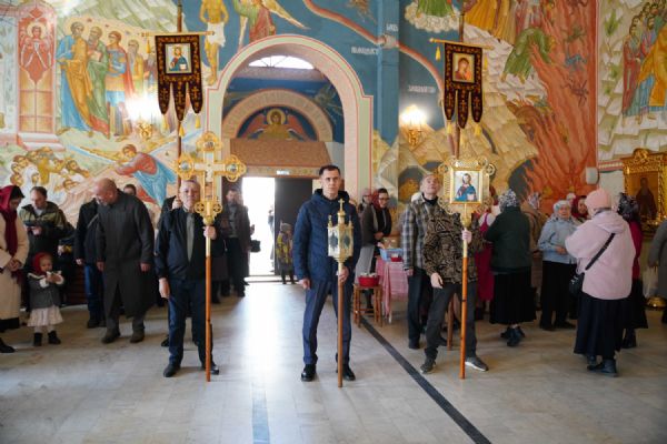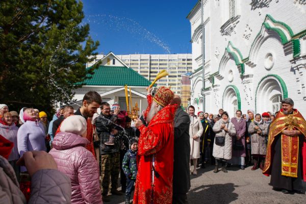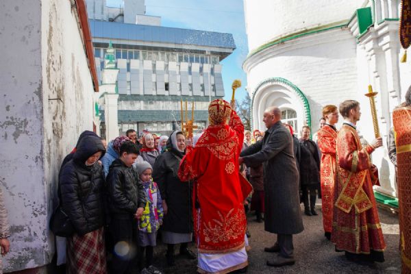 По окончании Литургии был совершен крестный ход вокруг храма с чтением Евангелия и кроплением святой водой.