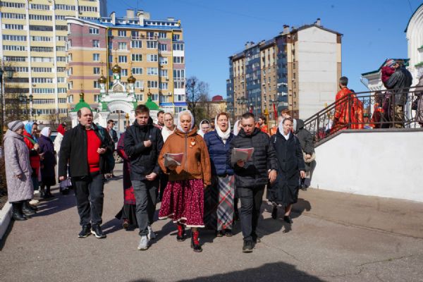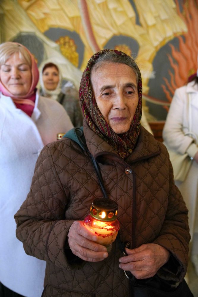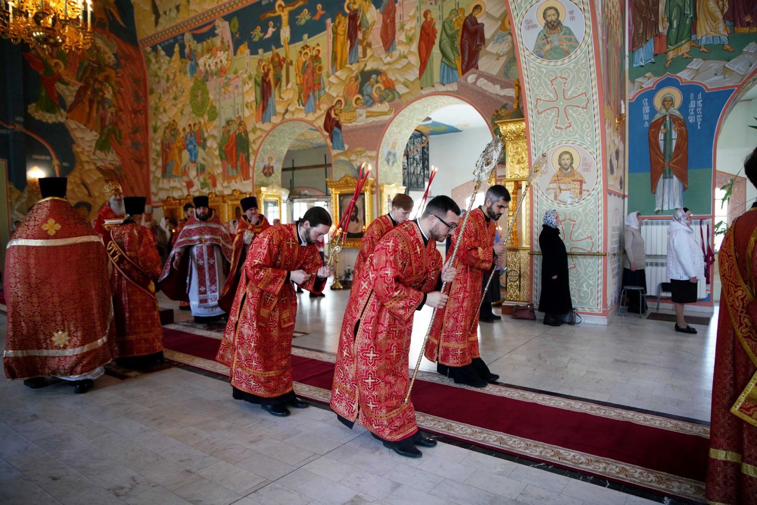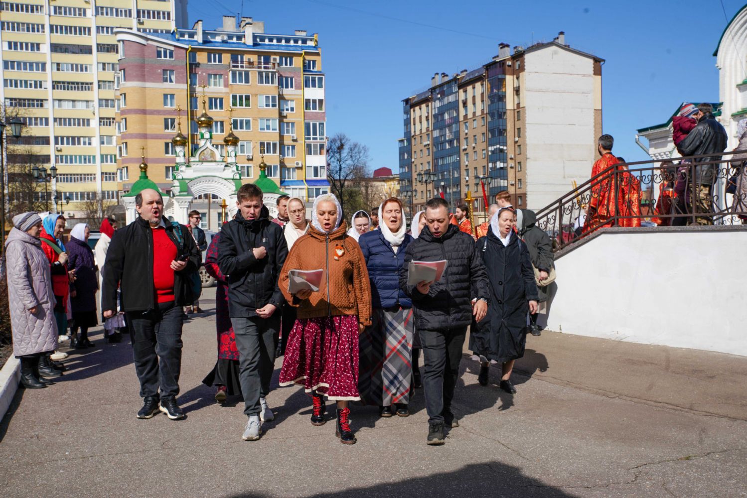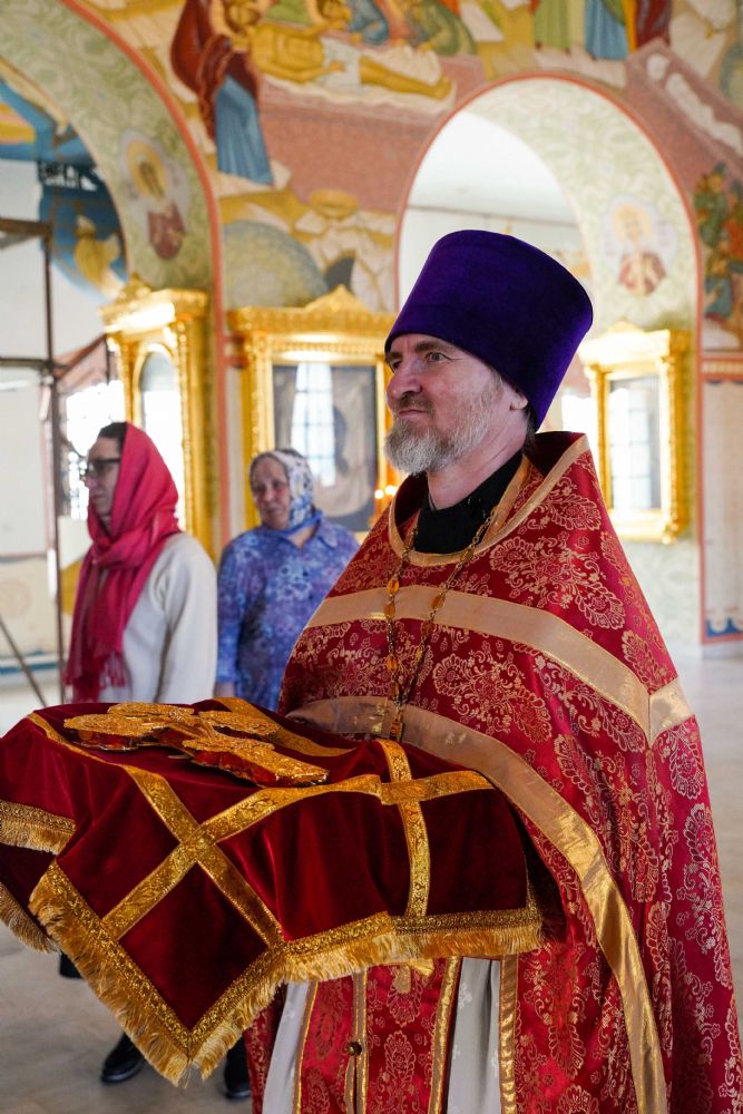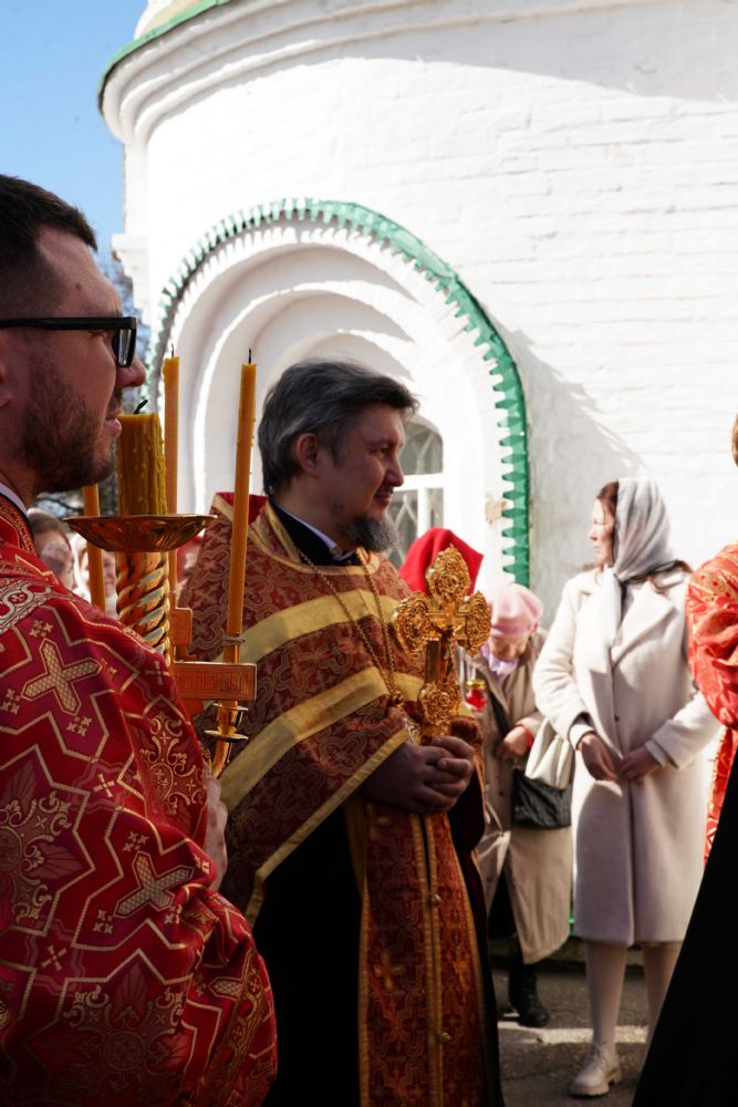 По окончании Литургии был совершен крестный ход вокруг храма с чтением Евангелия и кроплением святой водой.