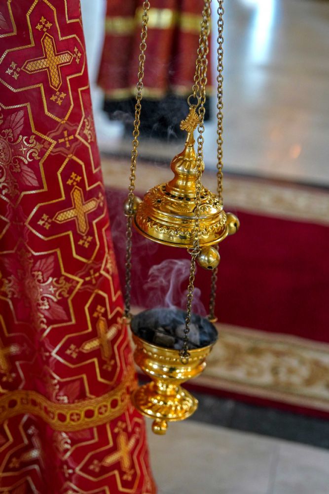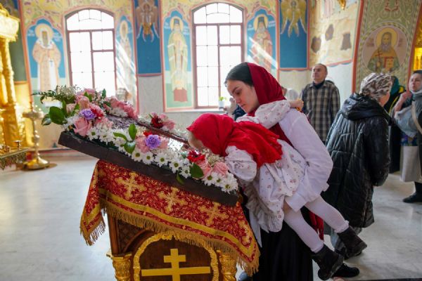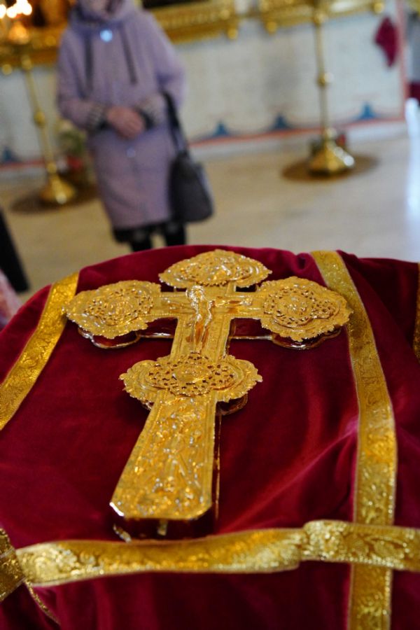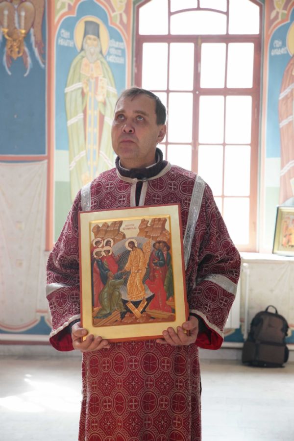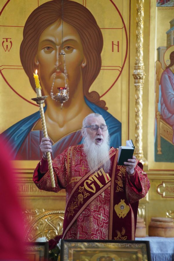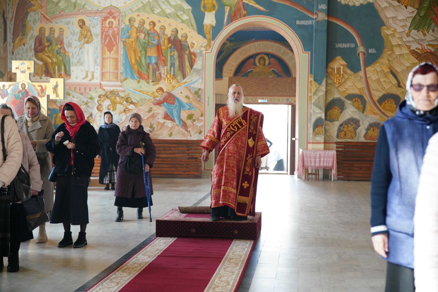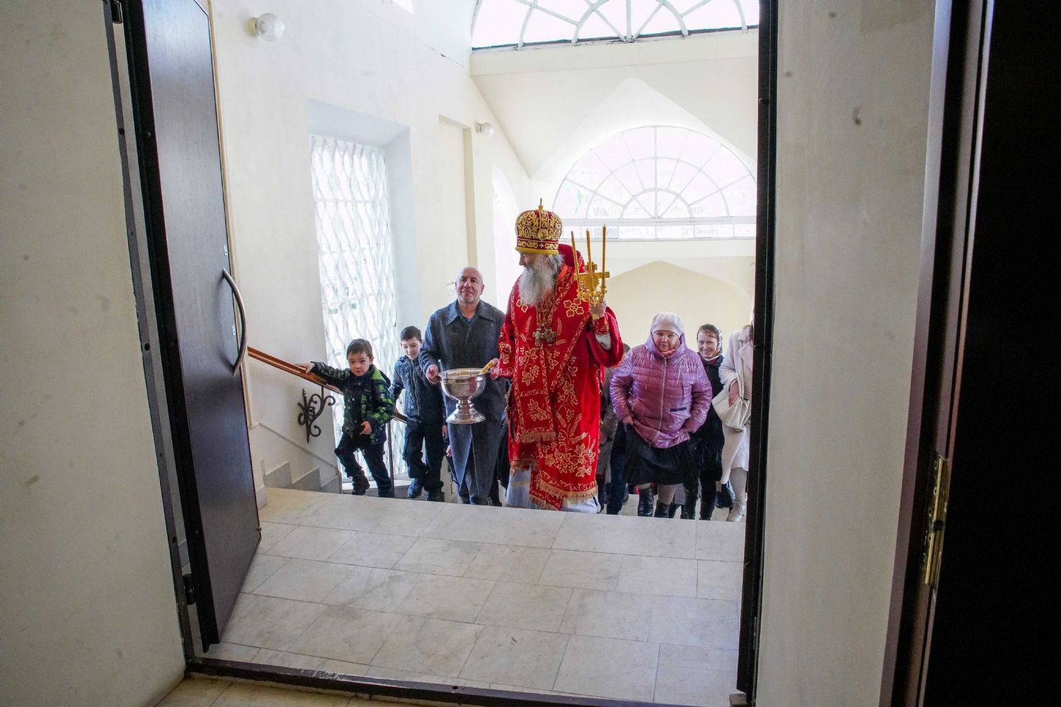 По окончании Литургии был совершен крестный ход вокруг храма с чтением Евангелия и кроплением святой водой.