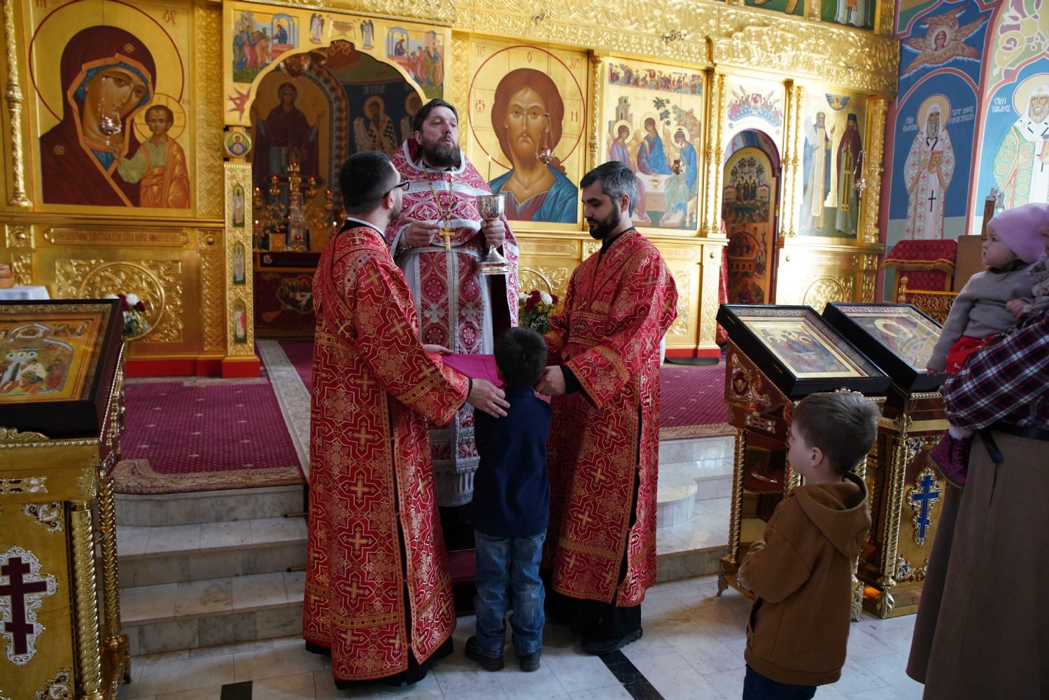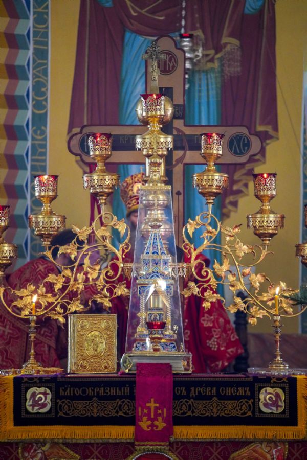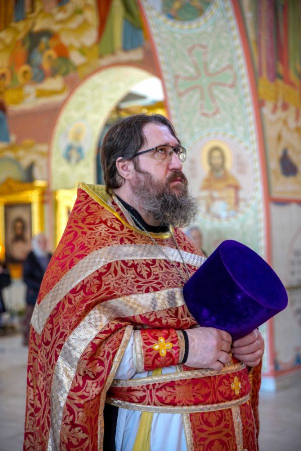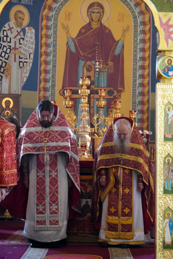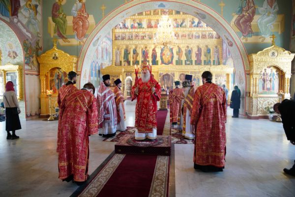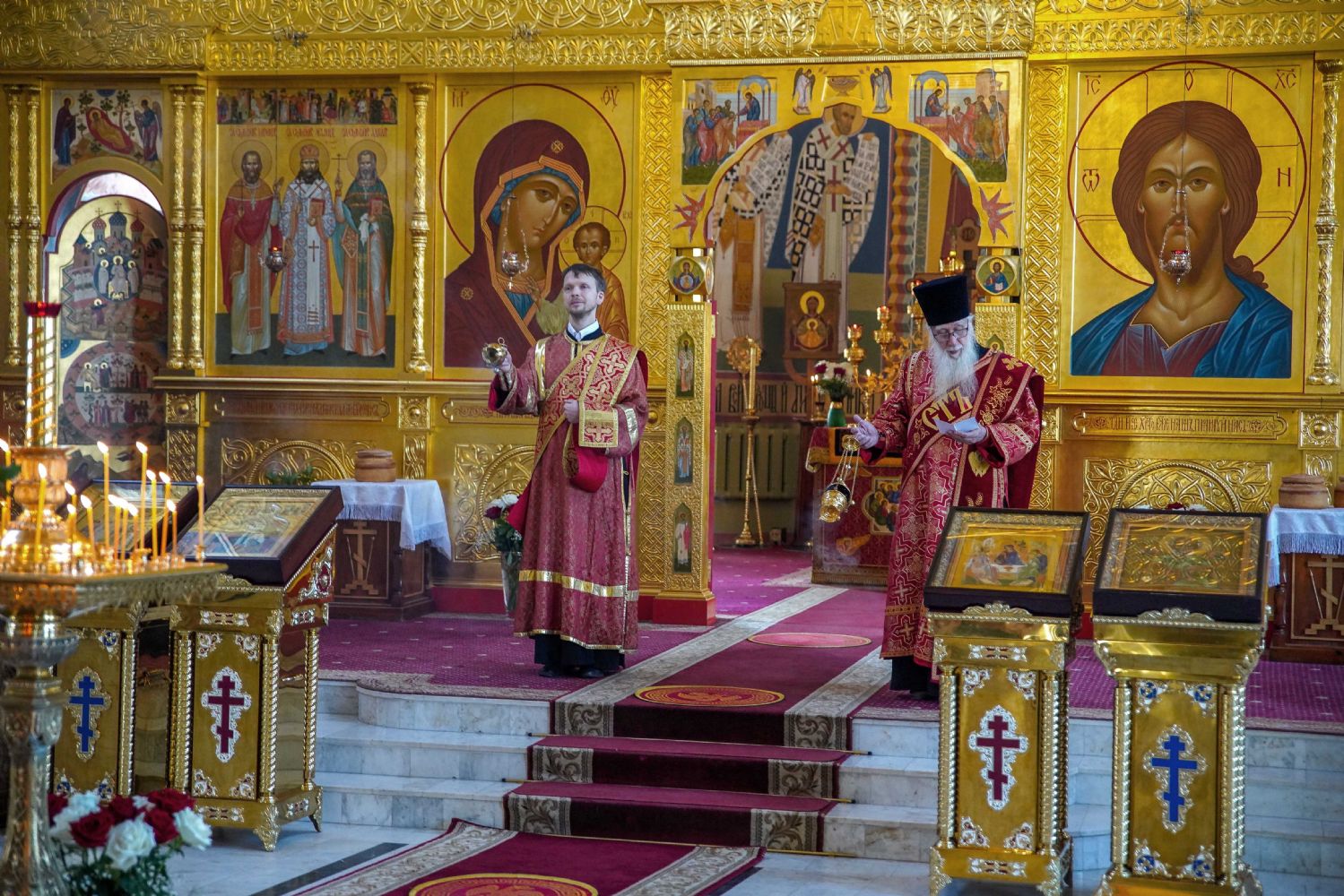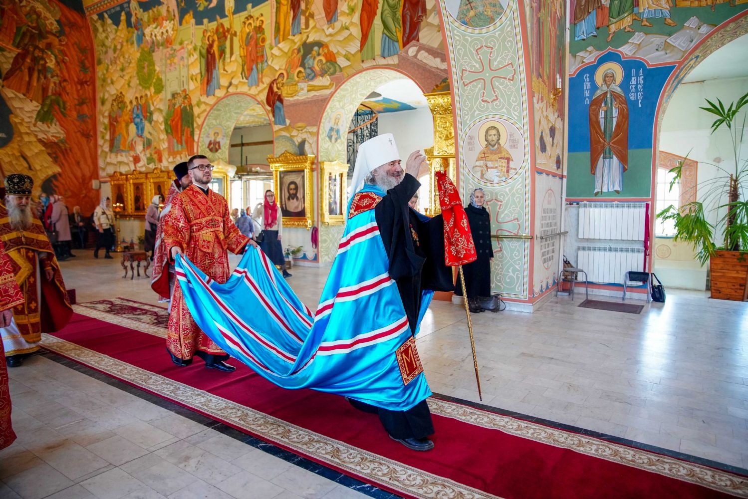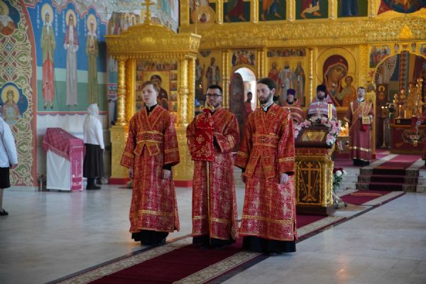 Его Высокопреосвященству сослужили настоятель храма протоиерей Евгений Кутырев, клирики Вознесенского собора Йошкар-Олы протоиерей Андрей Норкин, иерей Владимир Глебов, иерей Александр Деревяшкин и диакон Владимир Лихачев, а также протодиакон Михаил Козловский. Песнопения исполнял хор храма под управлением регента Анны Ярошевич.