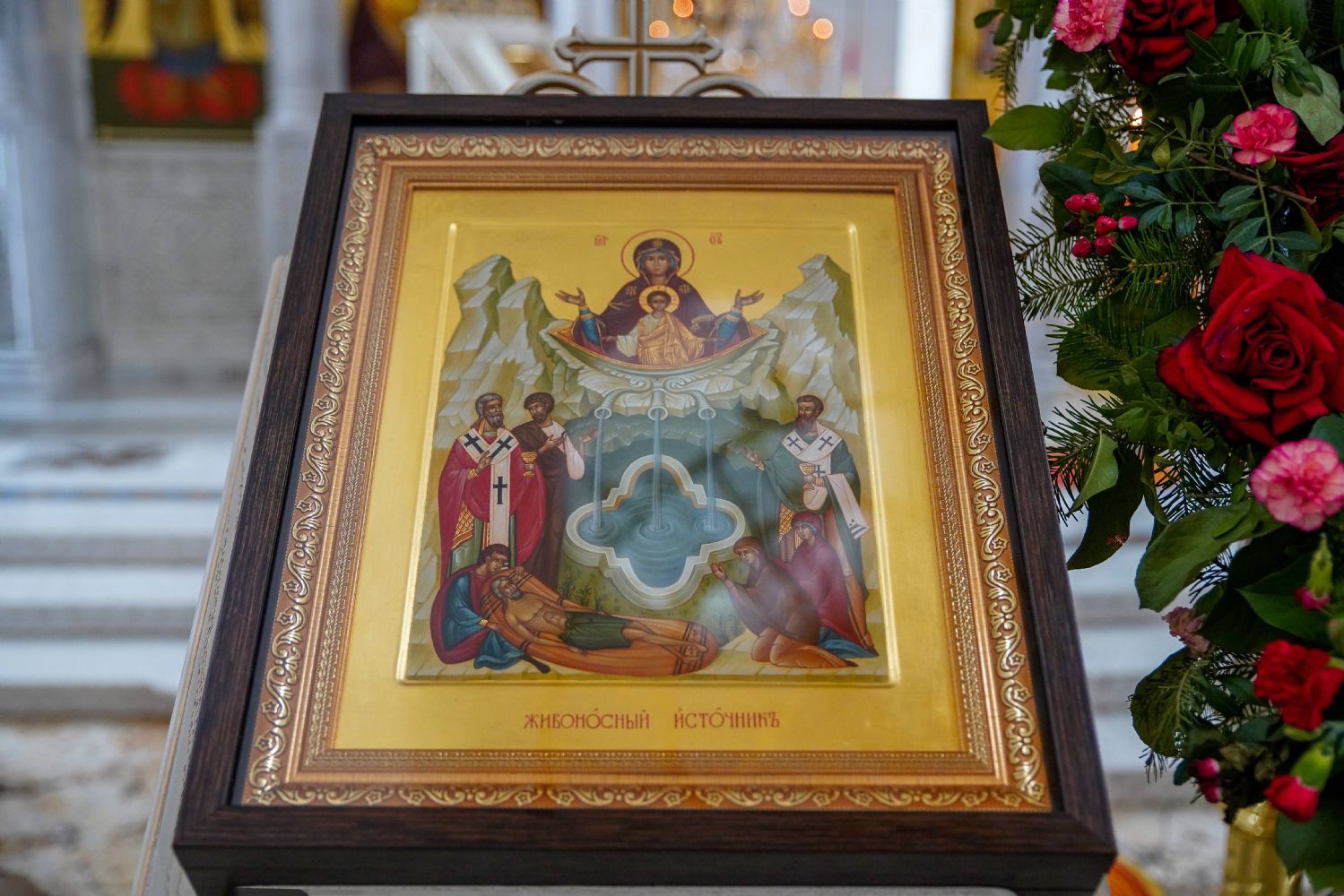 Но в 19 веке султан Махмуд, наслышанный о чудесах, которые являла Пречистая, позволил христианам очистить источник и соорудить там небольшой храм. Его освящение состоялось в 1835 году на пасхальной седмице в пятницу. Поэтому в Церкви было утверждено, чтобы в Светлую пятницу всегда совершать прославление Матери Божией в Ее образе «Живоносный Источник».