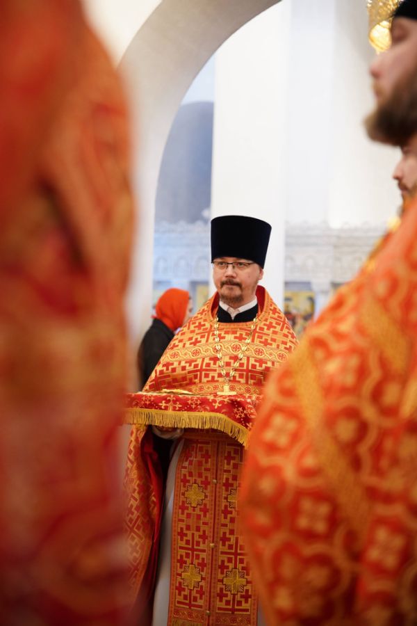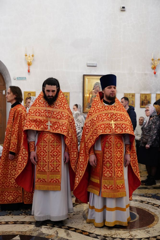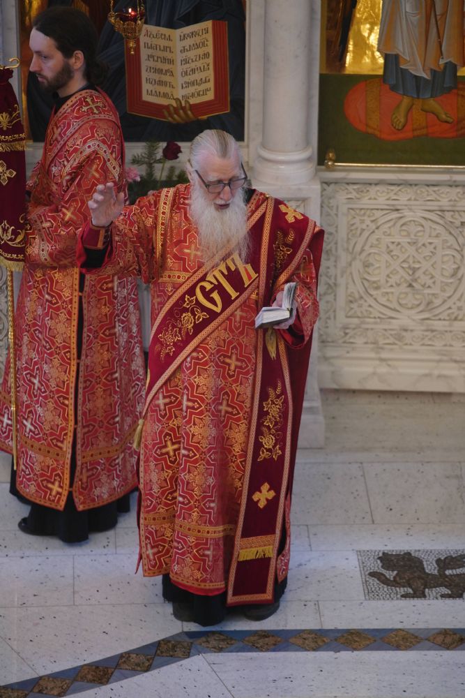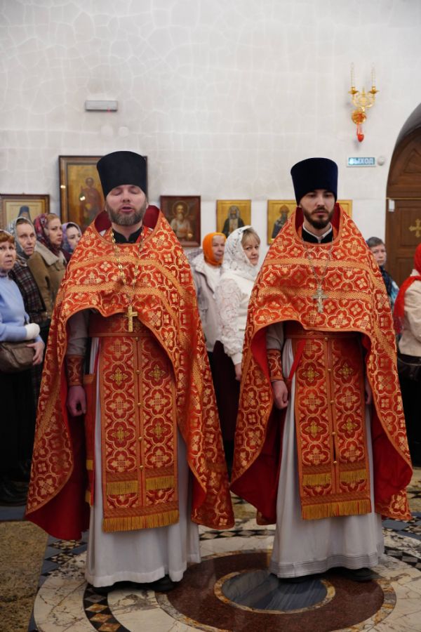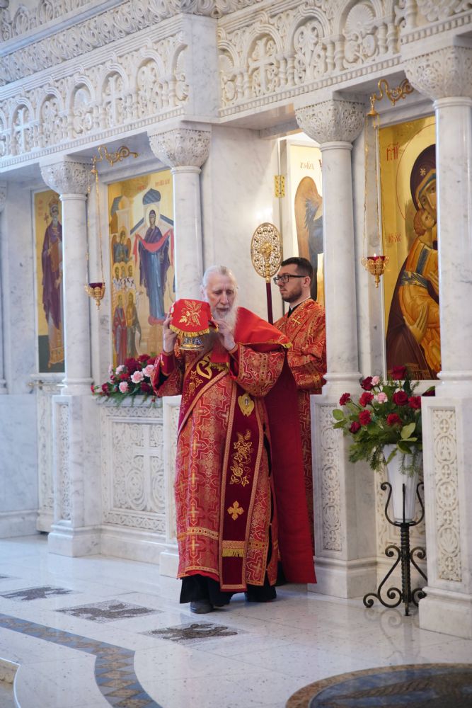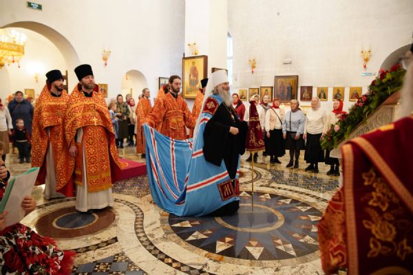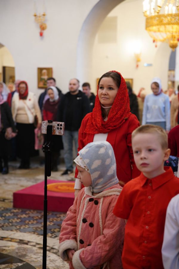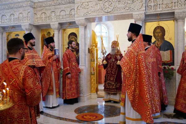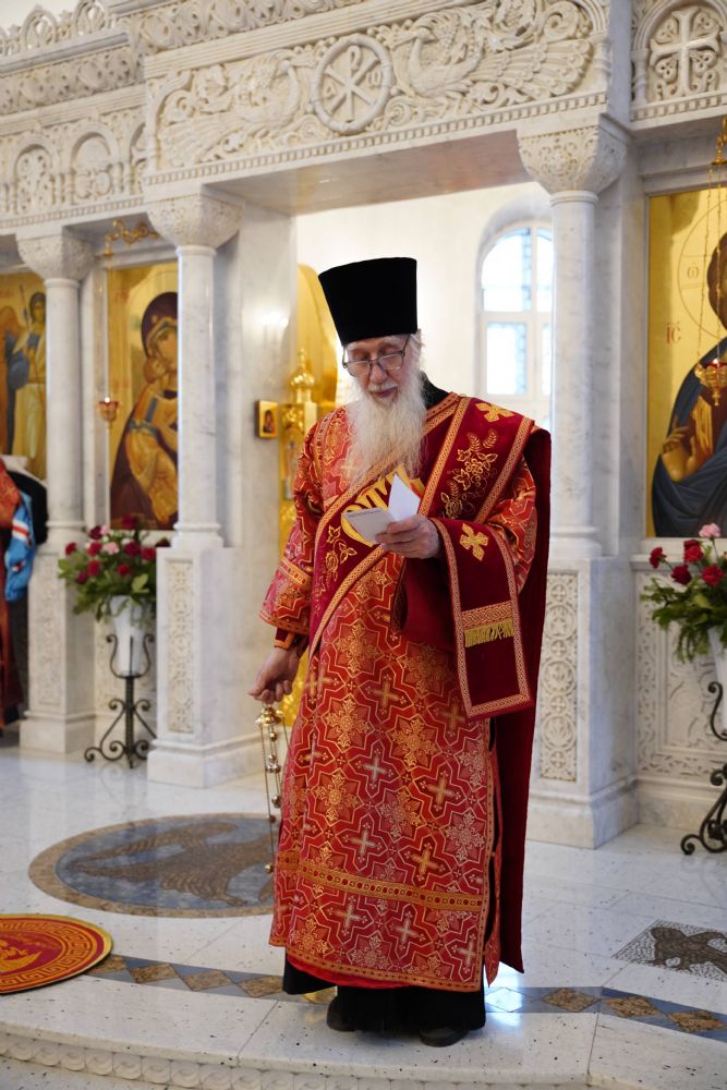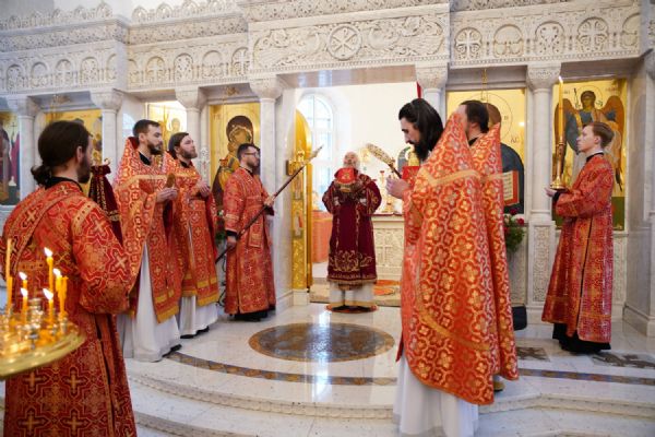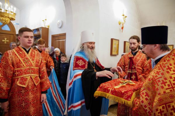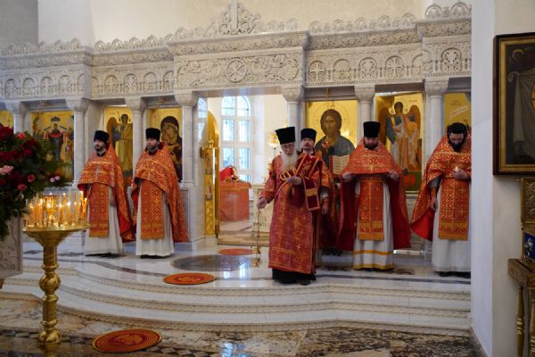 Его Высокопреосвященству сослужили настоятель храма иерей Алексий Михеев, клирики храма иереи Алексий Кирюшкин, Игорь Коваль, Сергий Пуртов и Василий Пряморуков, а также протодиакон Михаил Козловский. Песнопения исполняли хор храма под управлением Александры Ивановой и детский хор воскресной школы под руководством Ольги Шевчук.