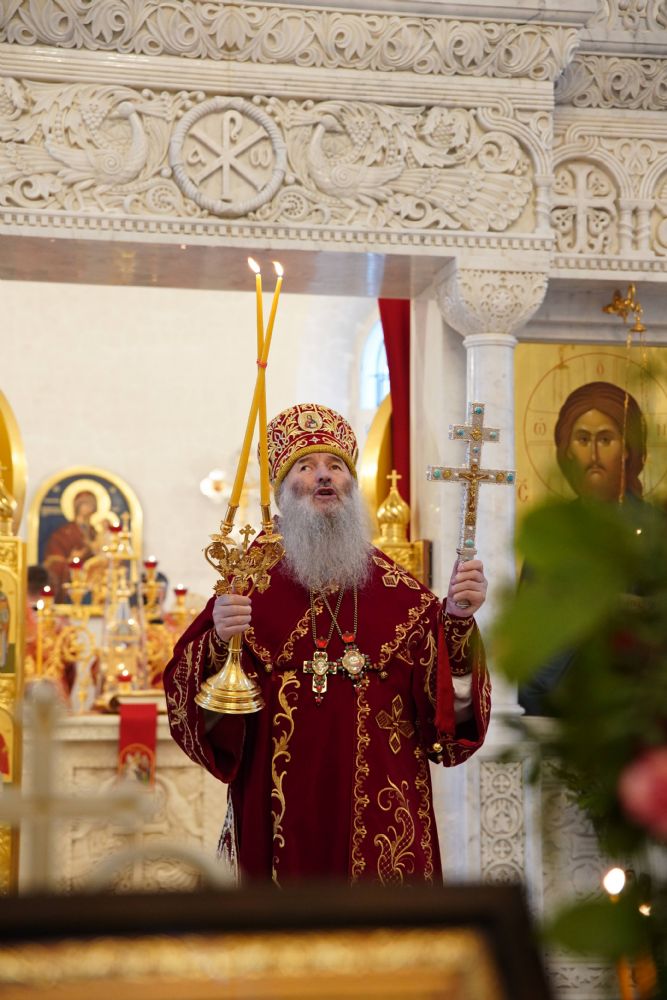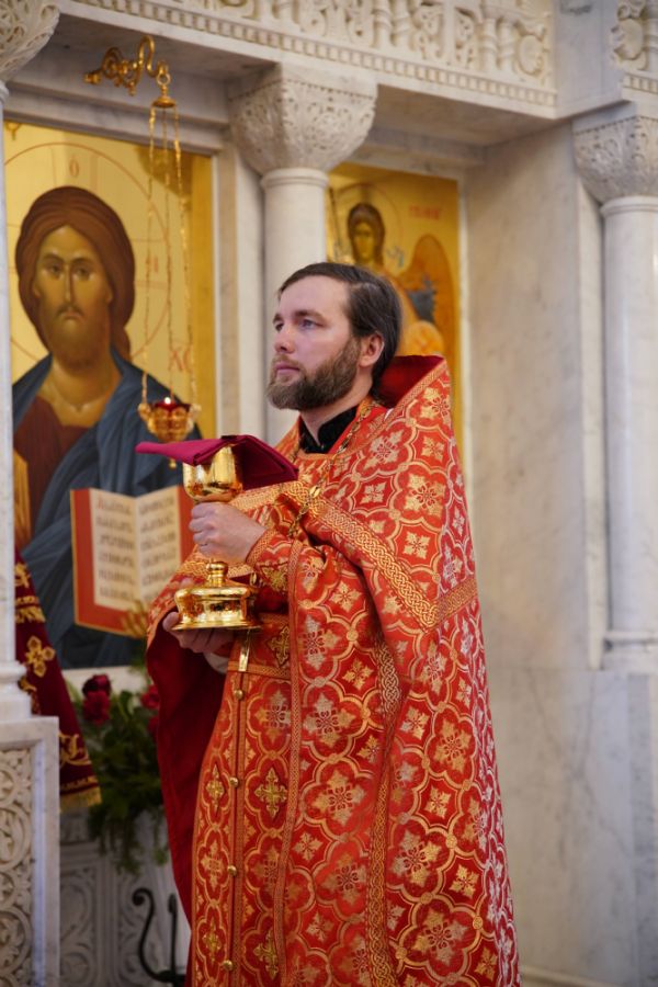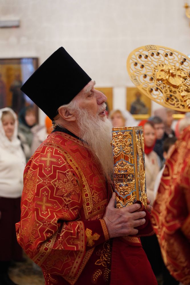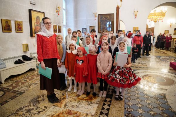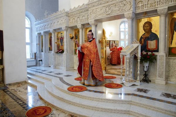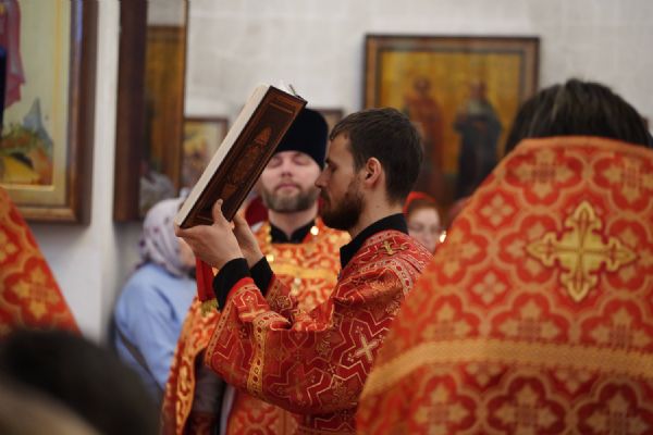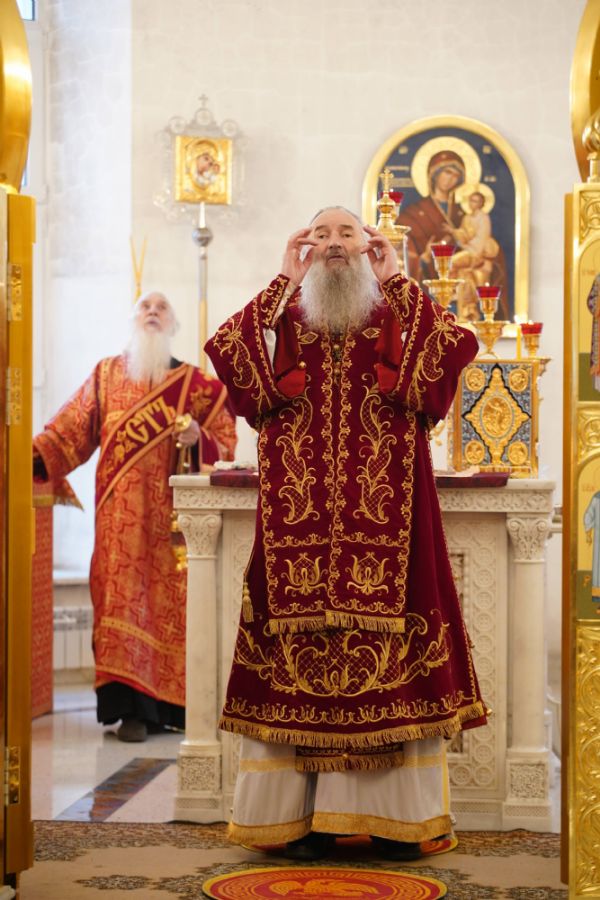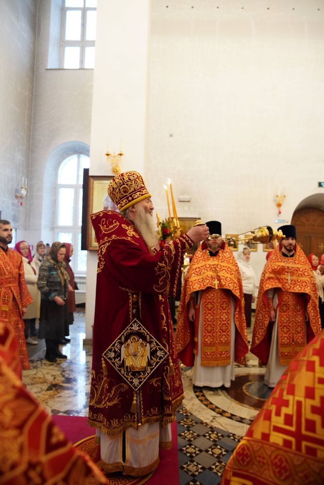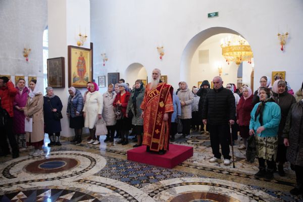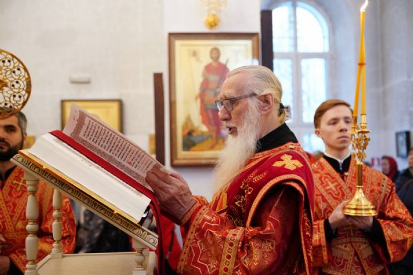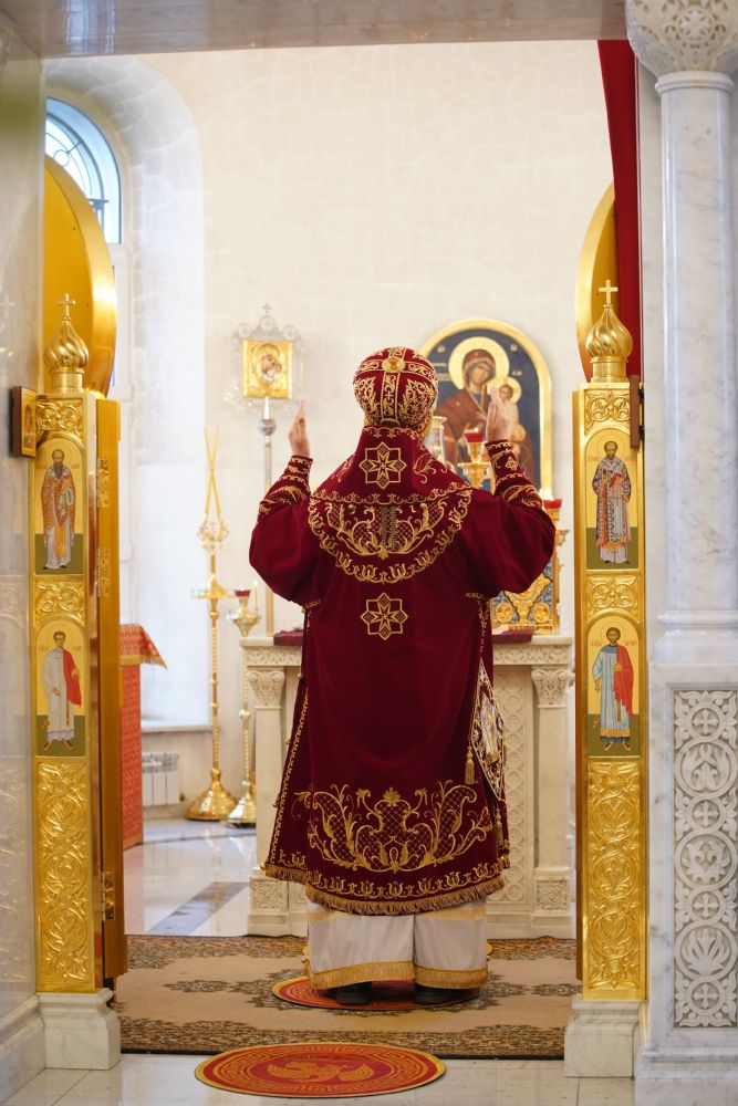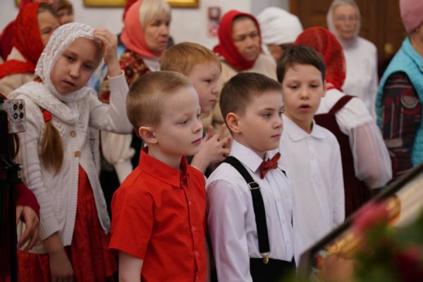 Его Высокопреосвященству сослужили настоятель храма иерей Алексий Михеев, клирики храма иереи Алексий Кирюшкин, Игорь Коваль, Сергий Пуртов и Василий Пряморуков, а также протодиакон Михаил Козловский. Песнопения исполняли хор храма под управлением Александры Ивановой и детский хор воскресной школы под руководством Ольги Шевчук.