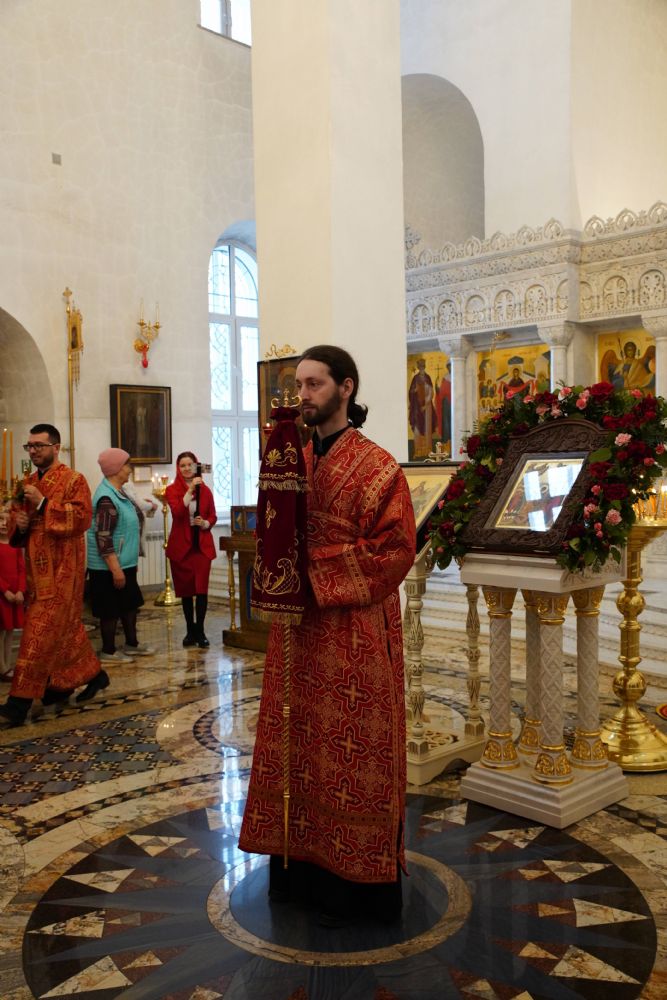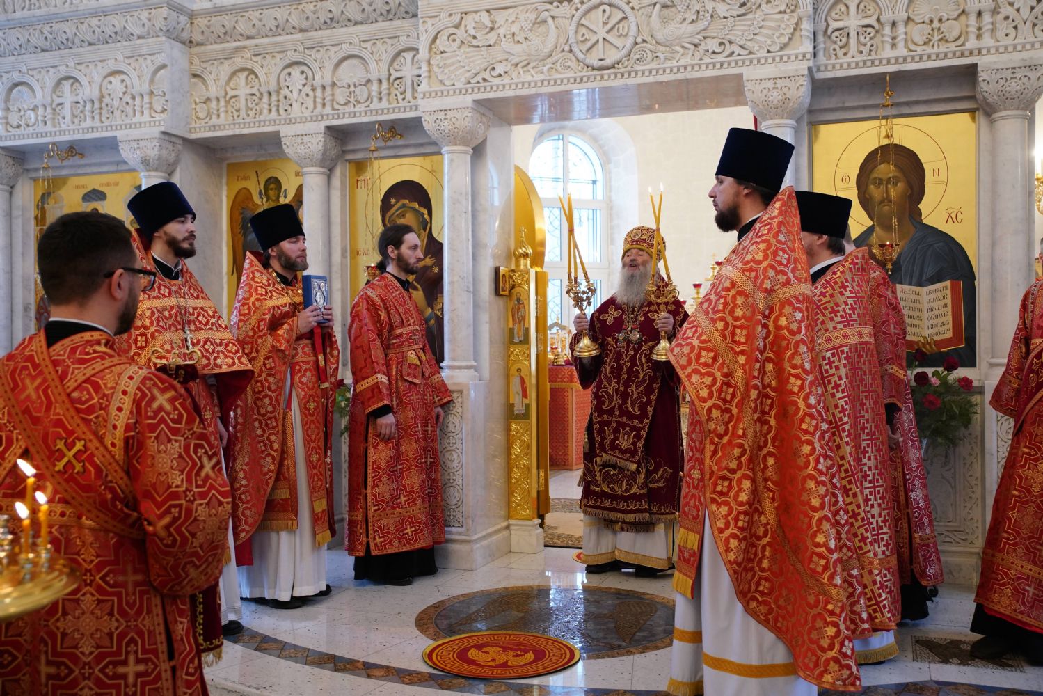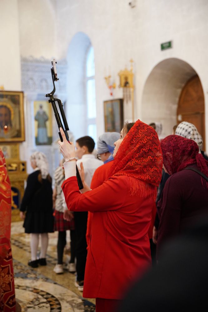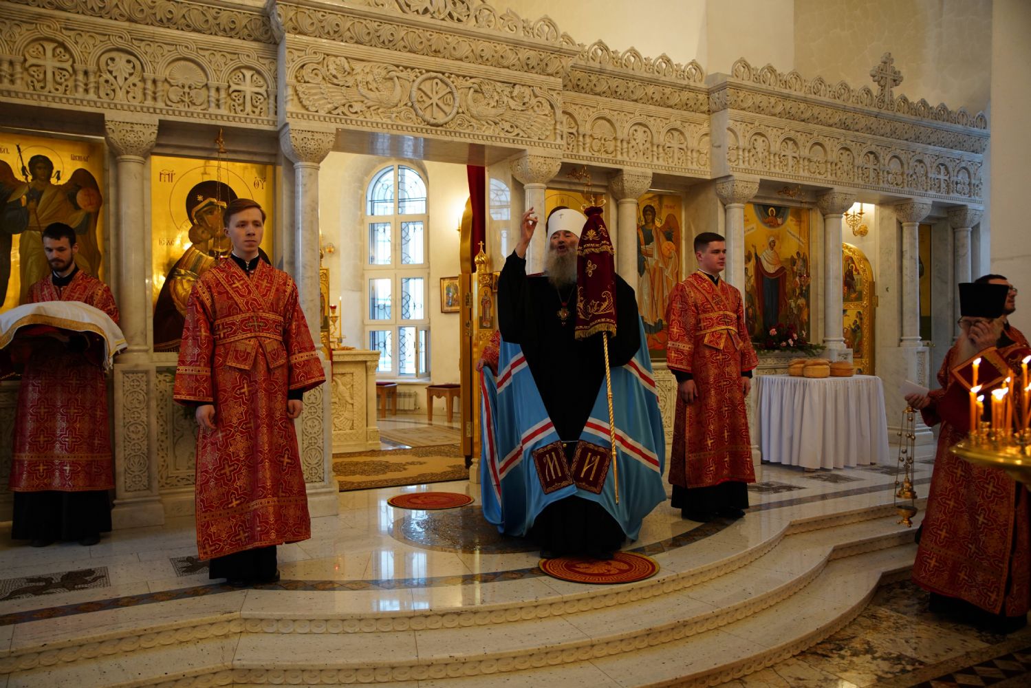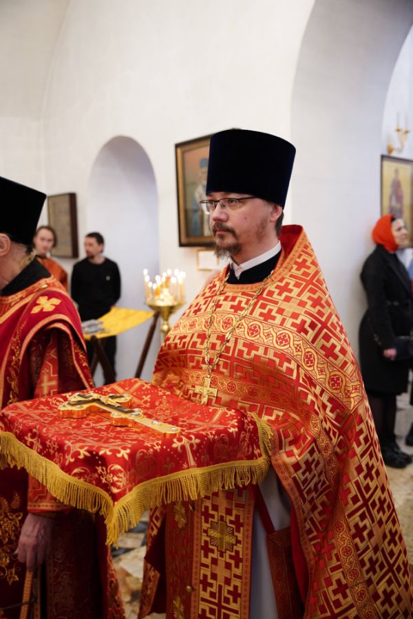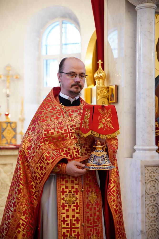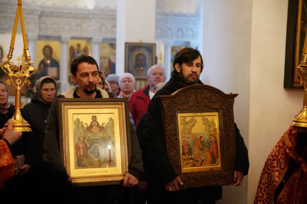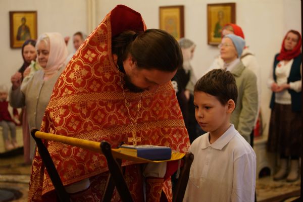 Его Высокопреосвященству сослужили настоятель храма иерей Алексий Михеев, клирики храма иереи Алексий Кирюшкин, Игорь Коваль, Сергий Пуртов и Василий Пряморуков, а также протодиакон Михаил Козловский. Песнопения исполняли хор храма под управлением Александры Ивановой и детский хор воскресной школы под руководством Ольги Шевчук.
