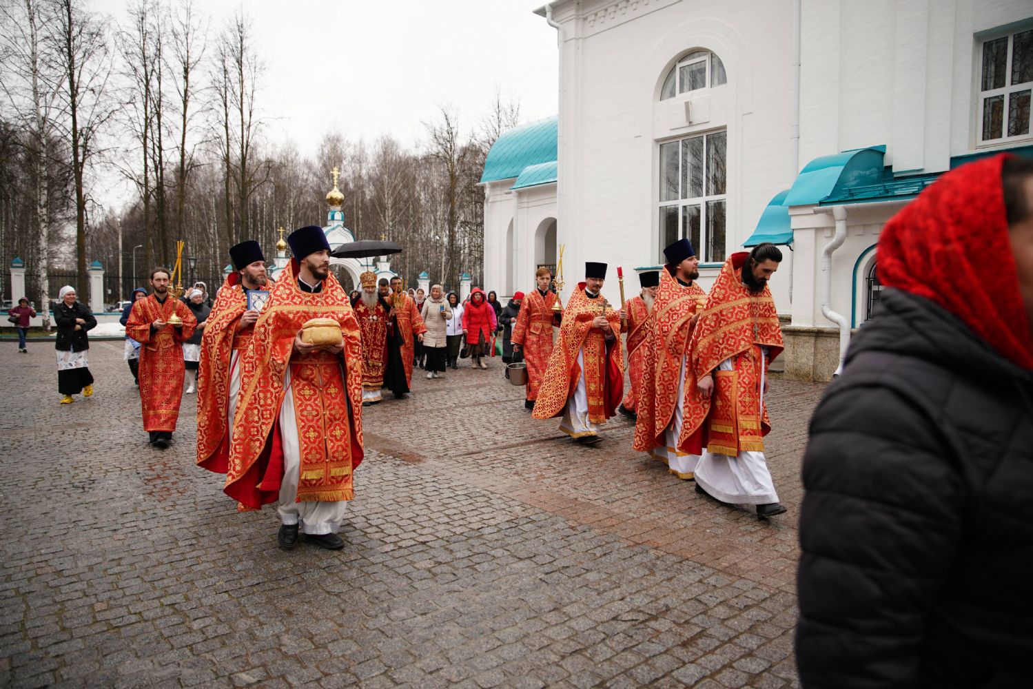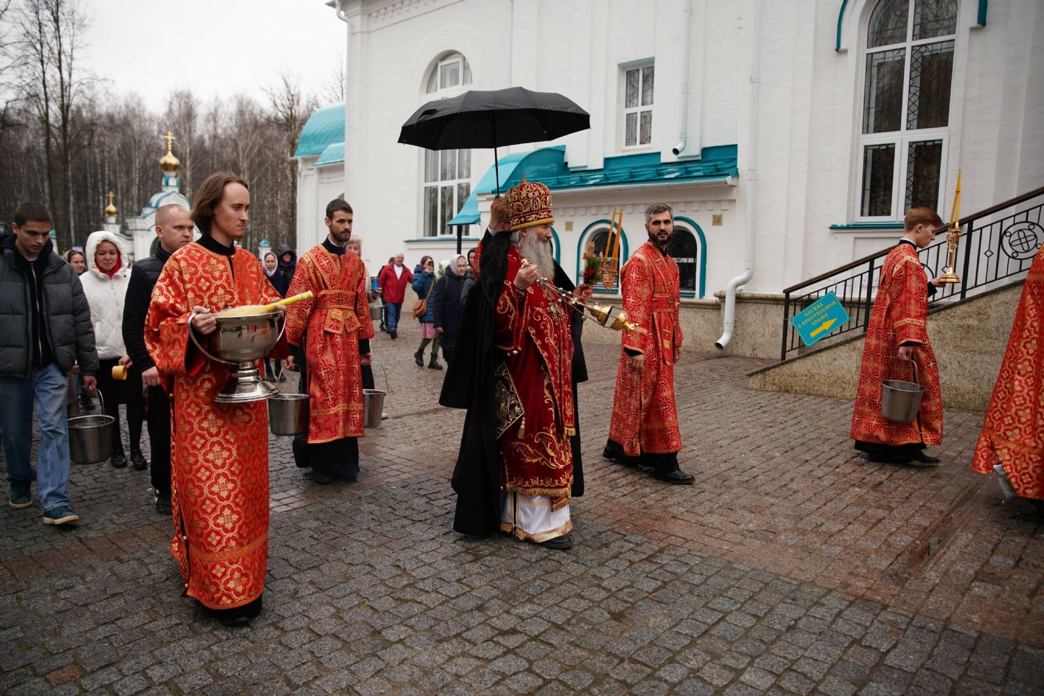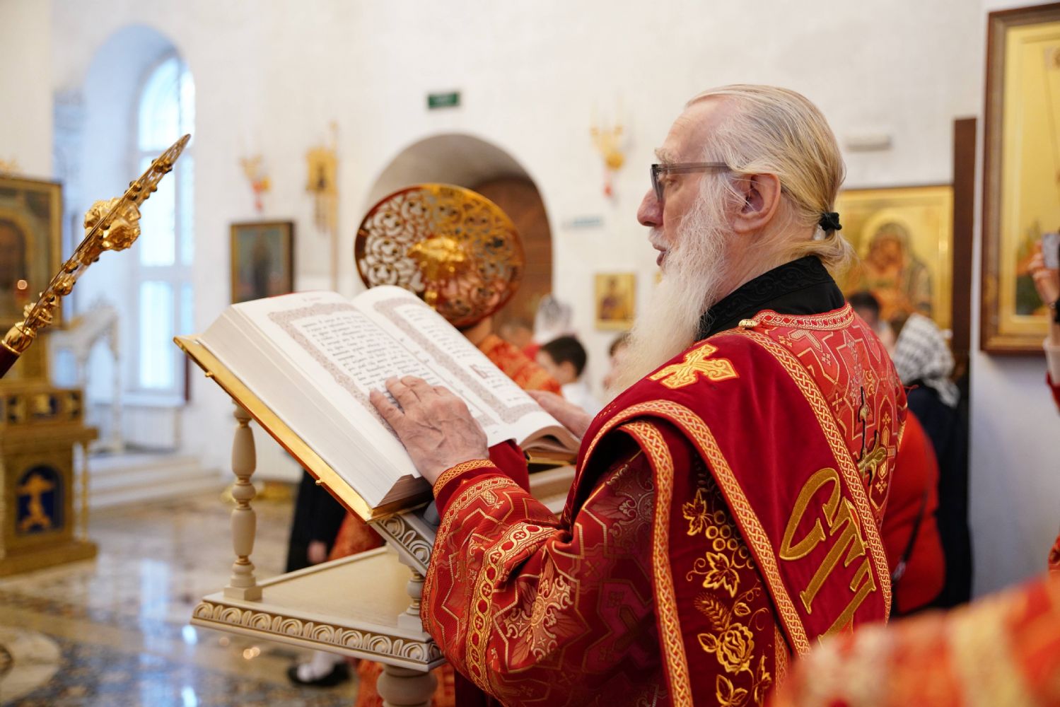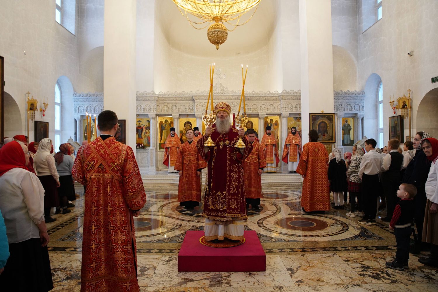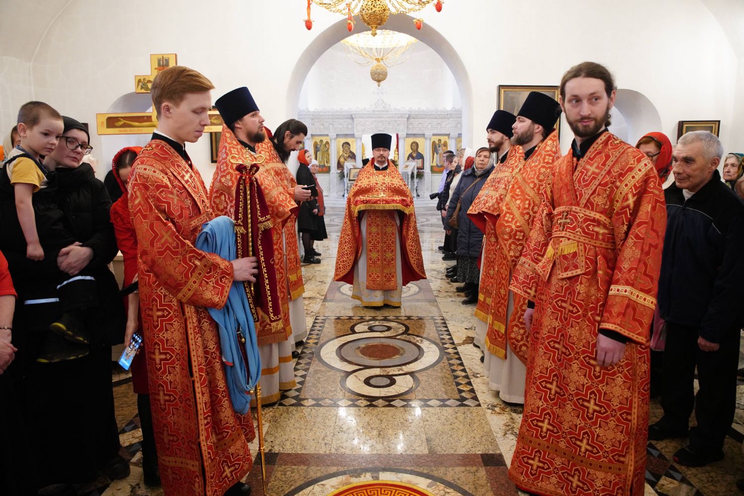 Его Высокопреосвященству сослужили настоятель храма иерей Алексий Михеев, клирики храма иереи Алексий Кирюшкин, Игорь Коваль, Сергий Пуртов и Василий Пряморуков, а также протодиакон Михаил Козловский. Песнопения исполняли хор храма под управлением Александры Ивановой и детский хор воскресной школы под руководством Ольги Шевчук.