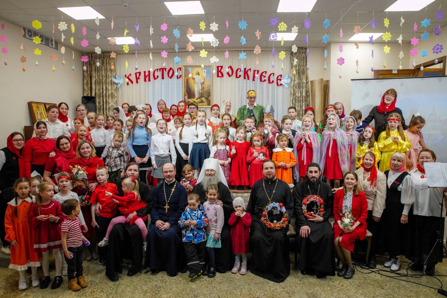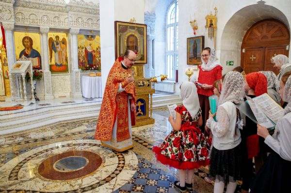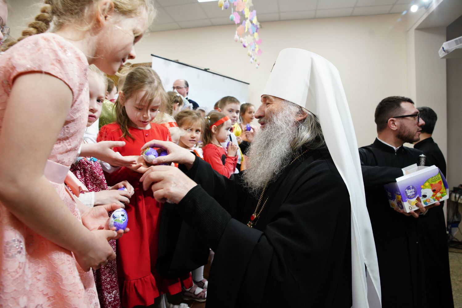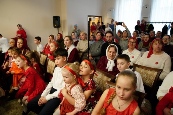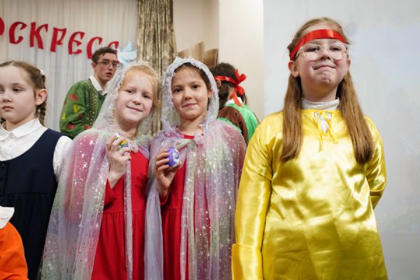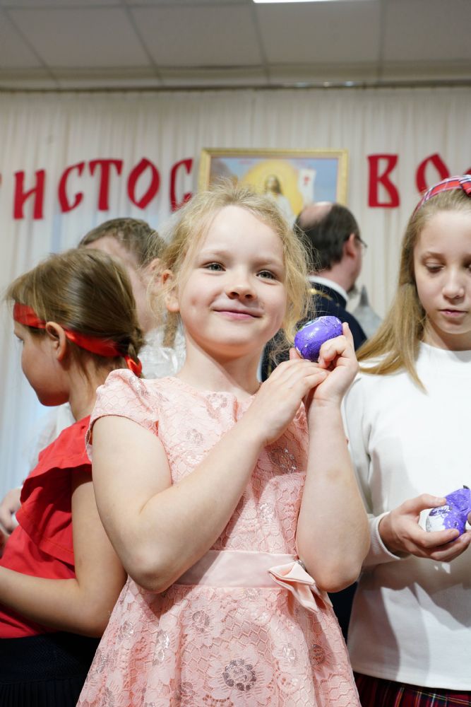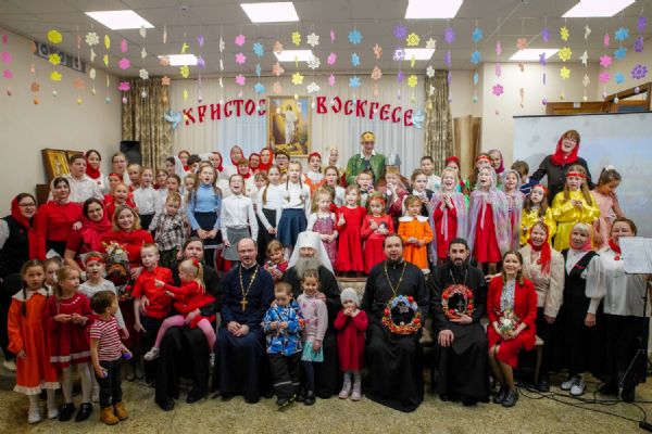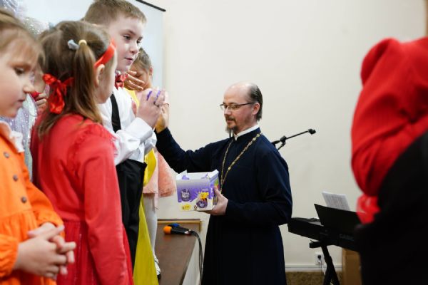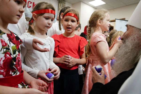 В завершение воспитанники воскресной школы храма выступили перед прихожанами и гостями с пасхальным концертом, а владыка вручил детям сладкие подарки.