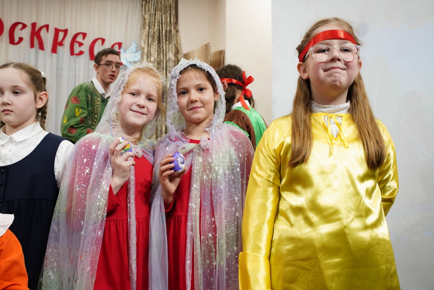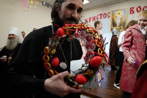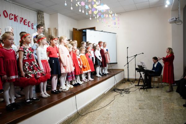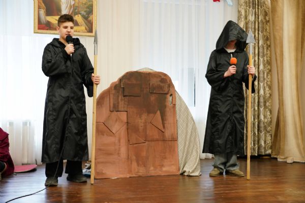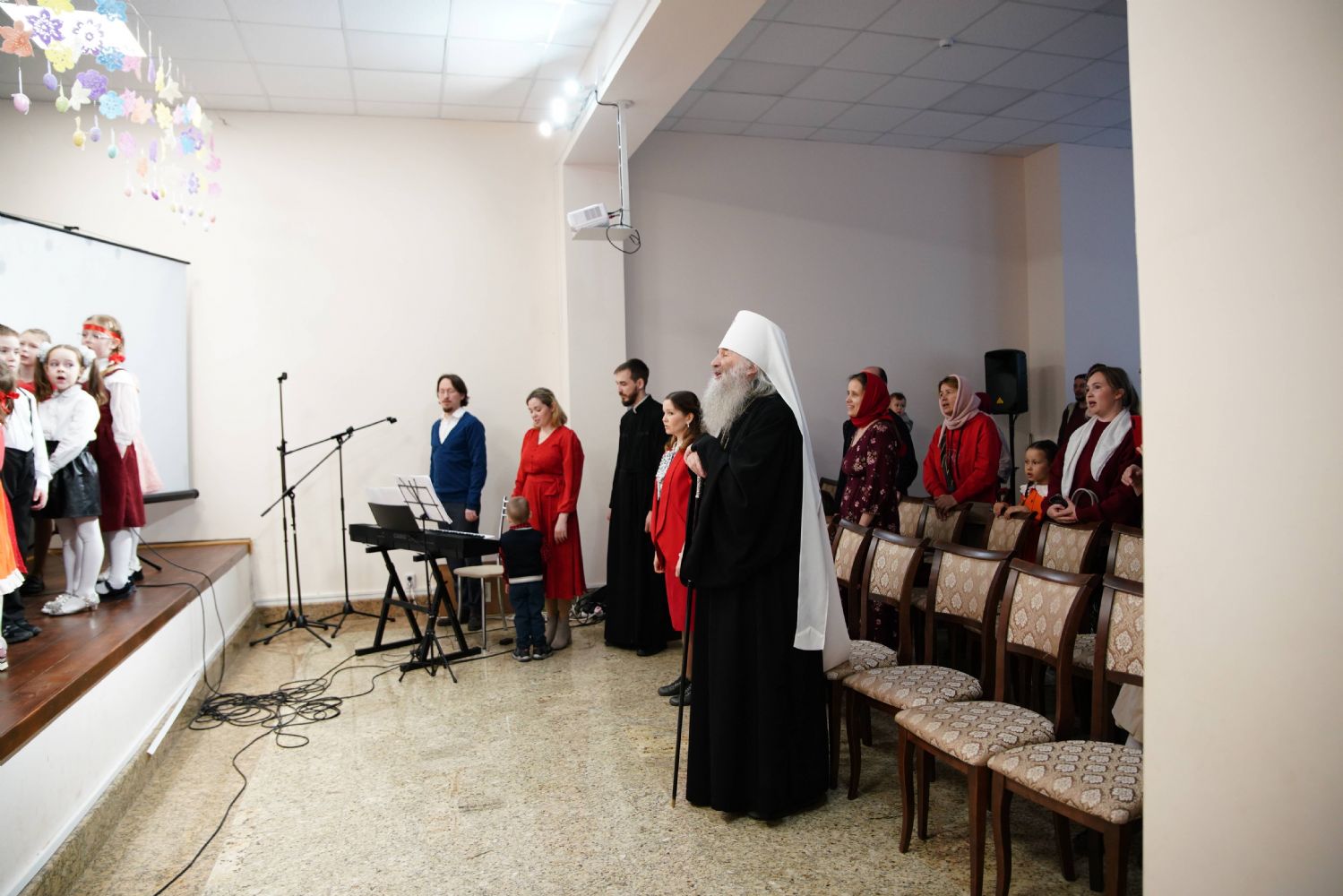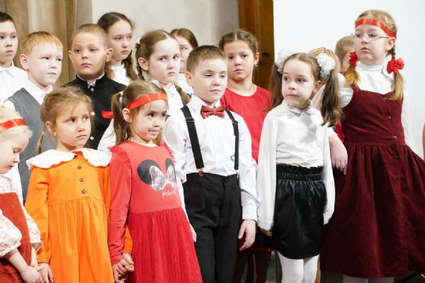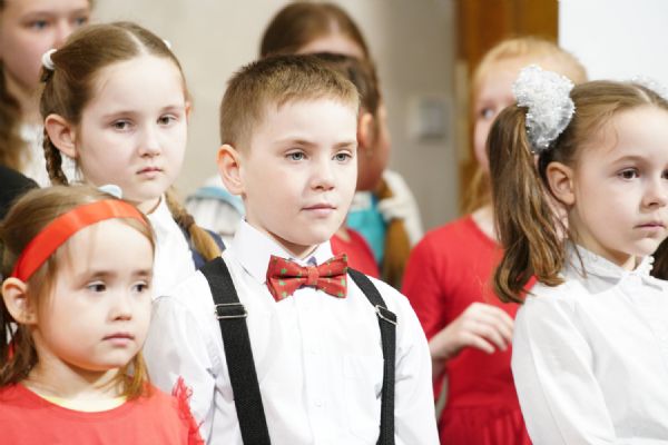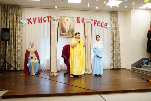 В завершение воспитанники воскресной школы храма выступили перед прихожанами и гостями с пасхальным концертом, а владыка вручил детям сладкие подарки.