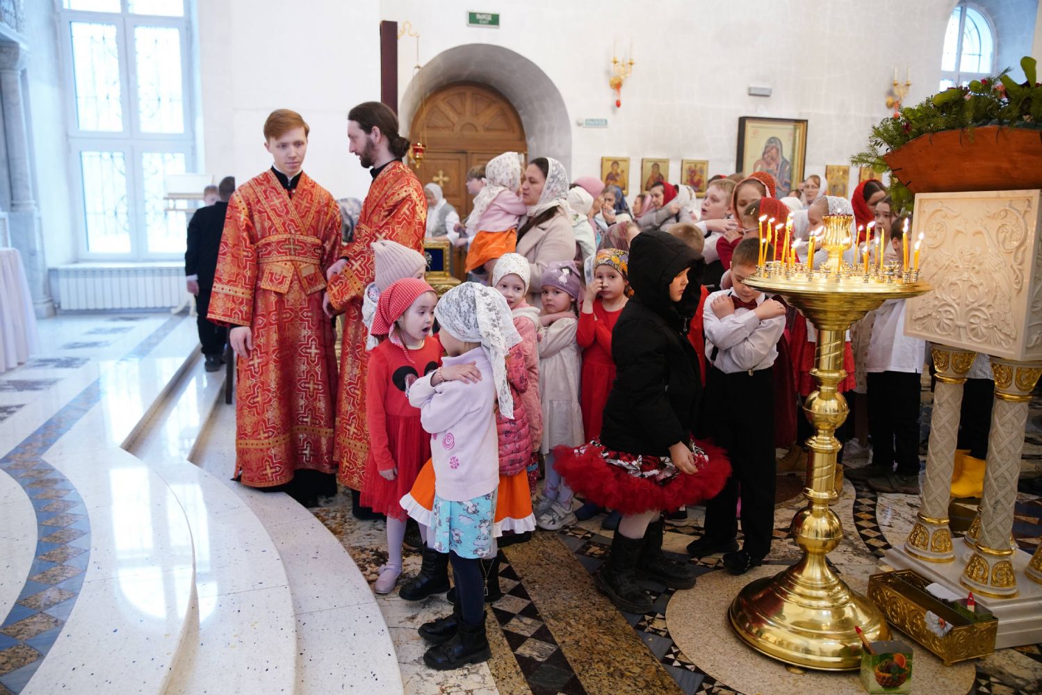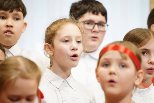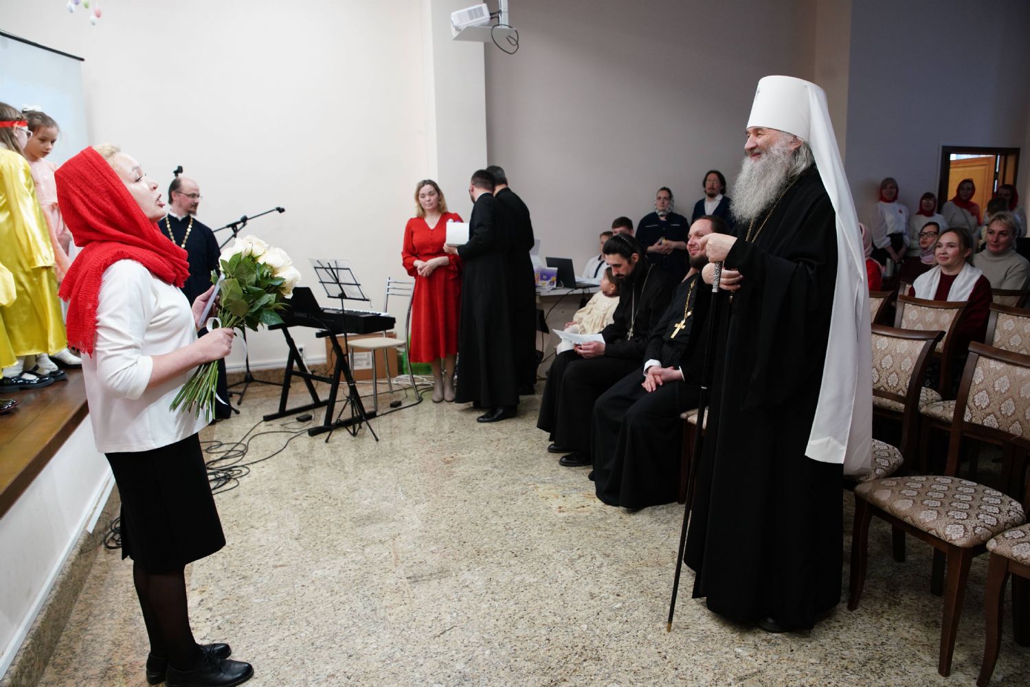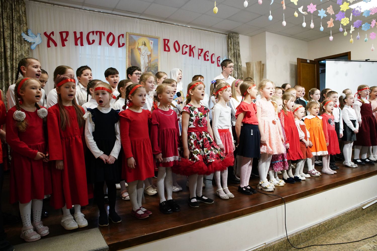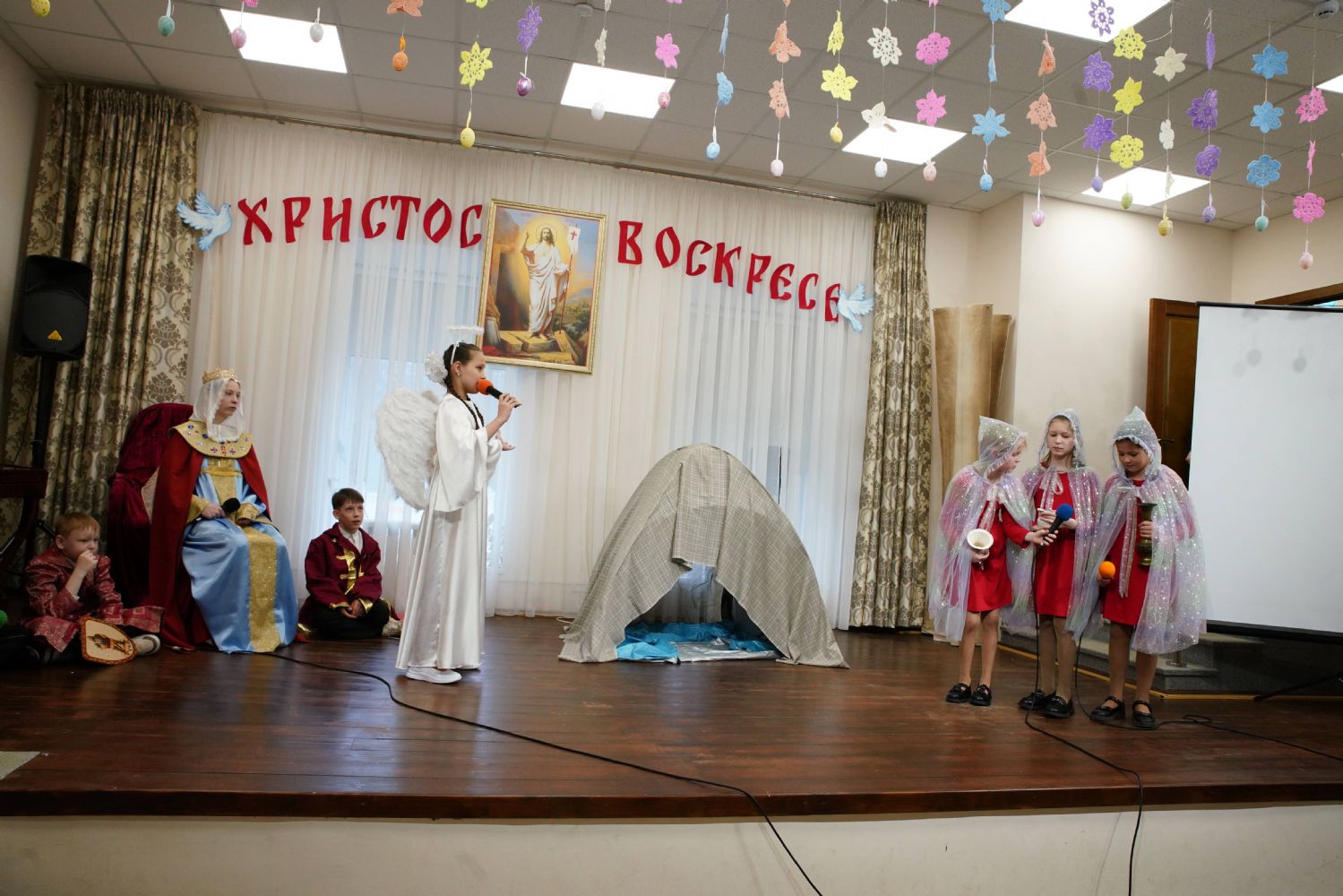 В завершение воспитанники воскресной школы храма выступили перед прихожанами и гостями с пасхальным концертом, а владыка вручил детям сладкие подарки.