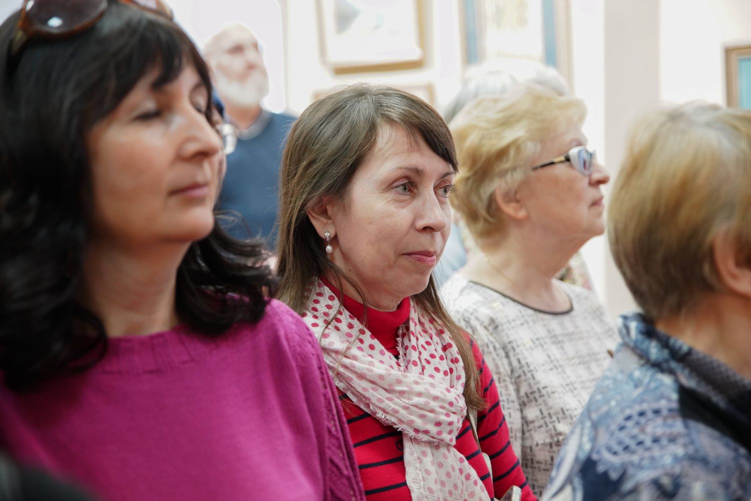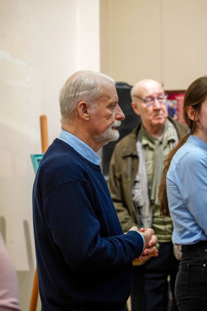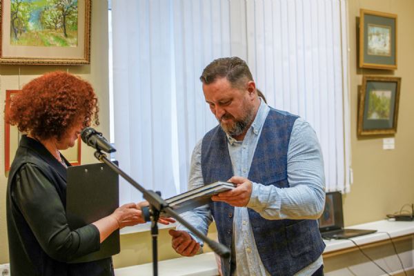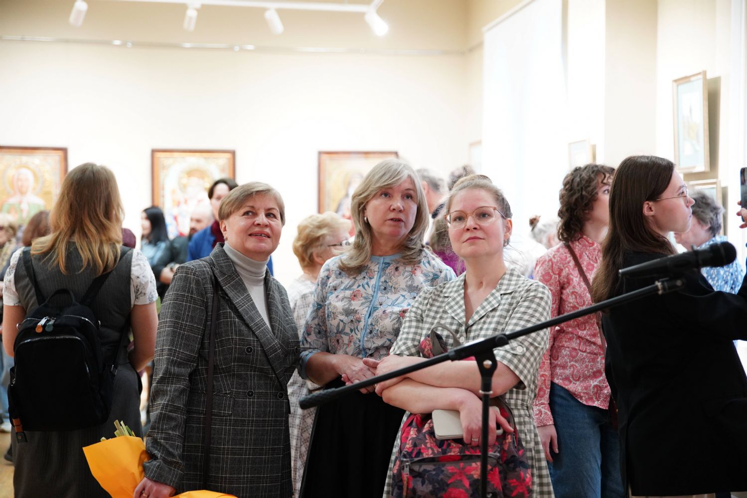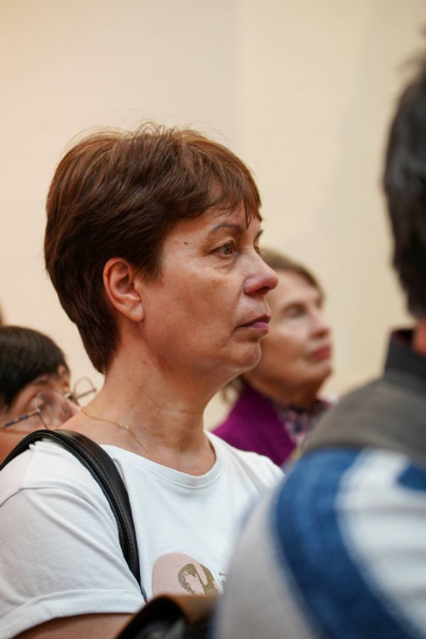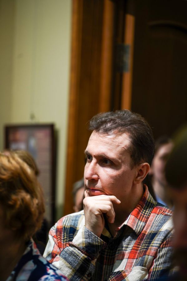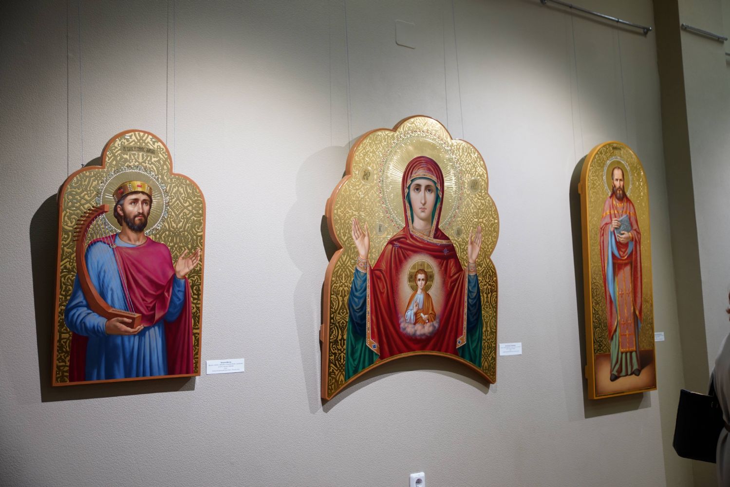Автор представленных работ Станислав Попов провел для собравшихся экскурсию по экспозиции, рассказав о написанных им иконах и о изображенных на них святых, а также о технологии иконописи.