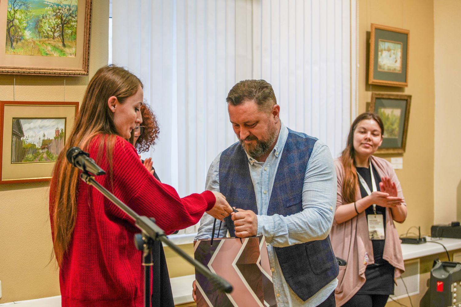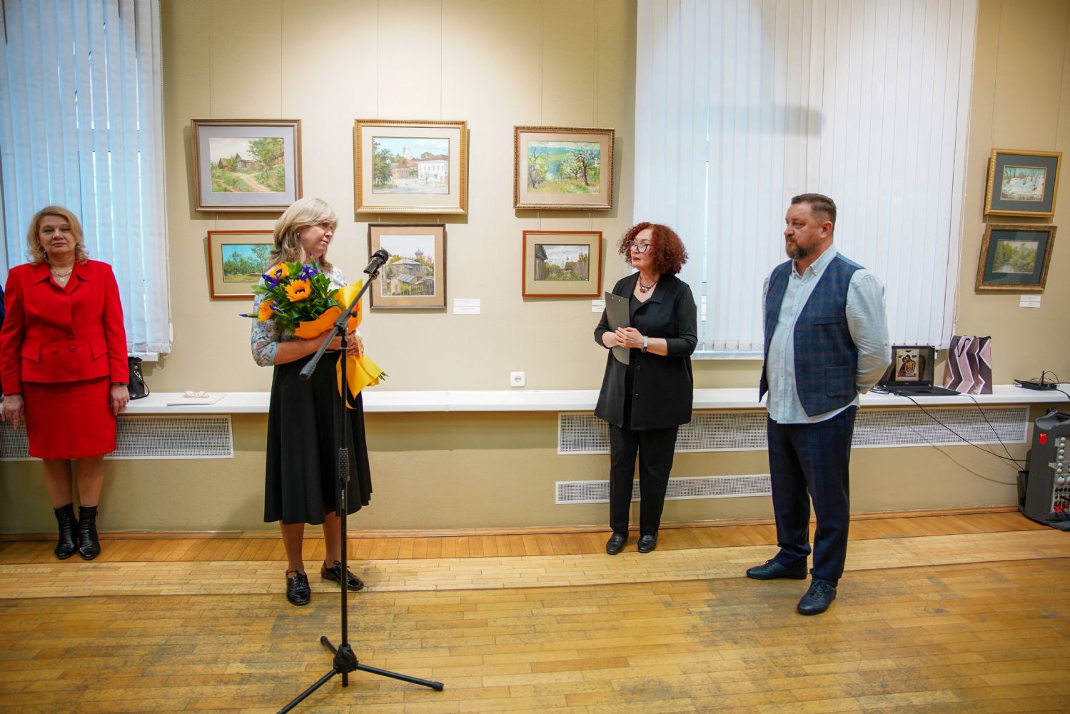 На церемонии открытия выставки к собравшимся обратились заместитель министра культуры, печати и по делам национальностей Республики Марий Эл Фарида Козлова, заслуженный художник России Евгений Яранов, председатель Марийского регионального отделения Союза художников России Анна Санникова, директор Йошкар-Олинского художественного училища Борис Маклашин, секретарь Йошкар-Олинского епархиального управления иерей Димитрий Дьяков, коллеги Станислава Валентиновича по Царевококшайской иконописной мастерской.