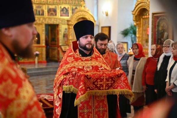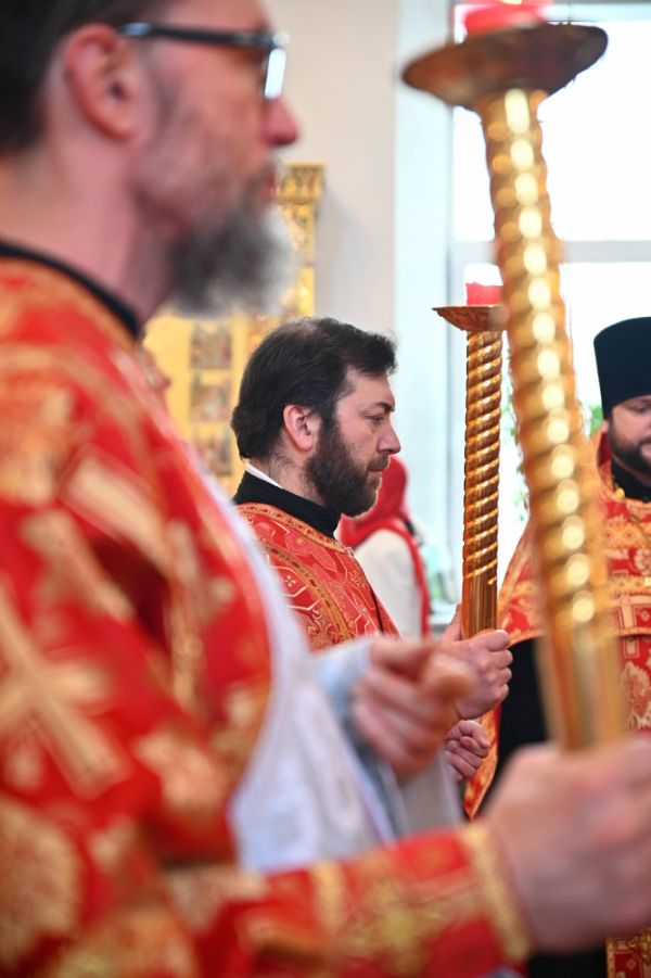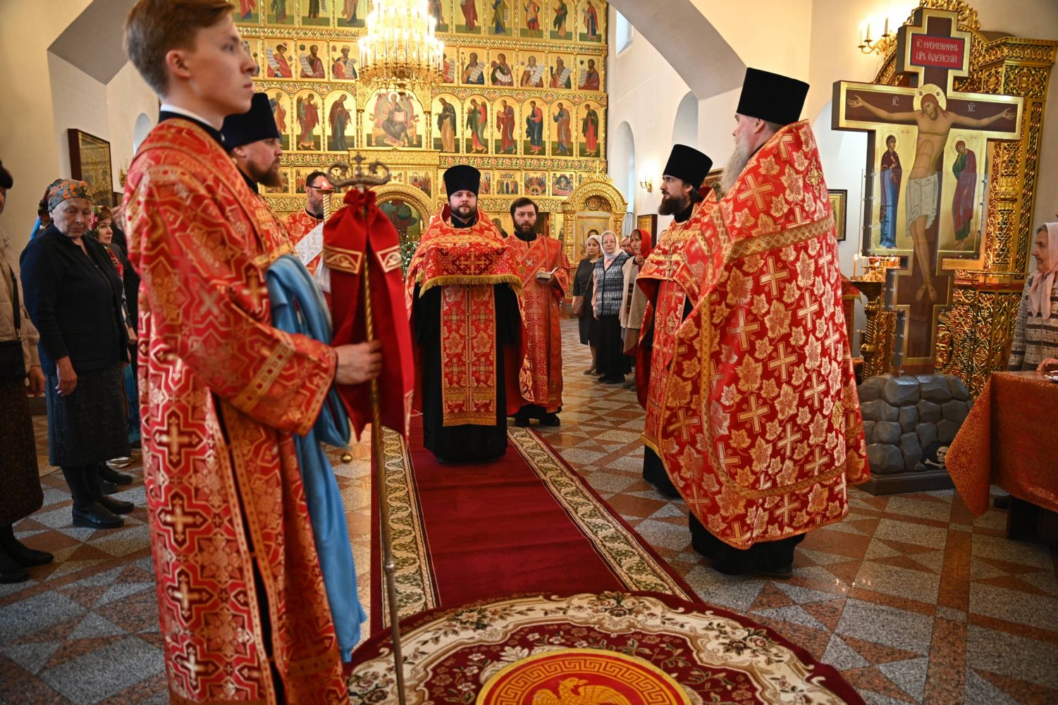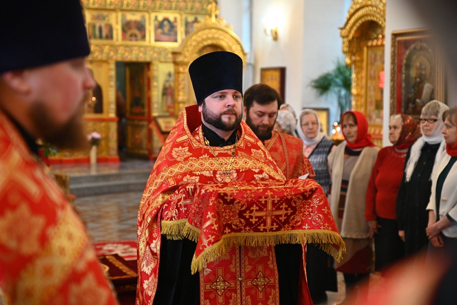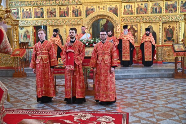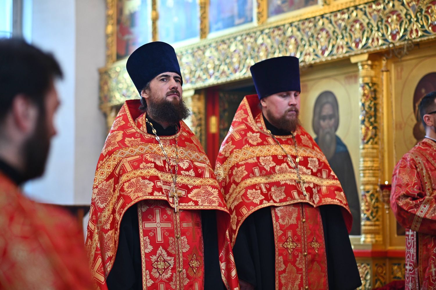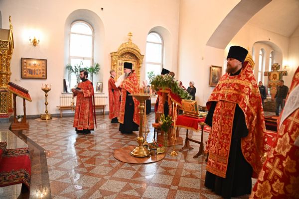 Его Высокопреосвященству сослужили настоятель храма протоиерей Александр Бачурин, клирики храма иереи Константин Домрачев, Виктор Умрихин, Николай Бабич и диакон Алексий Ершов, а также клирик Благовещенского кафедрального собора диакон Артемий Бобоч. Пел хор храма под управлением регента Елены Умрихиной.
