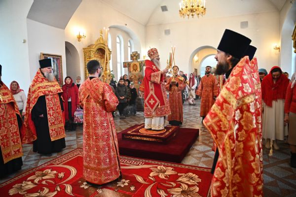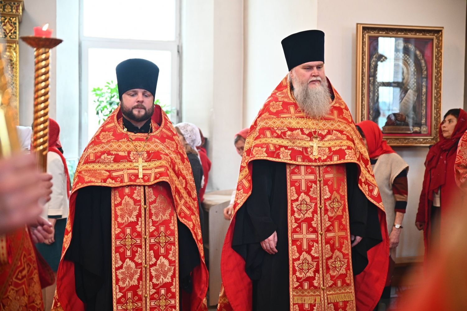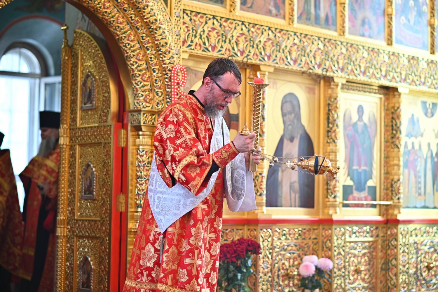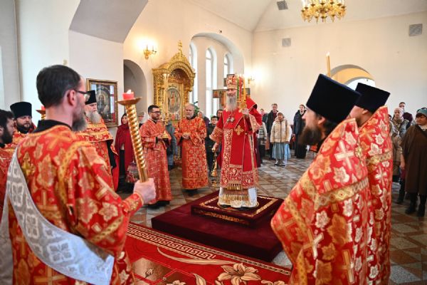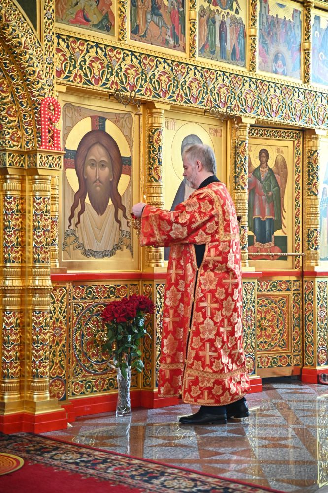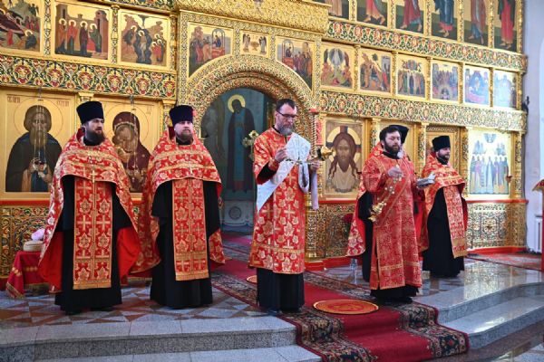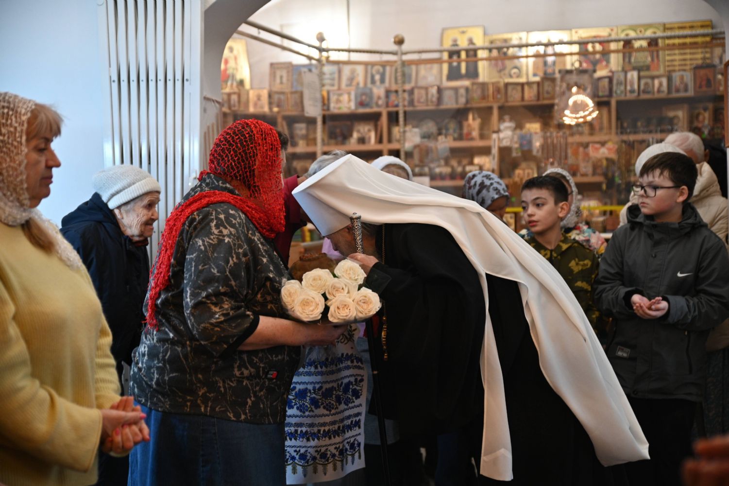 Его Высокопреосвященству сослужили настоятель храма протоиерей Александр Бачурин, клирики храма иереи Константин Домрачев, Виктор Умрихин, Николай Бабич и диакон Алексий Ершов, а также клирик Благовещенского кафедрального собора диакон Артемий Бобоч. Пел хор храма под управлением регента Елены Умрихиной.