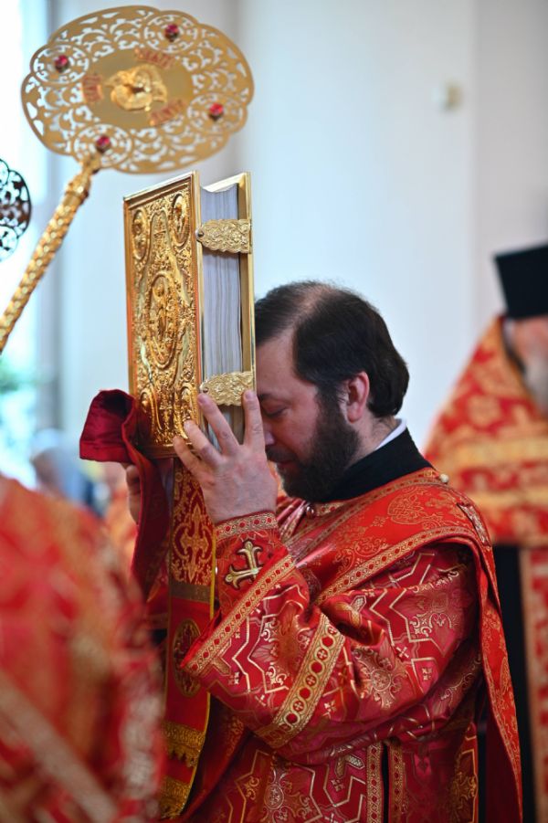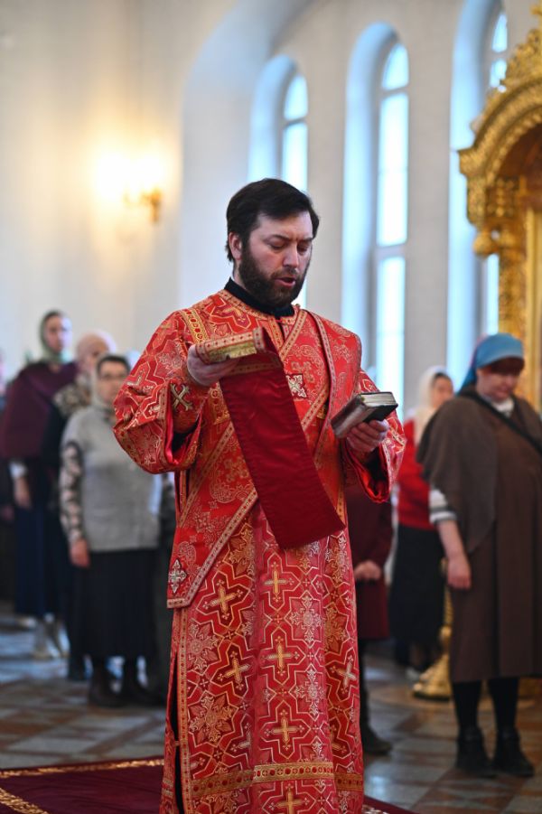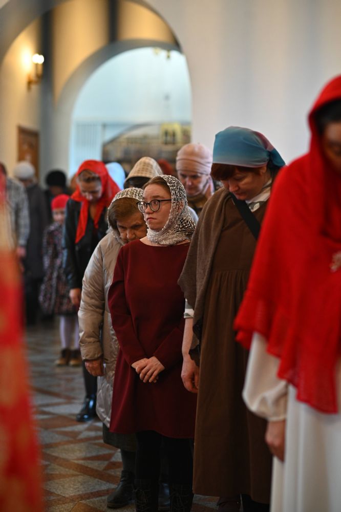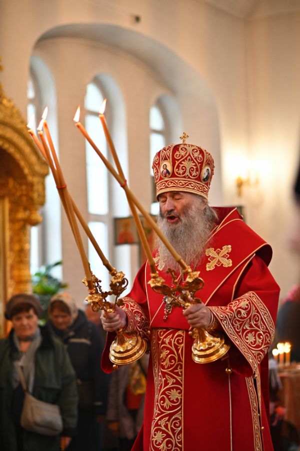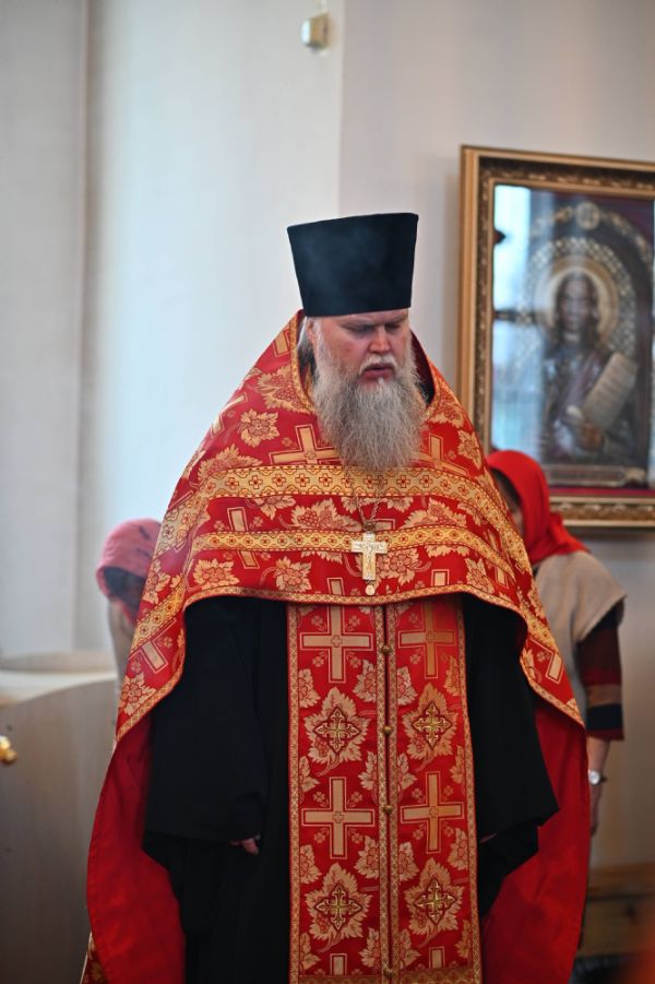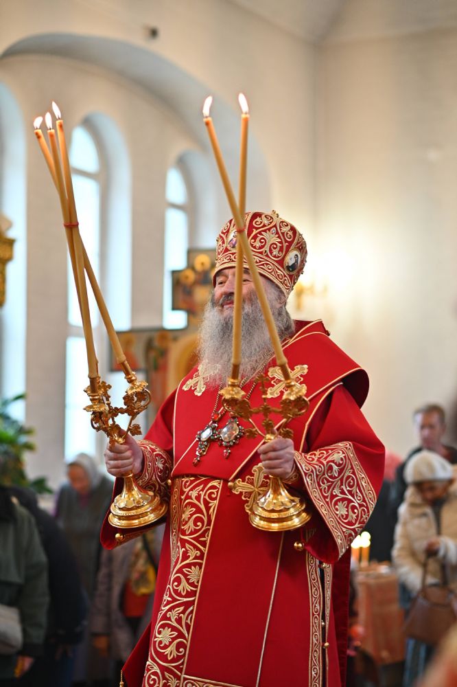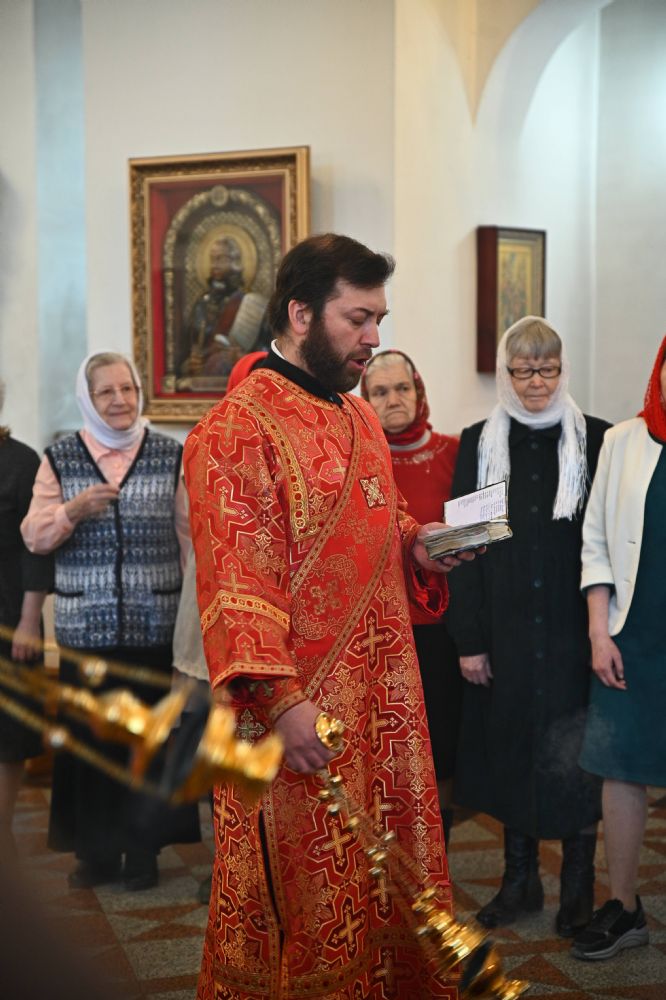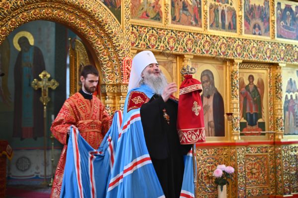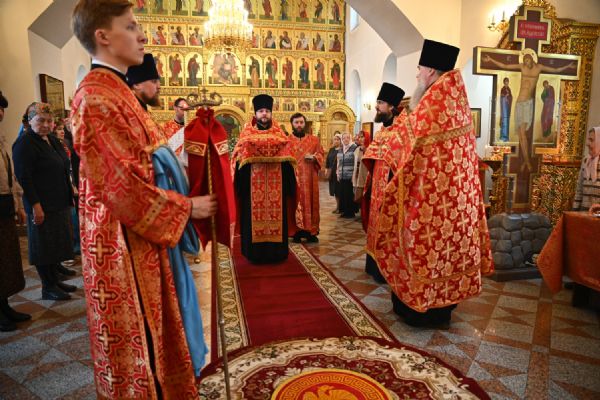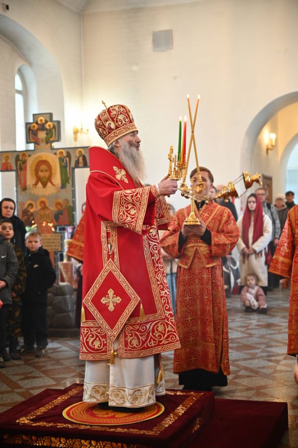 Его Высокопреосвященству сослужили настоятель храма протоиерей Александр Бачурин, клирики храма иереи Константин Домрачев, Виктор Умрихин, Николай Бабич и диакон Алексий Ершов, а также клирик Благовещенского кафедрального собора диакон Артемий Бобоч. Пел хор храма под управлением регента Елены Умрихиной.